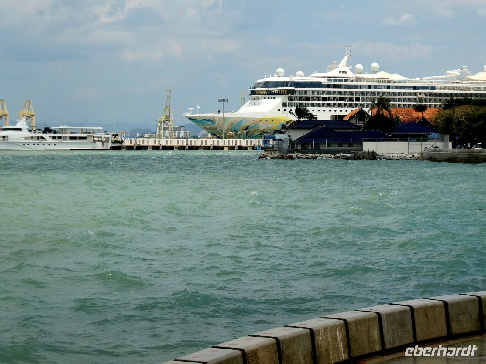 Wir fahren über die 13,5 km lange Schrägseil-Brücke die Penang seit 1985 mit dem Festland verbindet, streifen eines der legendären und wohl mondänsten Hotels Südostasiens, das Eastern Oriental, wo sich einst die High Society traf.
