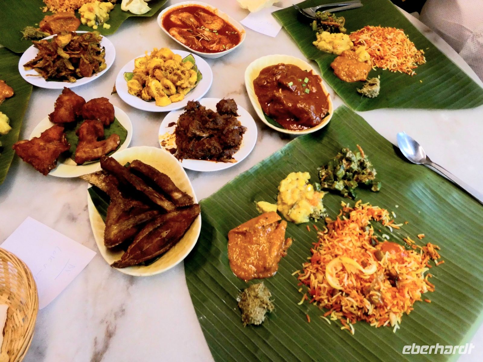 geschlossen und so spazieren wir weiter nach Little India wo ein buntes Treiben herrscht. Zahlreiche Rikschafahrer bieten ihre Dienste an. Wir kosten an einem besonderen Stand indische Kleinigkeiten und bewegen uns langsam in Richtung Restaurant. Unser Indisches Mittagsmahl wird auf einem Bananenblatt serviert und wir genießen die Vielfalt der indischen Küche.