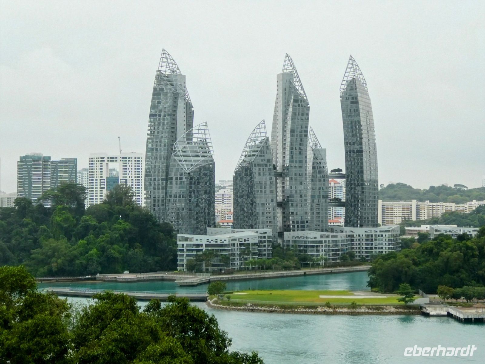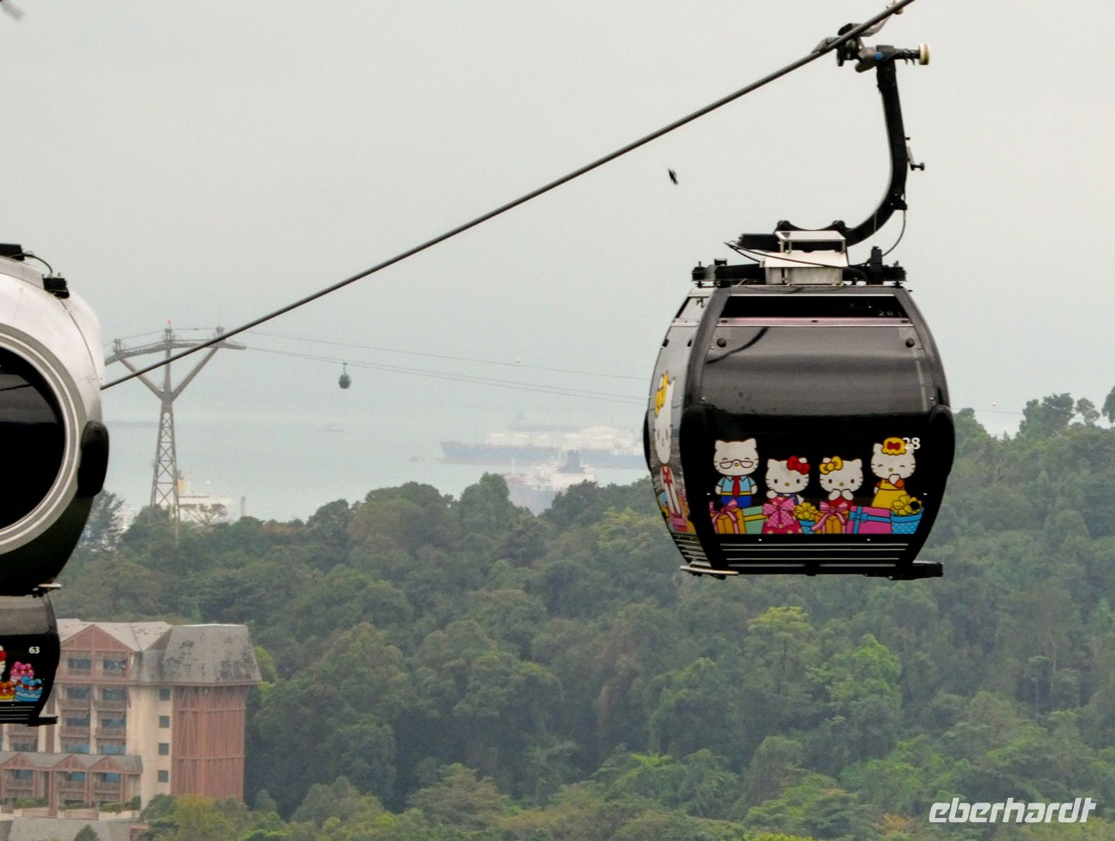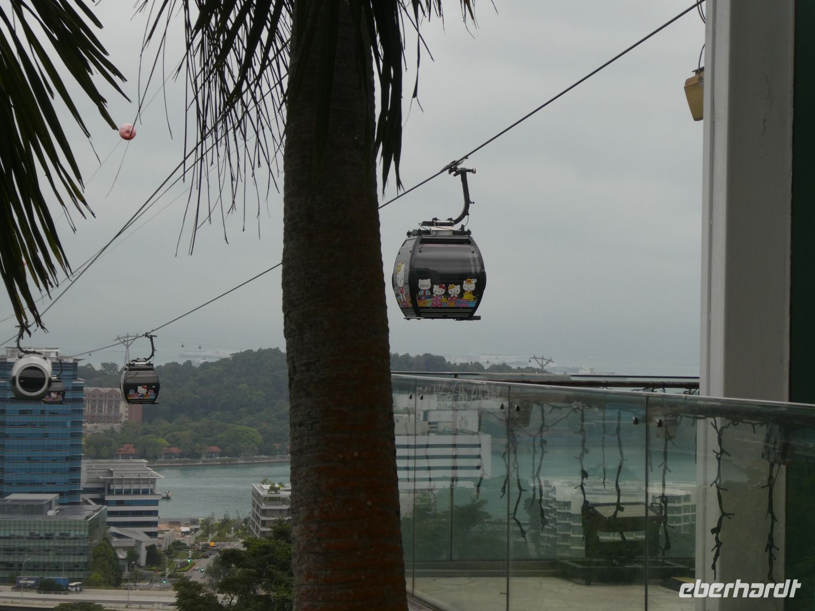 Wir fahren mit 2 Seilbahnen zu unserem Ziel. Von einem Aussichtspunkt am Mount Faber erklärt uns Biggi die einzelnen Attraktionen. Bei der Fahrt nach Sentosa erblicken wir einige spektakuläre Bauten von Singapur.