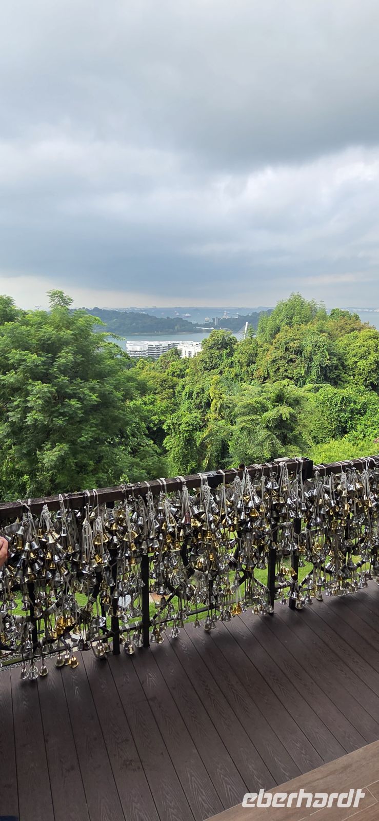 Der neue Tag begann mit tropischer Wärme und viel Energie. Gemeinsam mit Bibi und unserem Busfahrer machten wir uns auf den Weg zum Mount Faber, einem grünen Hügel mit herrlicher Aussicht über die Stadt. Von dort aus fuhren wir mit der Seilbahn nach Sentosa Island – ein Erlebnis für sich. Unter uns glitzerte das Meer, und in der Ferne ragten die Hochhäuser der Stadt auf.
