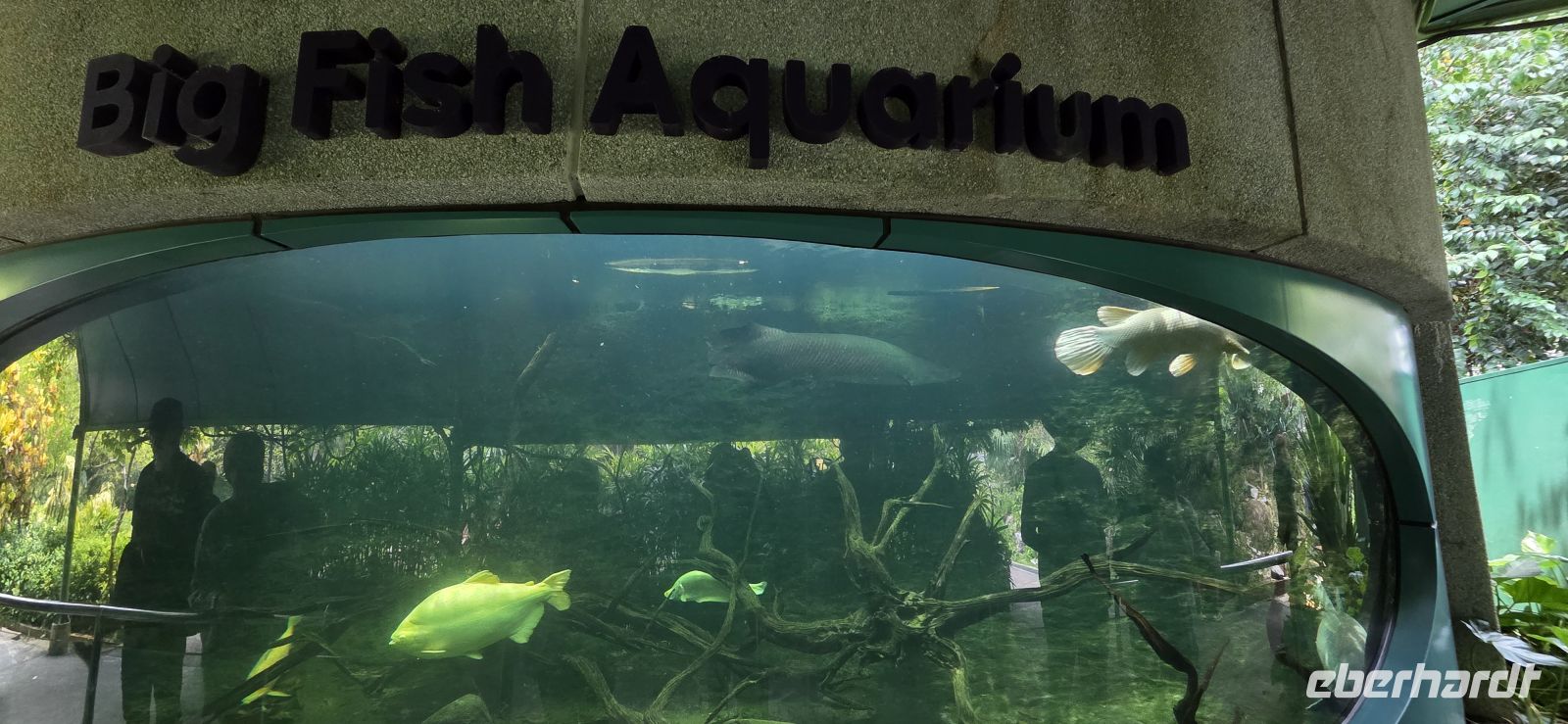 Auf Sentosa unternahmen wir einen kleinen Spaziergang durch die tropische Landschaft, bevor wir das beeindruckende S.E.A. Aquarium besuchten. Beim Gang durch die gläsernen Tunnel schwebten Mantarochen und Haie majestätisch über uns hinweg – ein faszinierender Einblick in die Unterwasserwelt.