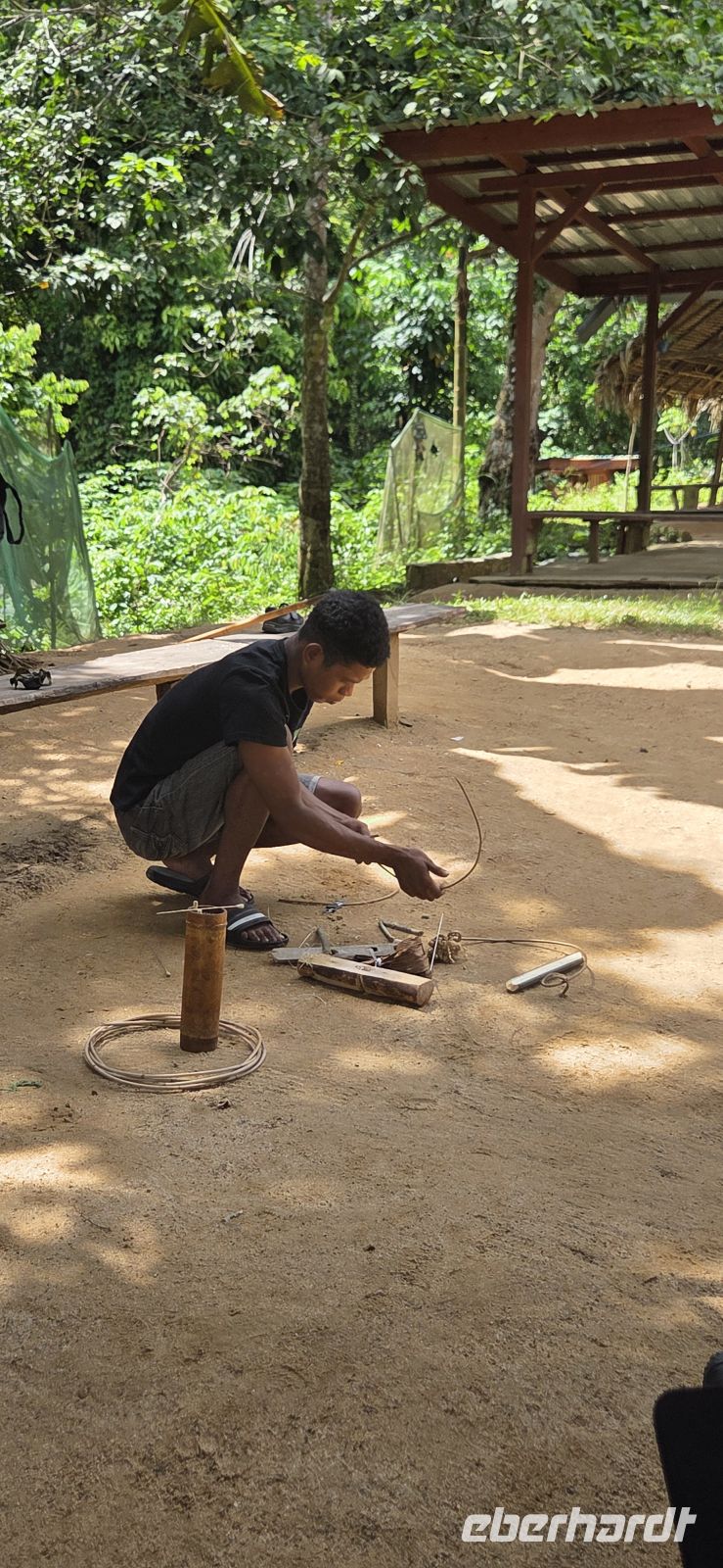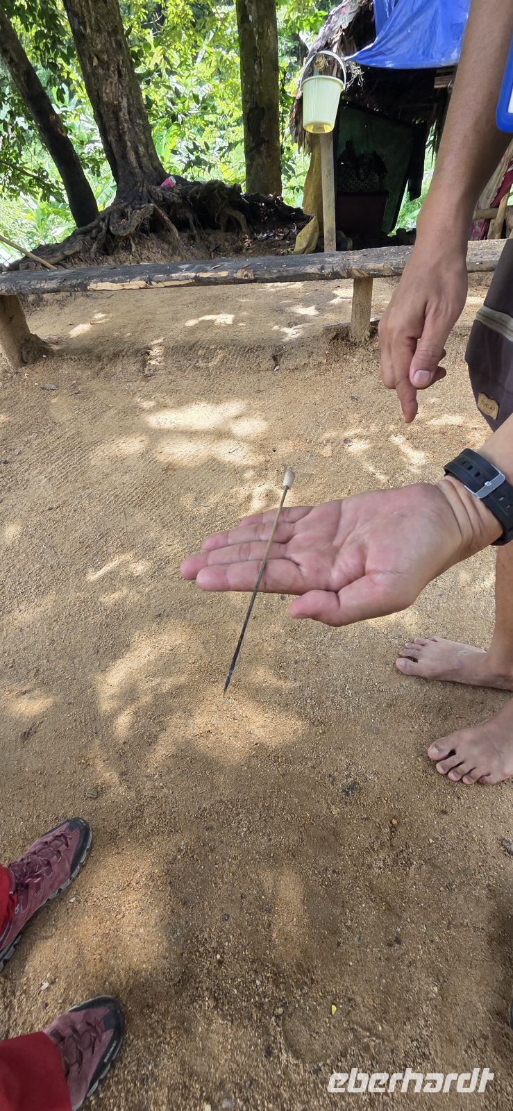 Gegen Mittag erreichten wir ein Dorf der Orang Asli, der Ureinwohner Malaysias. Along kannte viele der Bewohner persönlich und erzählte uns von ihrer einfachen, aber engen Verbundenheit mit der Natur. Wir sahen, wie sie Feuer ohne Streichhölzer entzünden, wie geschickt sie mit dem Blasrohr umgehen und welche Pflanzen sie im Alltag nutzen. Ihre Herzlichkeit und die Offenheit, mit der sie uns empfingen, machten diesen Besuch zu einem besonderen Moment – still, authentisch und berührend.