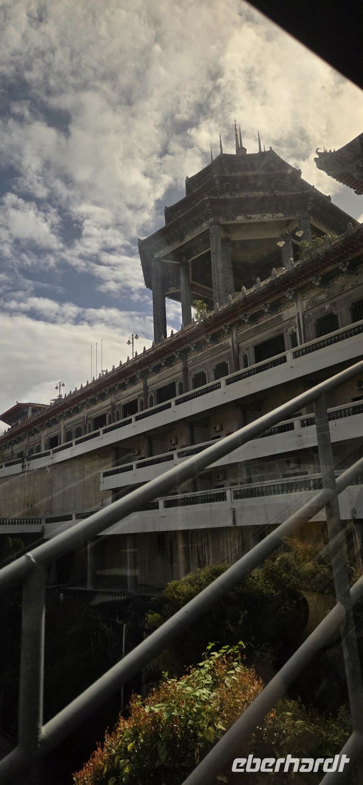 Nach einem köstlichen Mittagessen im indischen Restaurant führte der Weg hinauf zum Kek-Lok-Si-Tempel. Von oben bot sich ein grandioser Blick über Penang – die goldene Statue der Göttin der Barmherzigkeit wachte still über Stadt und Meer. Ein kurzer Halt an der Festung Cornwall und ein gemütlicher Abend in der Sky Lounge mit Blick auf die Lichter der Stadt rundeten diesen Tag stimmungsvoll ab.en.