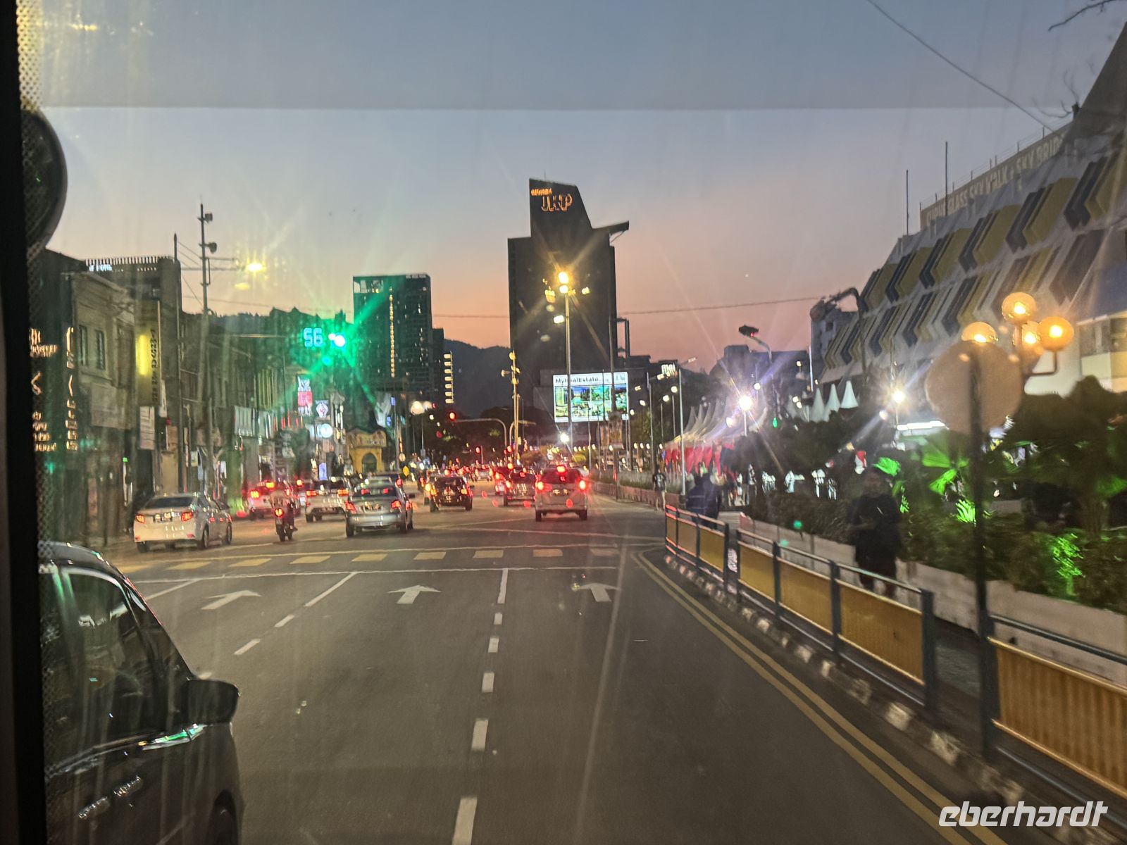 Nach problemloser Passage der Grenze verlassen wir den Stadtstaat und reisen in Malaysia ein. Jetz steigen wir um in den malayischen Bus, wo uns Raj unser indischer Fahrer für die nächste Etappe der Reise begrüßt.
