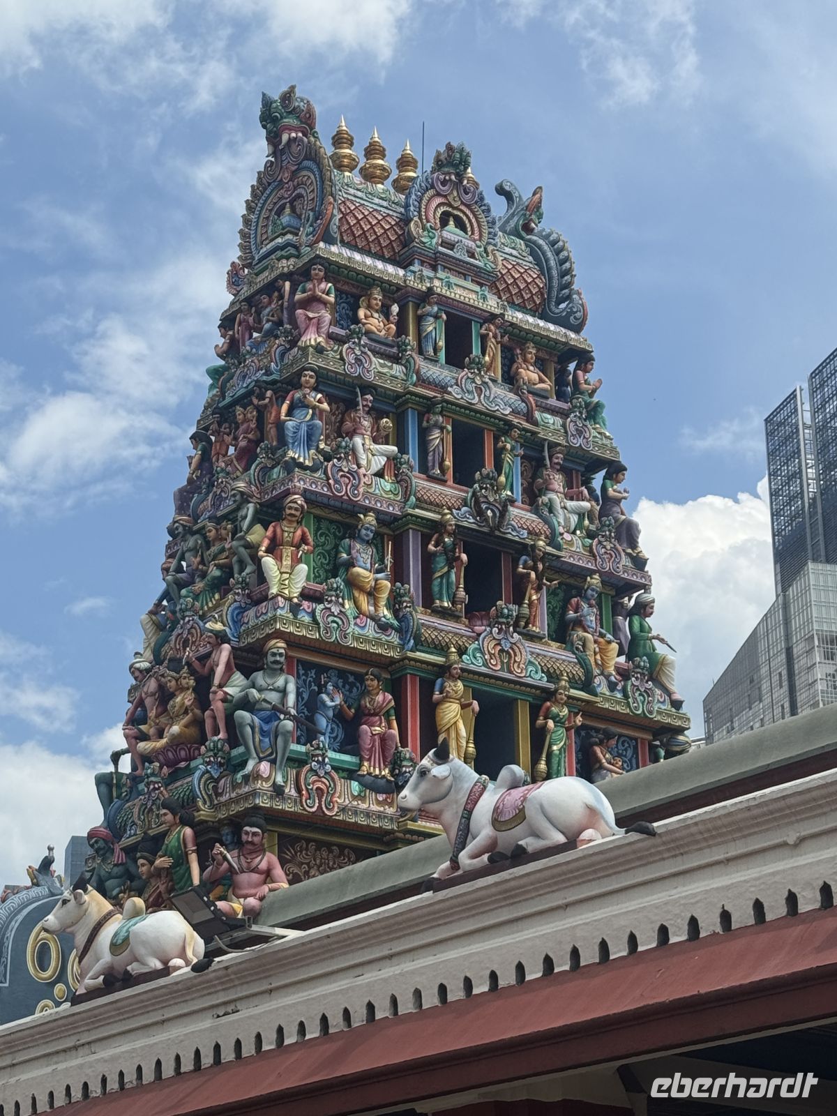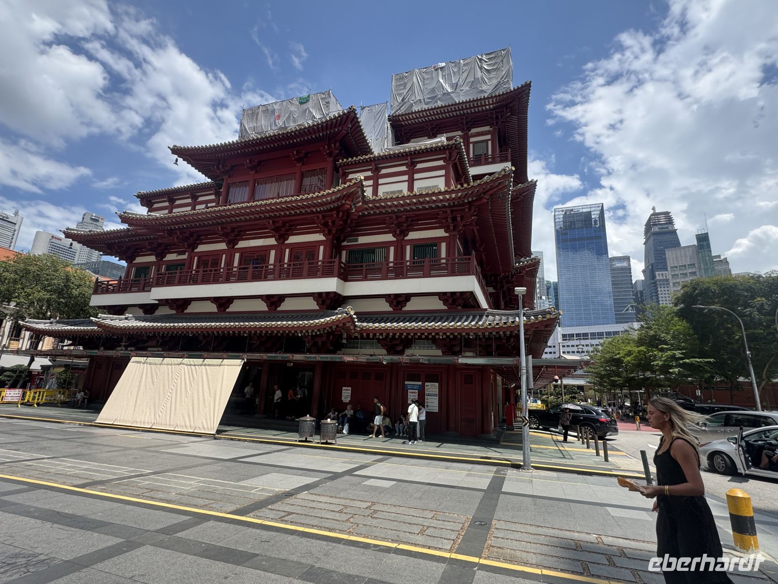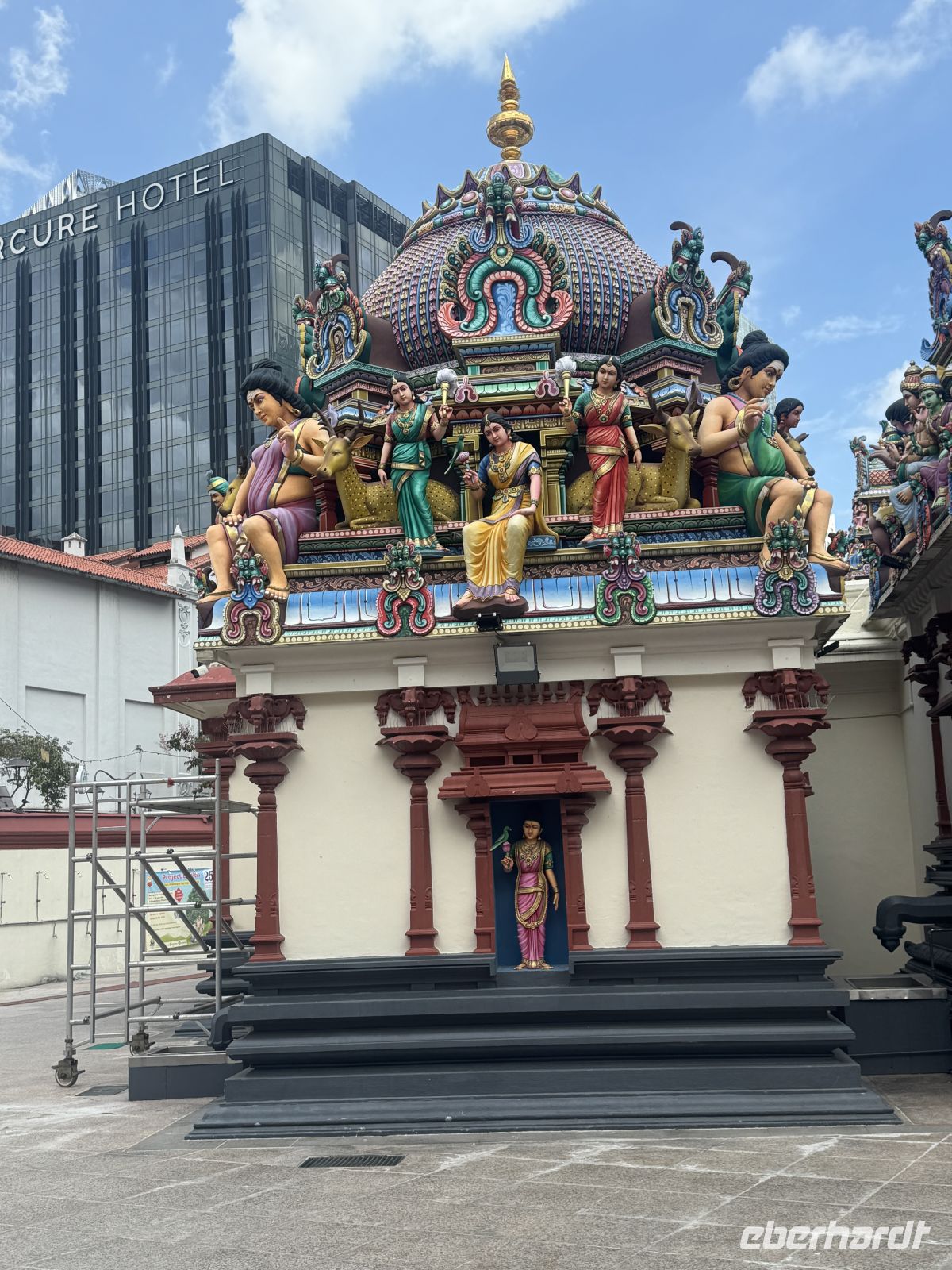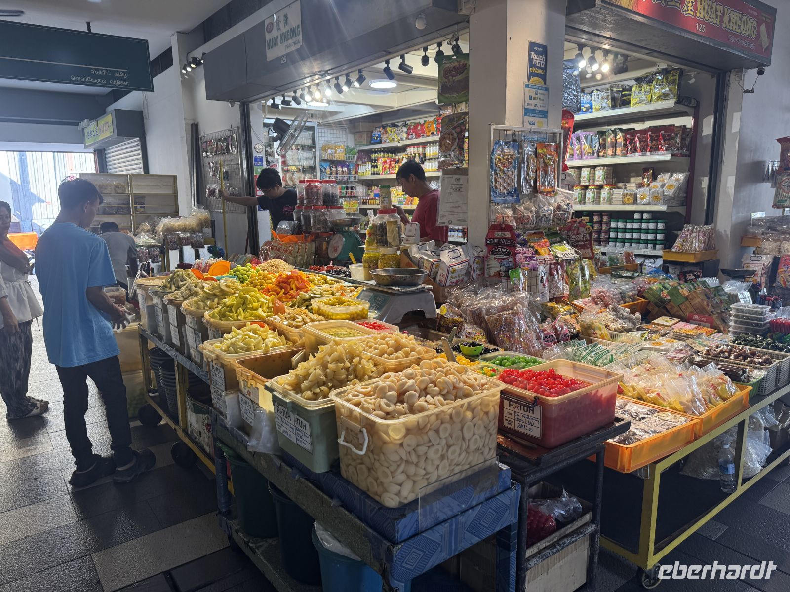 Anschließend bringt uns unser Bus nach Chinatown, wo wir den "Thian Hock Keng Tempel", den ältesten chinesischen Tempel Singapurs aus dem Jahr 1839, besuchen. Er ist das religiöse Zentrum der chinesischen Einwanderergemeinde. Hier legen wir eine kurze Mittagspause ein und probieren in einer Garküche eines der nationalen Gerichte - das Laksa. Nach diesem sehr interessanten Besuch geht es in die Stadt zurück nach Little India wo es wie in der indischen Heimat zahlreiche Kleidermärkte und Geschäfte gibt. Im Moment ist noch Ramadan und somit wird das Leben auf der Straße hauptsächlich von den zahlreichen Touristen dominiert.