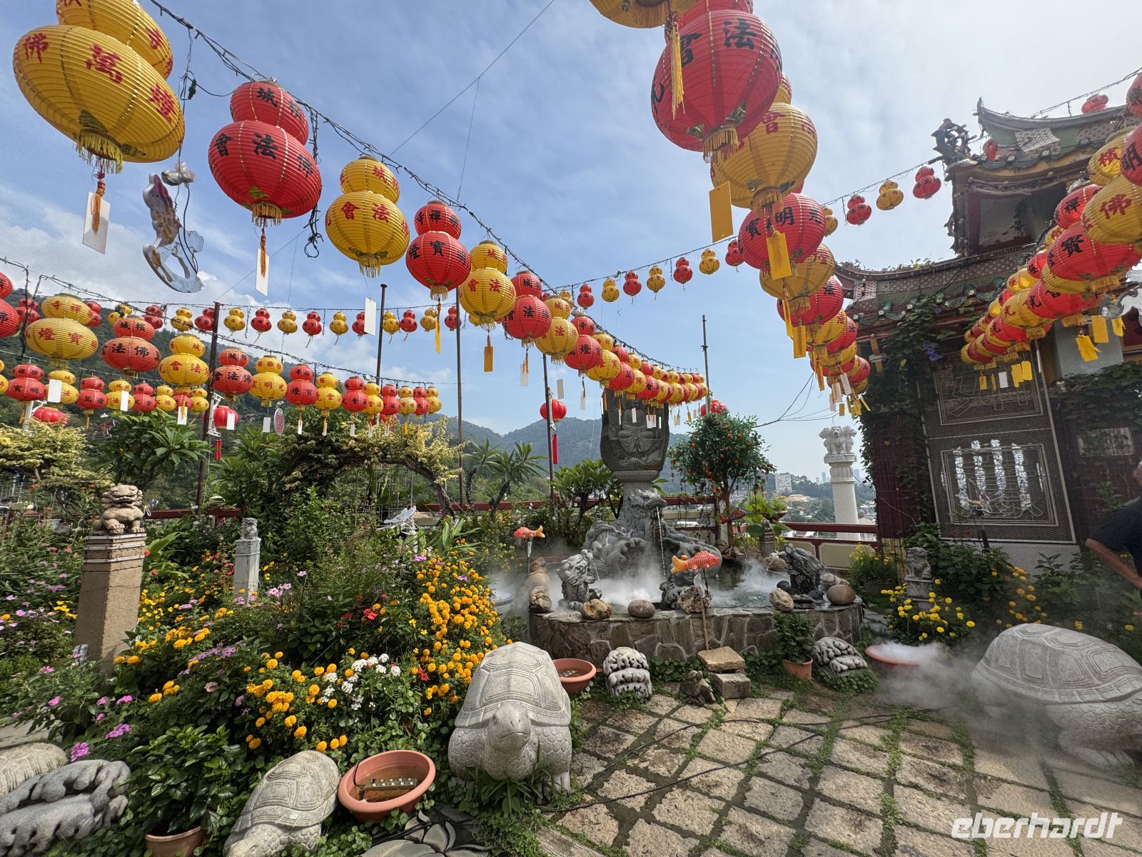 Wir verlassen das Hotel und fahren mit 2 Kleinbussen zur Tempelanlage Kek-Lok-Si.
