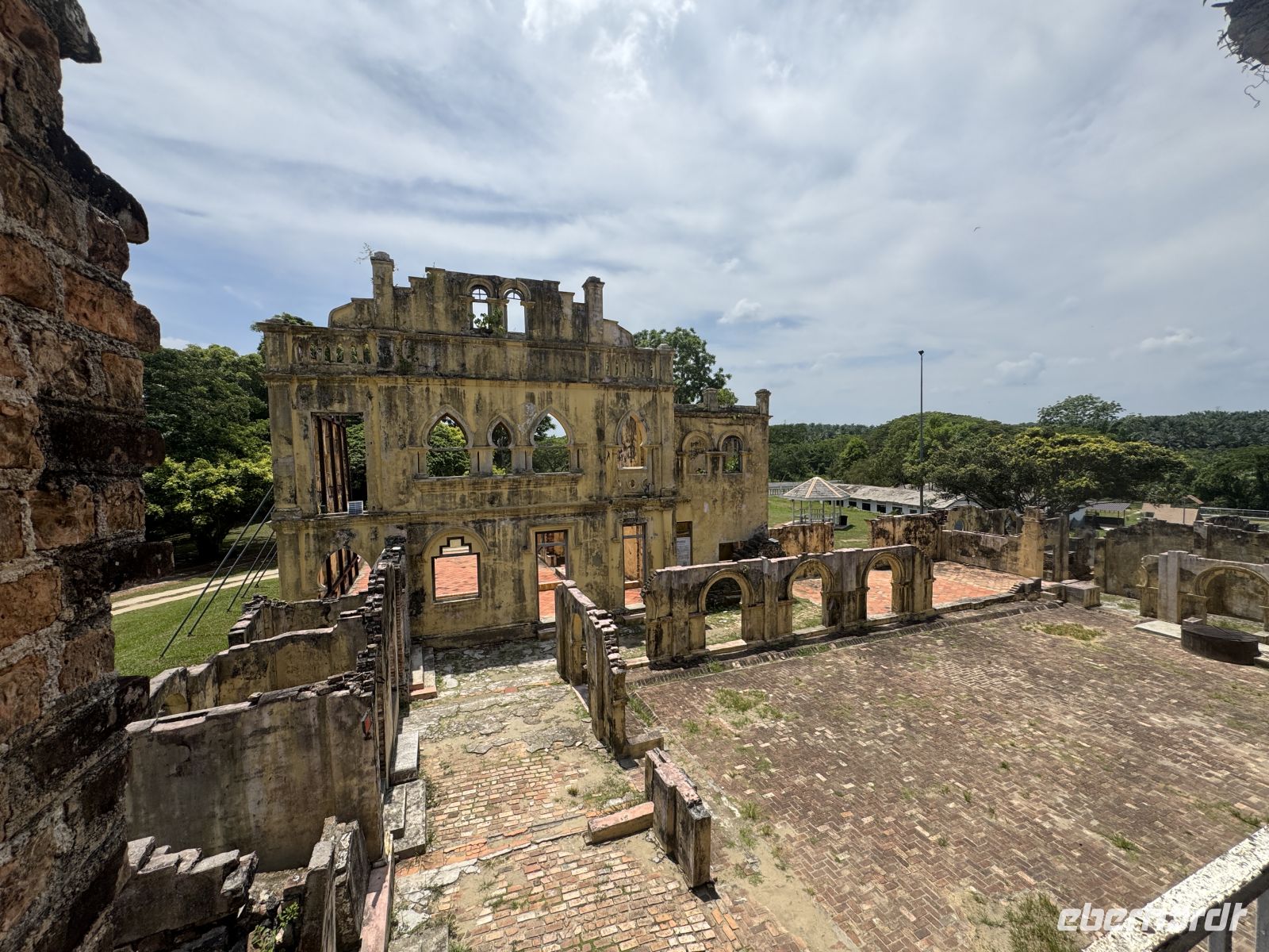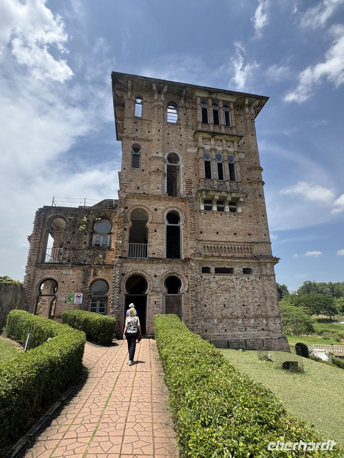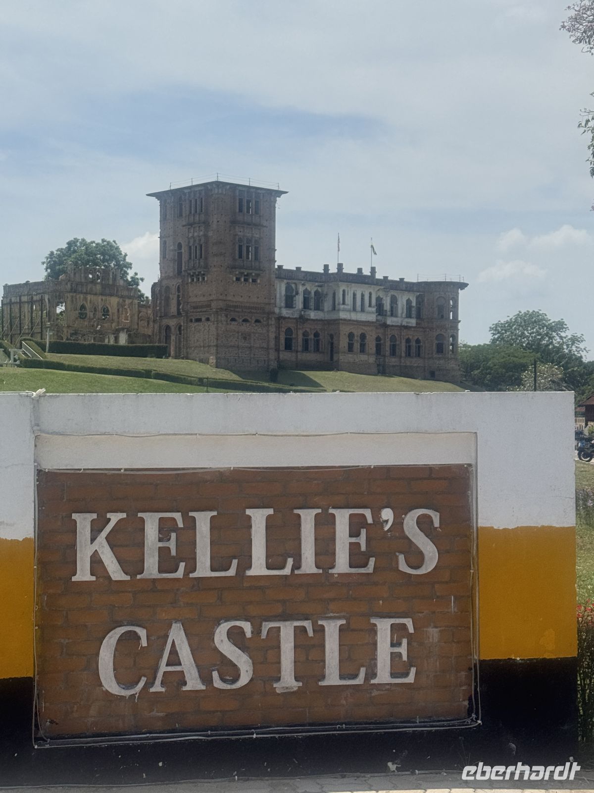 Weiter geht es zu Kellie’s Castle einem unvollendeten und in Teilen zerstörten Herrenhaus des schottischen Kautschuk-Pflanzer und Zinn-Unternehmers William Kellie-Smith. William Kellie Smith (1870–1926) wurde 1870 in Kellas am Moray Firth in Schottland geboren und kam 1890 als Bauingenieur nach British Malaya. Er schloss sich der Vermessungsfirma von Charles Alma Baker an, der die Landesregierung die Rodung von 9000 Hektar Wald in Batu Gajah genehmigt hatte. Mit den beträchtlichen Gewinnen, die er aus seiner Geschäftsbeziehung mit Baker erzielt hatte, kaufte Smith 1000 Hektar Dschungelland im Bezirk Kinta, begann mit dem Pflanzen von Gummibäumen und versuchte sich im Zinnbergbau. Berichten zufolge handelt es sich bei dem Gebäude entweder um ein Geschenk für seine Frau oder um ein Zuhause für seinen Sohn. Die Fertigstellung scheiterte am Ausbruch der Spanischen Grippe unter den Bauarbeitern, die fast alle starben. Smith war nach Portugal gereist, um persönlich eine Aufzugsanlage für das sechsstöckige Gebäude zu kaufen. Auf der Überfahrt starb er an einer Lungenentzündung. Seine Familie kehrte nach Schottland zurück.