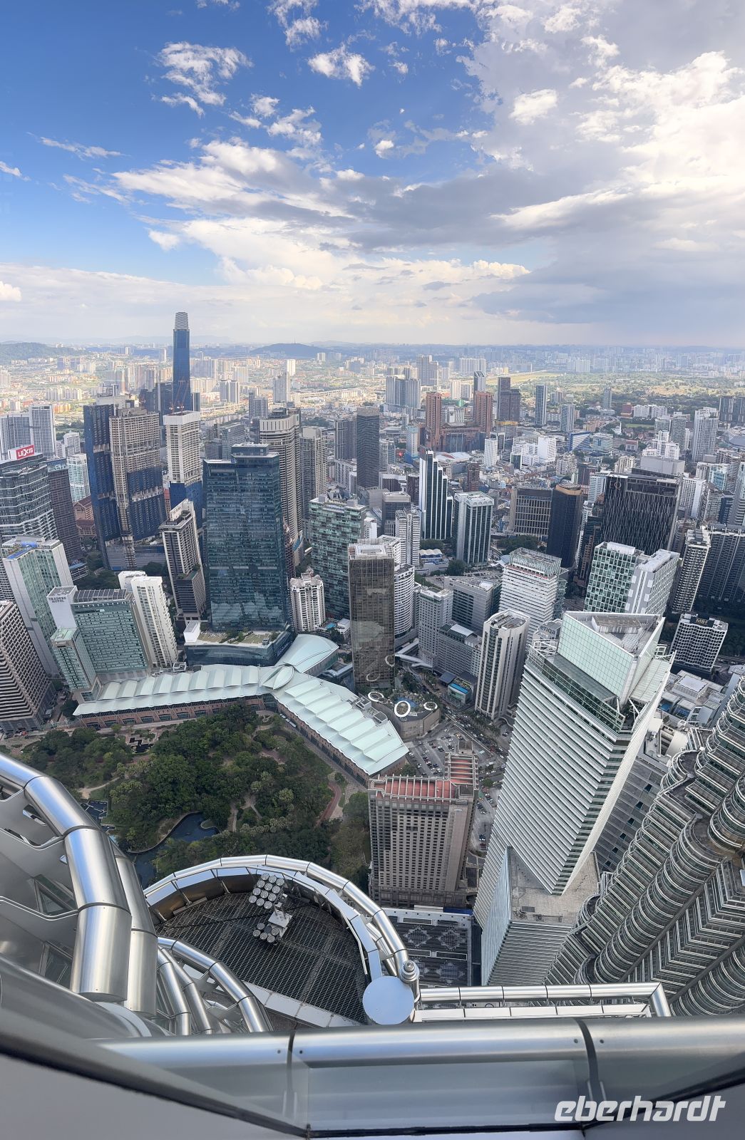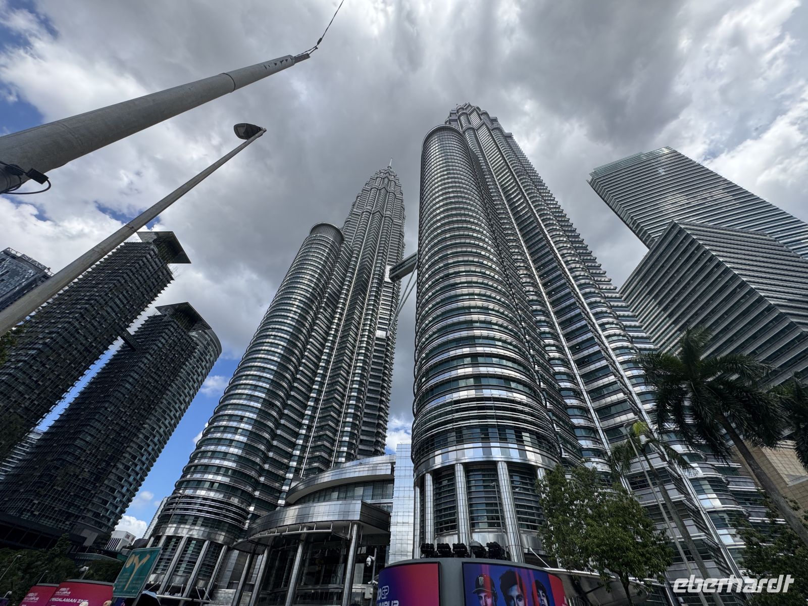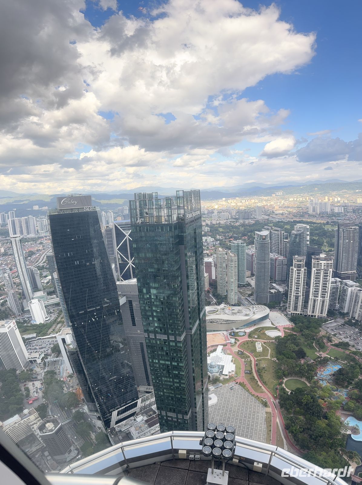 Nach dem Abendessen spazieren wir zum Traders Hotel von dessen Bar auf dem Dachgeschoss wir die imposante KLCC Lake Symphony Water Fountain Show an den Petronas Twin Towers bestaunen.