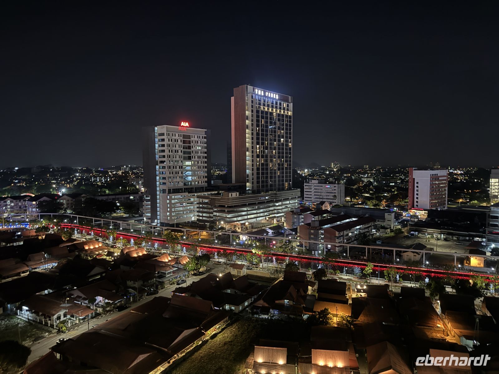 Unseren letzten Tag in Malaysia beenden wir in der Abenddämmerung auf der Dachterrasse des Hotels, von wo aus wir ein Feuerwerk beobachten können.