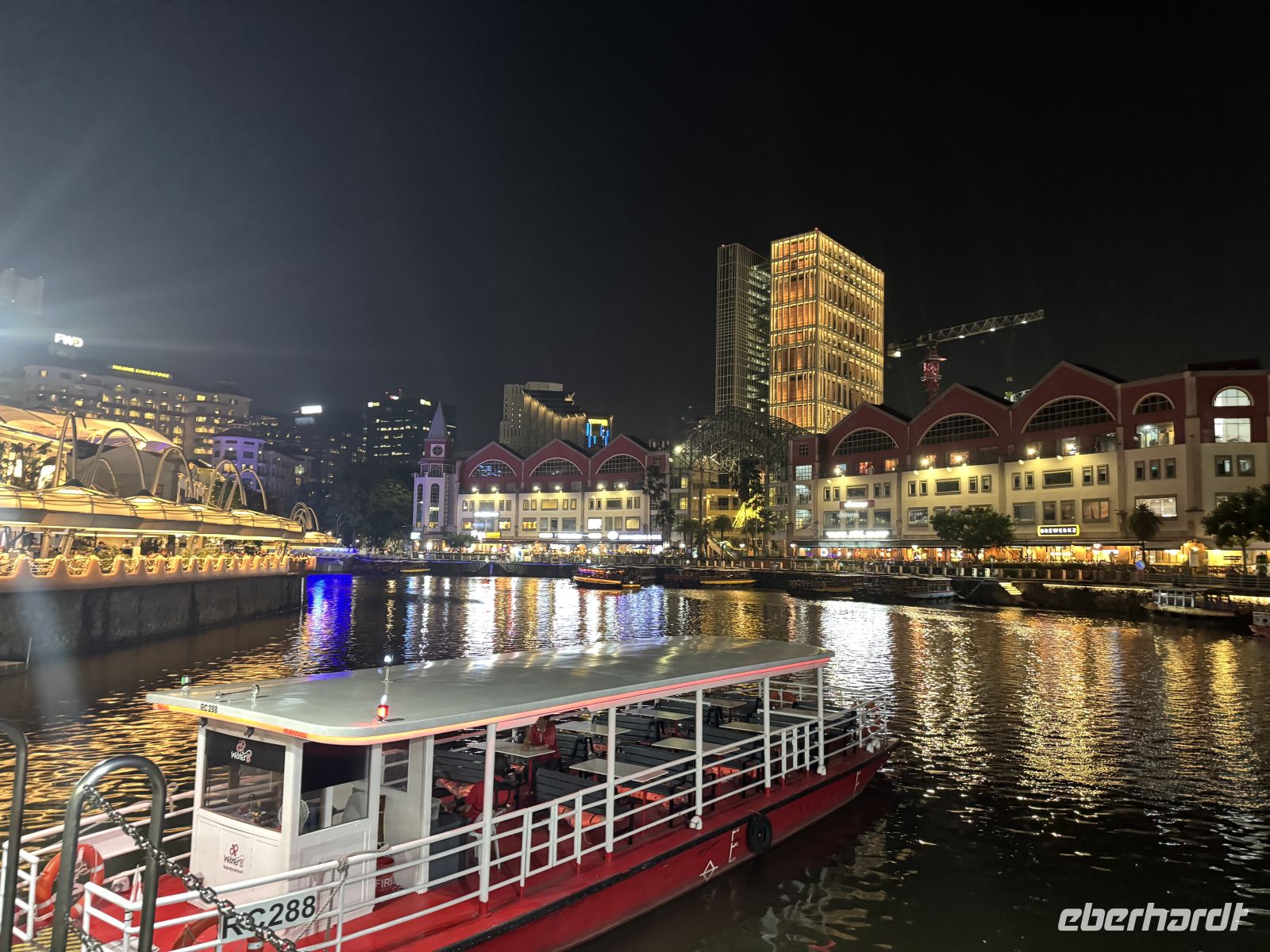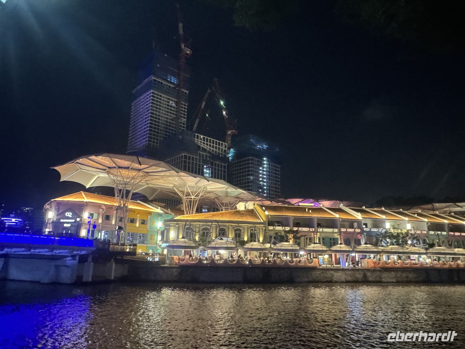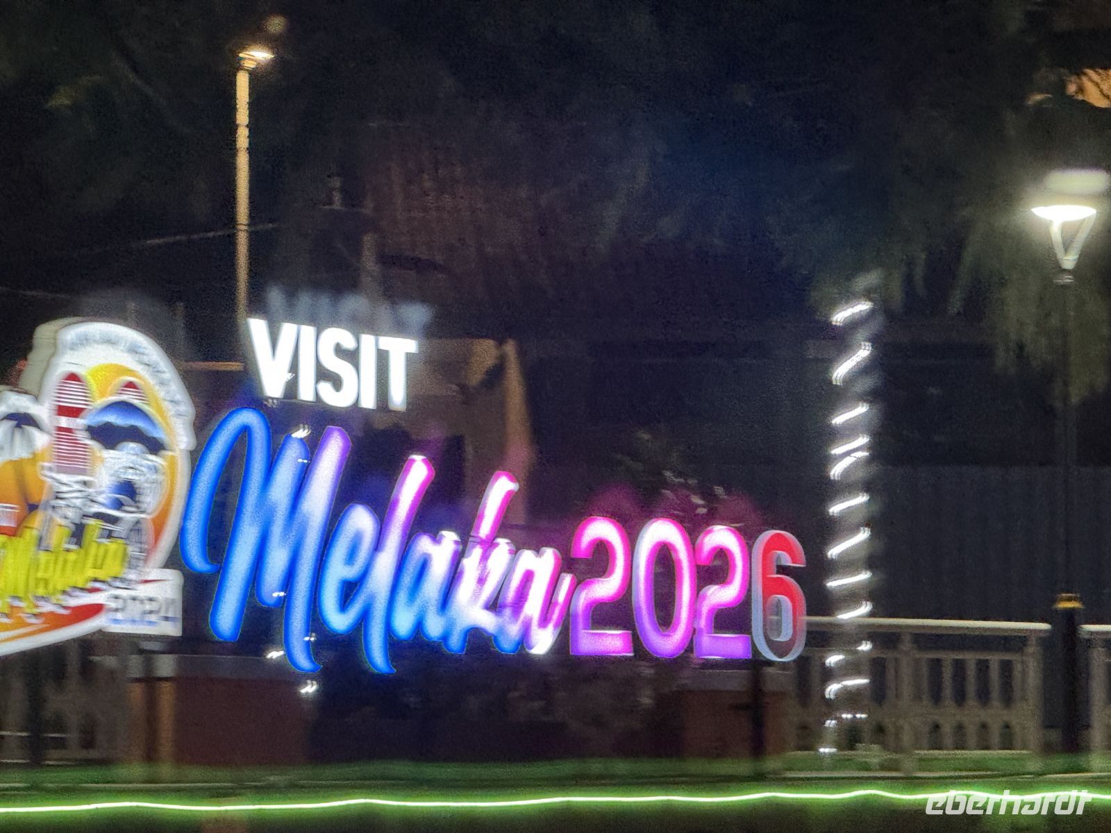 Nach dem typisch malaysischen Abendessen in der Altstadt setzt uns Raj in der Nähe des Bootsanlegers ab, von von wo aus wir uns auf eine knapp einstündige Bootstour durch die wunderschön illuminierte Stadt begeben.