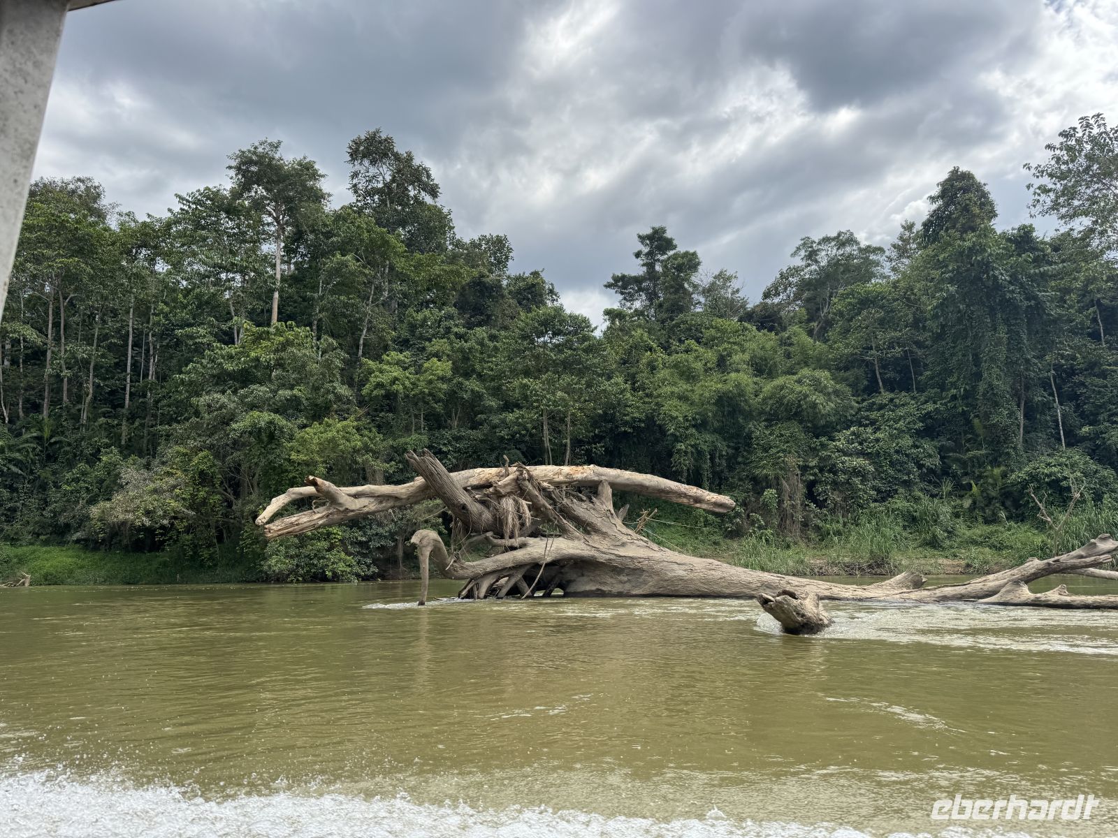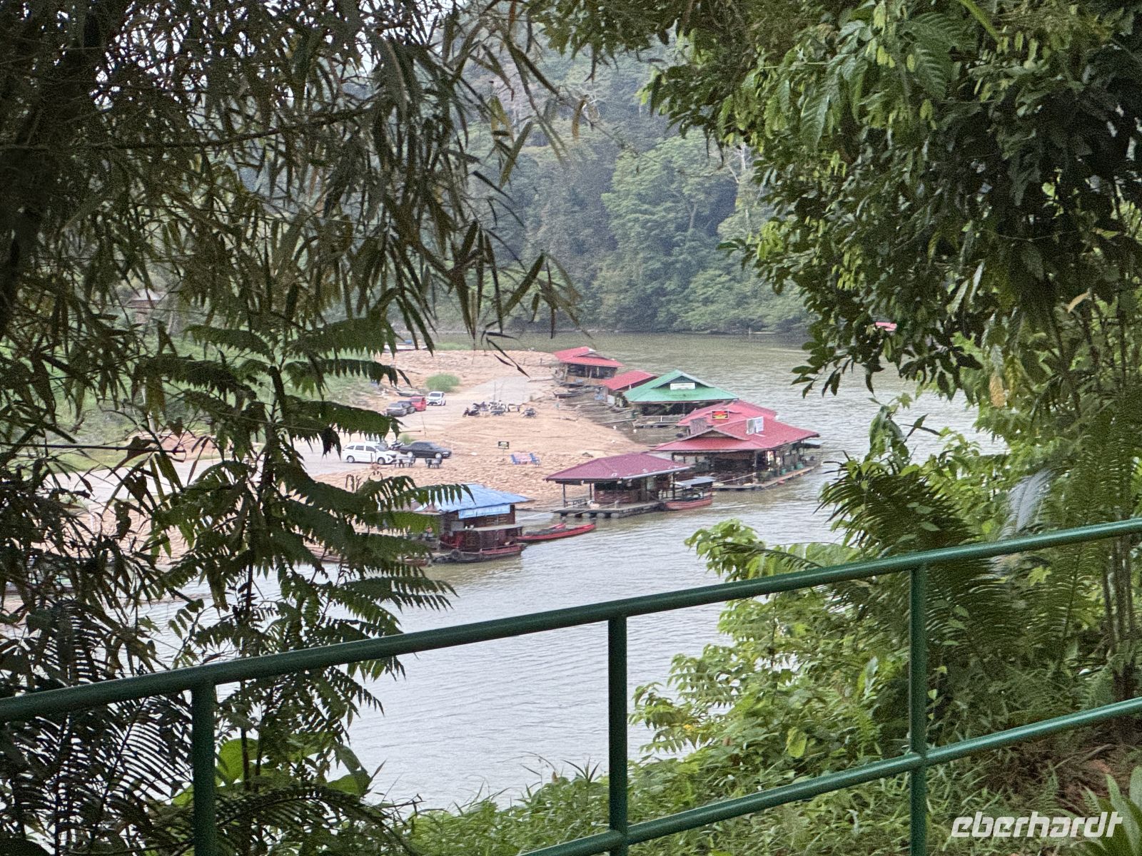 Am Nachmittag erreichen wir den den Trenggan Fluss und fahren mit zwei Booten zu unserem nächsten Quartier im Dschungel. Nach anderthalbstündiger Bootsfahrt im Holzboot erreichen wir das Dorf Kuala Tahan und checken In im Hotel Mutiara Taman Negara ein.