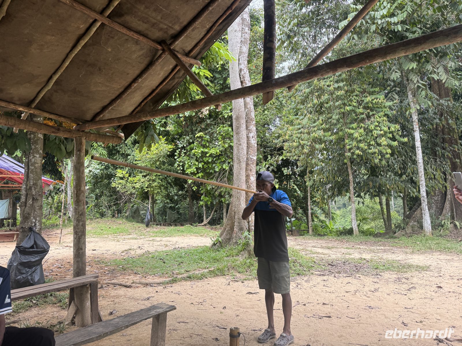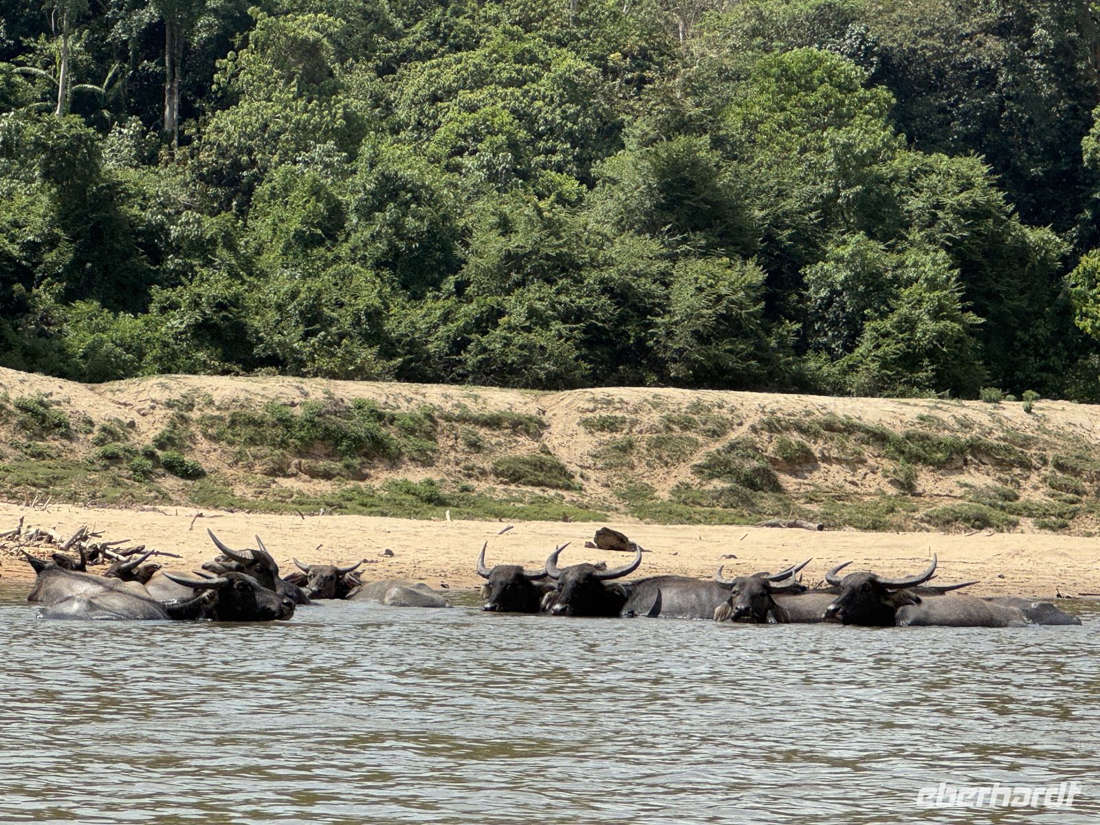 Unser Guide erzählt uns viel über Bräuche und das Leben des Naturvolkes. Höhepunkt ist das Schießen mit einem Original-Blasrohr. Am Flussufer können wir Wasserbüffel beobachten.