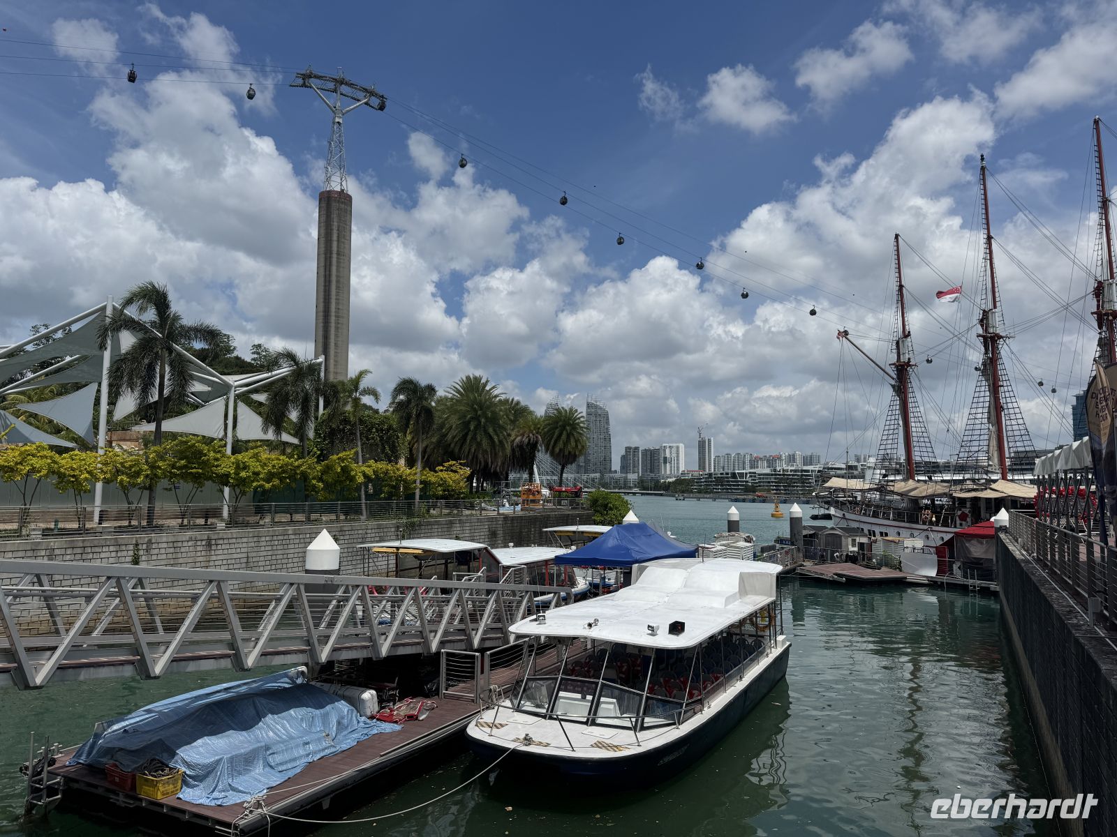 Nach dem sehr guten Frühstück fahren wir auf die Freizeitinsel Sentosa. Vom Aussichtspunkt Mount Faber fahren wir mit der Seilbahn zur Vergnügungs- und Unterhaltungsinsel Sentosa.