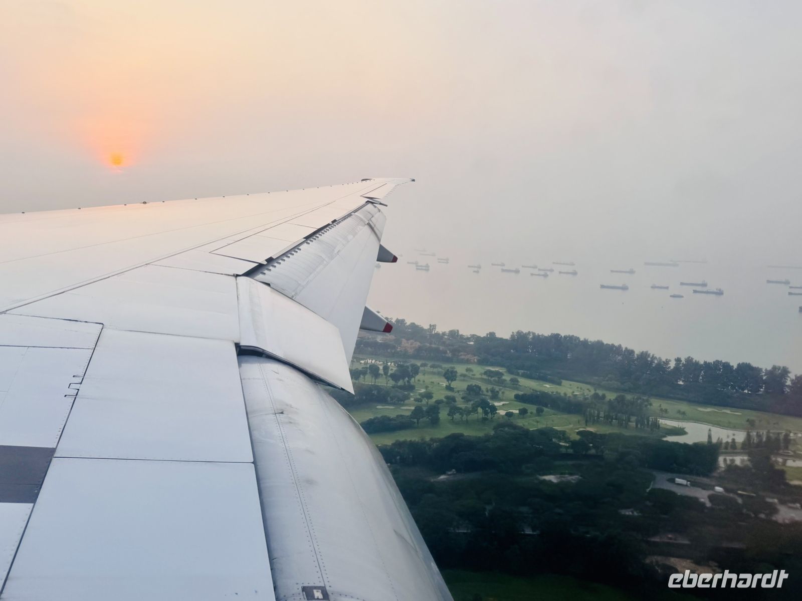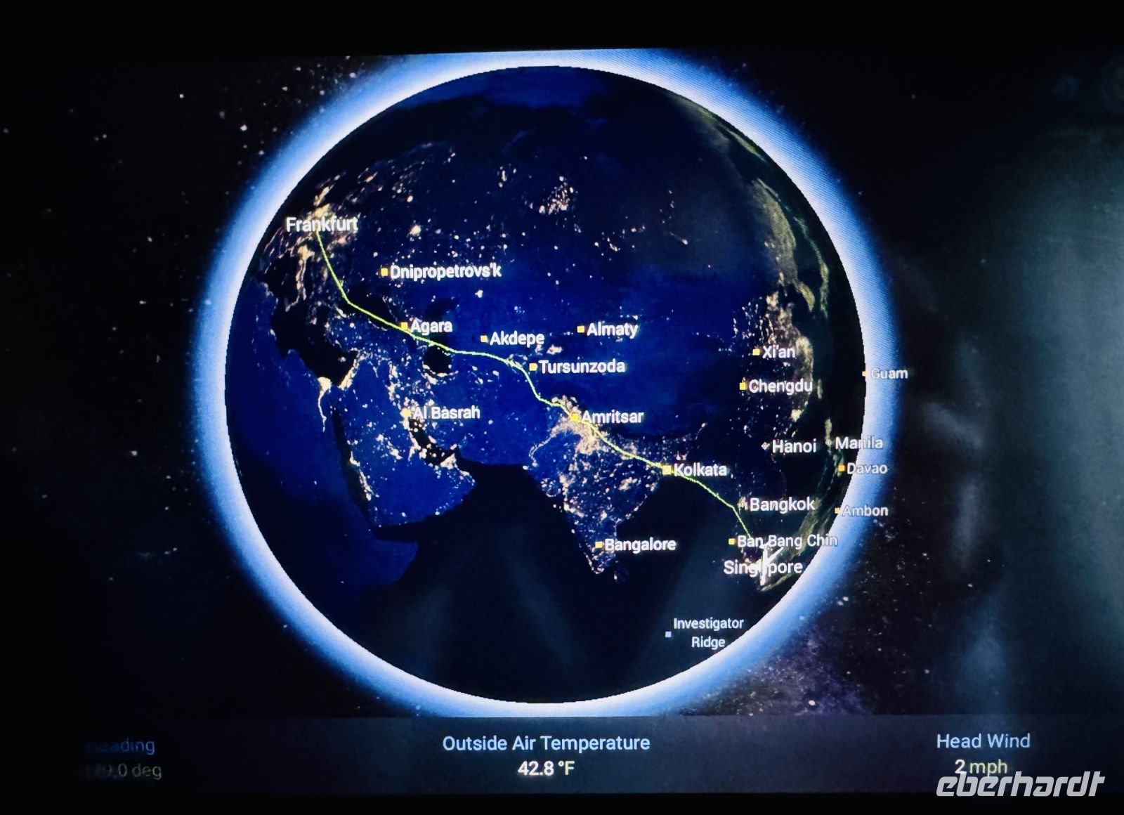 Ein aufregendes Abenteuer warten auf uns. Wir, eine bunt zusammengewürfelte, neun Personen starke Gruppe aus allen Ecken Deutschlands und Österreichs, finden uns in Frankfurt zusammen. Zwischen Koffern und kurzen Begrüßungen stehen die ersten zaghaften Gespräche an. Man sieht neugierige Blicke, vorsichtige Fragen – jeder ist gespannt auf die anderen und auf das, was uns erwartet. Der Flughafen pulsiert vor Leben, und das Gefühl von Aufbruch liegt in der Luft. Nach einer kleinen Verspätung heißt es schließlich am frühen Mittag: Boarding! Unsere Maschine hebt ab in Richtung Singapur – der Stadt der Löwen. Vor uns liegen rund 12 Stunden Flugzeit und beeindruckende 11.000 Kilometer, die wir gemeinsam überwinden werden. In einer Höhe von etwa 11.280 Metern durchqueren wir den Himmel, fliegen über Österreich und den Balkan hinweg. Unter uns glitzert das Schwarze Meer im Sonnenlicht - eine faszinierende Aussicht. Weiter geht die Reise: die Türkei, der mächtige Kaukasus – und dann breitet sich die Nacht unter uns aus. Als wir Baku passieren, taucht die Dämmerung die Stadt in ein letztes sanftes Licht, bevor alles unter uns in Dunkelheit versinkt. Die Route führt uns weiter über das Kaspische Meer, durch Turkmenistan, Afghanistan und Pakistan. Während viele Passagiere schlafen, fliegen wir über Kabul, dann über Indien und sogar Delhi. Unsere Reise führt uns bis über Bangladesch, entlang des Golfs von Bengalen, und schließlich über Myanmar, Thailand und Malaysia. Die Nacht verbringen wir über den Wolken, während die Maschine ruhig über Asien dahingleitet. Auch wenn die Dunkelheit uns vieles der spektakulären Landschaften vorenthält, entsteht doch ein Gefühl von grenzenloser Weite. Als wir uns dem Morgen nähern, erwachen die ersten Gespräche wieder, und man spürt die Spannung in der Luft – Singapur, eine neue Welt, ist nicht mehr weit.
