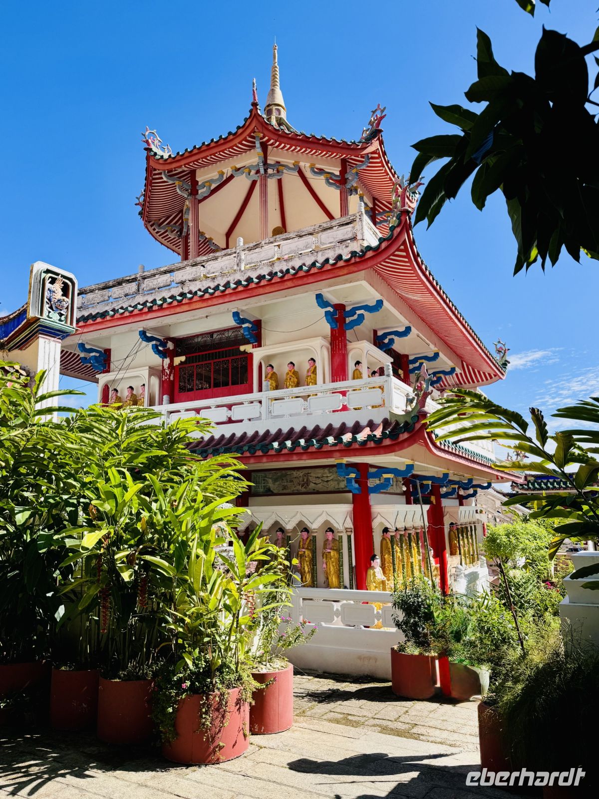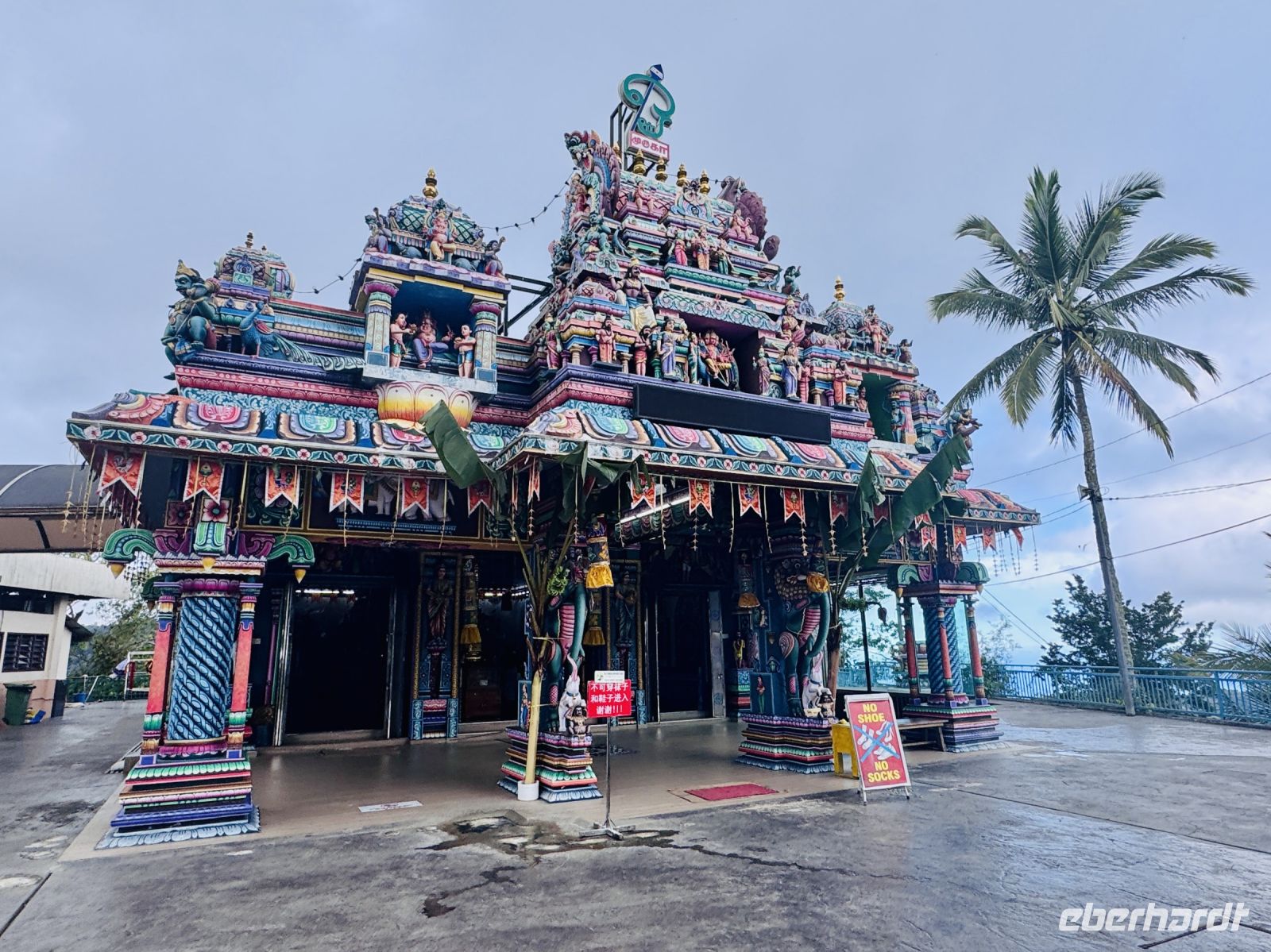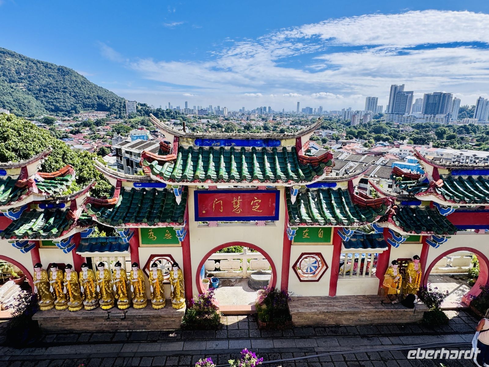 Heute beginnt unser Tag voller Entdeckungen in der vibrierenden Stadt Penang nach einem ausgiebigen Frühstück im Hotel. Unser erstes Ziel ist die beeindruckende Tempelanlage Kek-Lok-Si, die majestätisch auf einem Hügel thront. Wir schlängeln uns durch die kunstvollen Gebetshallen und Innenhöfe, bewundern die filigranen Details der Pagoden und Statuen. Die siebenstöckige Pagode zieht unsere Blicke in ihren Bann, und von hier aus genießen wir einen atemberaubenden Ausblick über die Tempelanlage und die umliegende Landschaft. Die Atmosphäre ist fast mystisch – wir lauschen dem leisen Murmeln der betenden Besucher und nehmen uns einen Moment der Ruhe in dieser spirituellen Oase. Nach dem Tempelbesuch geht es weiter auf den Penang Hill, den wir bequem mit der historischen Standseilbahn erklimmen. Mit jedem Höhenmeter wird die Luft frischer, und die Hitze der Stadt bleibt unter uns zurück. Oben angekommen, eröffnet sich ein unglaubliches Panorama: Die Stadt Penang breitet sich vor uns aus, eingerahmt vom Ozean und den sanften Hügeln. Wir verweilen einen Augenblick und genießen den Blick über das grüne Inselparadies und die Wolkenkratzer der modernen Stadtlandschaft. Nach dem Abstieg stärken wir uns im “Bibiks Restaurant”, wo wir die vielfältigen Aromen der malaysischen Küche probieren. Die herzhaften und exotischen Gewürze der Speisen wecken neue Energie für den Nachmittag. Unser nächstes Ziel ist das Clanhaus Seh Tek Tong Cheah Kongsi, eine farbenprächtige Gemeinschaftshalle der chinesischen Hakka-Gemeinde. Die detailverliebte Architektur und die geschichtsträchtigen Wände erzählen von der reichen kulturellen Vergangenheit Penangs. In den verzweigten Korridoren und prächtigen Sälen tauchen wir ein in die Geschichten und Traditionen der chinesischen Einwandererfamilien und bewundern die kunstvollen Holzschnitzereien und Verzierungen, die die Halle schmücken. Am späten Nachmittag besuchen wir schließlich eine Batikfabrik, in der wir Zeugen eines faszinierenden Kunsthandwerks werden. Mit präzisen Pinselstrichen und einer unglaublichen Geduld entstehen hier auf Seide kunstvolle Bilder in leuchtenden Farben. Der süßliche Geruch des Wachses und die intensiven Farben, die von den Stoffen strahlen, hinterlassen einen bleibenden Eindruck. Mit vielen Eindrücken kehren wir zum Hotel zurück, um uns ein wenig auszuruhen, bevor wir uns am frühen Abend wieder treffen. Gemeinsam spazieren wir zu einem nahegelegenen japanischen Restaurant, wo wir den Tag bei gutem Essen ausklingen lassen. Lächelnd stoßen wir auf die Erlebnisse des Tages an und lassen das bunte Treiben der Stadt um uns herum allmählich zur Ruhe kommen. Ein perfekter Abschluss für einen unvergesslichen Tag in Penang.