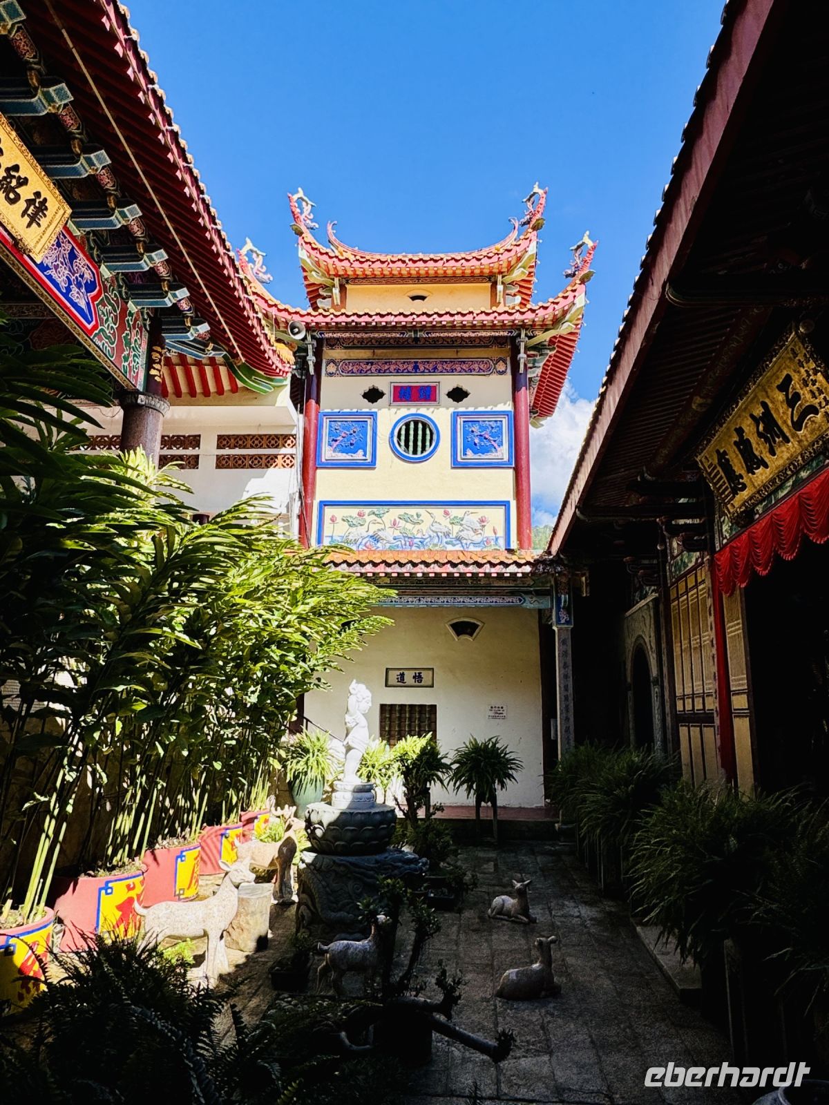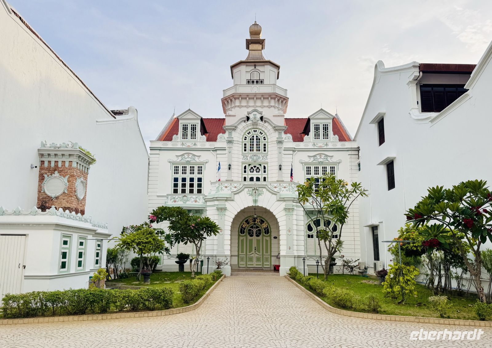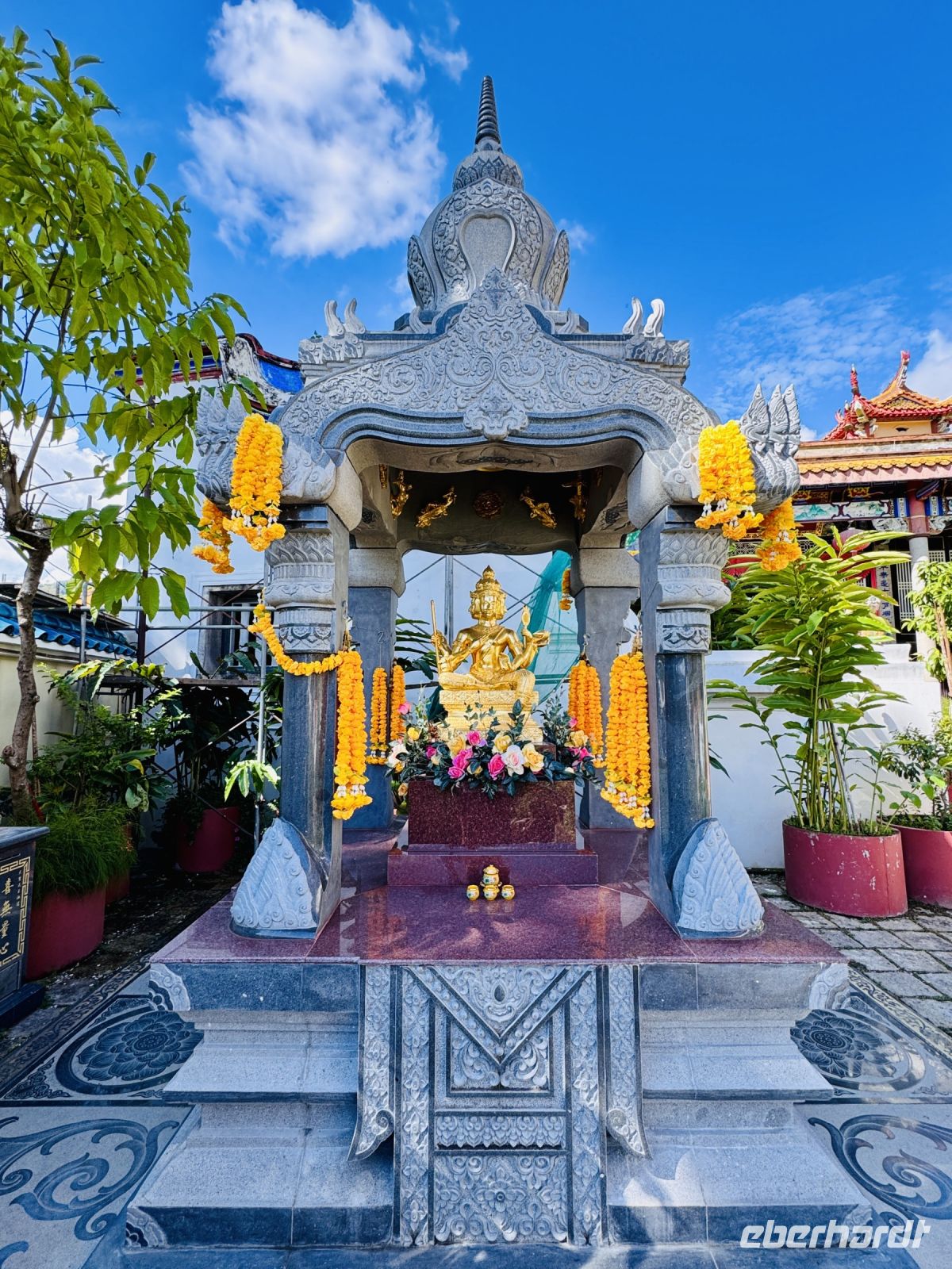 Heute beginnt unser Tag voller Entdeckungen in der vibrierenden Stadt Penang nach einem ausgiebigen Frühstück im Hotel. Unser erstes Ziel ist die beeindruckende Tempelanlage Kek-Lok-Si, die majestätisch auf einem Hügel thront. Wir schlängeln uns durch die kunstvollen Gebetshallen und Innenhöfe, bewundern die filigranen Details der Pagoden und Statuen. Die siebenstöckige Pagode zieht unsere Blicke in ihren Bann, und von hier aus genießen wir einen atemberaubenden Ausblick über die Tempelanlage und die umliegende Landschaft. Die Atmosphäre ist fast mystisch – wir lauschen dem leisen Murmeln der betenden Besucher und nehmen uns einen Moment der Ruhe in dieser spirituellen Oase. Nach dem Tempelbesuch geht es weiter auf den Penang Hill, den wir bequem mit der historischen Standseilbahn erklimmen. Mit jedem Höhenmeter wird die Luft frischer, und die Hitze der Stadt bleibt unter uns zurück. Oben angekommen, eröffnet sich ein unglaubliches Panorama: Die Stadt Penang breitet sich vor uns aus, eingerahmt vom Ozean und den sanften Hügeln. Wir verweilen einen Augenblick und genießen den Blick über das grüne Inselparadies und die Wolkenkratzer der modernen Stadtlandschaft. Nach dem Abstieg stärken wir uns im “Bibiks Restaurant”, wo wir die vielfältigen Aromen der malaysischen Küche probieren. Die herzhaften und exotischen Gewürze der Speisen wecken neue Energie für den Nachmittag. Unser nächstes Ziel ist das Clanhaus Seh Tek Tong Cheah Kongsi, eine farbenprächtige Gemeinschaftshalle der chinesischen Hakka-Gemeinde. Die detailverliebte Architektur und die geschichtsträchtigen Wände erzählen von der reichen kulturellen Vergangenheit Penangs. In den verzweigten Korridoren und prächtigen Sälen tauchen wir ein in die Geschichten und Traditionen der chinesischen Einwandererfamilien und bewundern die kunstvollen Holzschnitzereien und Verzierungen, die die Halle schmücken. Am späten Nachmittag besuchen wir schließlich eine Batikfabrik, in der wir Zeugen eines faszinierenden Kunsthandwerks werden. Mit präzisen Pinselstrichen und einer unglaublichen Geduld entstehen hier auf Seide kunstvolle Bilder in leuchtenden Farben. Der süßliche Geruch des Wachses und die intensiven Farben, die von den Stoffen strahlen, hinterlassen einen bleibenden Eindruck. Mit vielen Eindrücken kehren wir zum Hotel zurück, um uns ein wenig auszuruhen, bevor wir uns am frühen Abend wieder treffen. Gemeinsam spazieren wir zu einem nahegelegenen japanischen Restaurant, wo wir den Tag bei gutem Essen ausklingen lassen. Lächelnd stoßen wir auf die Erlebnisse des Tages an und lassen das bunte Treiben der Stadt um uns herum allmählich zur Ruhe kommen. Ein perfekter Abschluss für einen unvergesslichen Tag in Penang.