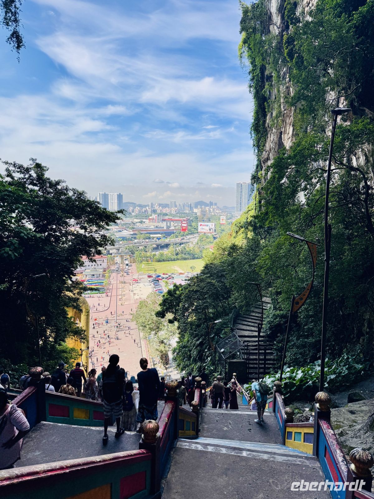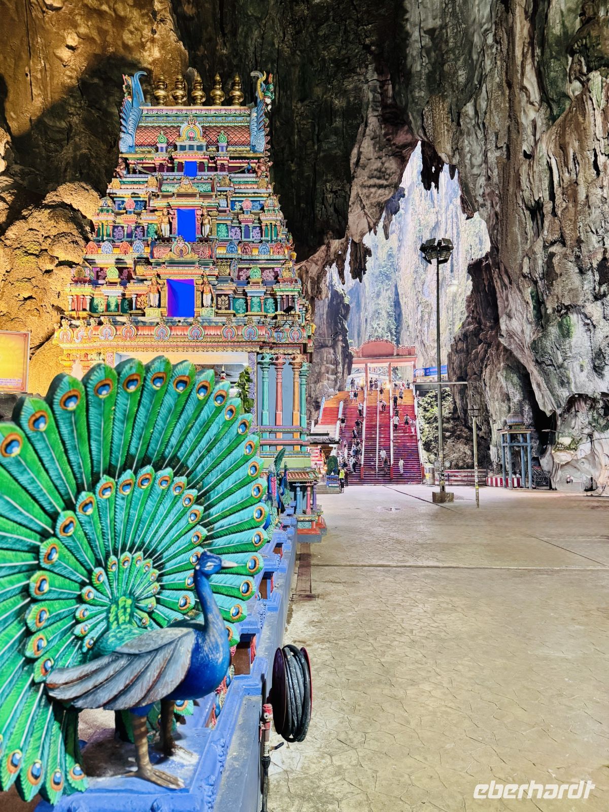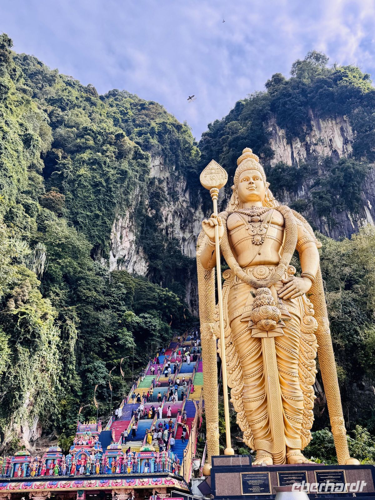 Nach einer erholsamen Nacht begrüßt uns Kuala Lumpur mit strahlend blauem Himmel und Sonnenschein. Es ist der perfekte Tag, um die Vielseitigkeit dieser lebendigen malaiischen Hauptstadt zu erkunden. Unser erstes Ziel: die legendären Batu-Höhlen, die rund 15 Kilometer nördlich des Stadtzentrums in eine Felswand eingebettet sind. Schon von weitem fällt uns die 42 Meter hohe, goldene Statue des Hindu-Gottes Murugan auf, die den Eingang zur heiligen Stätte bewacht. Mit ihren bunten Treppen, die in die Höhe führen, und den Kalksteinformationen, die die Höhlen zu einem magischen Ort machen, wirken die Batu-Höhlen wie aus einer anderen Welt. Die Atmosphäre hier ist einzigartig – überall sind Pilger und Besucher, die diese heiligen Höhlen bewundern. Und dann sind da noch die frechen Makaken, die in Scharen herumlaufen, immer auf der Suche nach etwas Essbarem. Sie springen über die Treppen, schnappen nach Taschen und sorgen für so manchen Lacher und Aufschrei. Es ist ein Erlebnis, das sich kaum in Worte fassen lässt. Nach diesem Abenteuer machen wir uns auf den Weg zur Royal Selangor Zinnfabrik, die als weltweit größte Zinngießerei berühmt ist. Hier erfahren wir alles über die lange Geschichte des Zinnhandwerks in Malaysia. Unsere Führung übernimmt Suzie, die uns voller Begeisterung von der Zinngießkunst erzählt. Sie erklärt, dass die Zinngießerei in Malaysia im 19. Jahrhundert von chinesischen Einwanderern ins Land gebracht wurde und Kuala Lumpur damals durch den Zinnabbau florierte. Im Besucherzentrum sehen wir die faszinierenden, handwerklichen Techniken, mit denen in filigraner Präzision Schmuck, Becher und kunstvolle Vasen hergestellt werden – eine Tradition, die Royal Selangor seit über 130 Jahren pflegt. Zurück in Kuala Lumpur tauchen wir in das quirlige Leben des Stadtzentrums ein und gönnen uns im KLCC Foodcourt eine wohlverdiente Mittagspause. Der Foodcourt ist ein Schmelztiegel kulinarischer Einflüsse: Von indischen Roti Canai über chinesische Dim Sum bis hin zu typisch malaysischem Nasi Lemak – die Vielfalt ist überwältigend. Gestärkt und neugierig auf den Nachmittag machen wir uns bereit für die zweite Etappe unserer Entdeckungstour. Unsere Stadtrundfahrt beginnt mit dem Königspalast Istana Negara, der offiziellen Residenz des malaysischen Königs. Dieses prachtvolle Anwesen mit seiner imposanten goldenen Kuppel ist umgeben von wunderschönen Gärten, und die königliche Wachparade vor dem Palast ist ein Anblick, der sofort beeindruckt. Nächster Halt: das Nationalmonument (Tugu Negara), eine mächtige Bronzestatue, die an die Opfer des Kampfes für die Unabhängigkeit Malaysias erinnert. Umgeben von Brunnen und gepflegten Gärten strahlt dieses Denkmal eine ruhige und zugleich ehrwürdige Atmosphäre aus – ein Ort, der Respekt für die Geschichte des Landes weckt. Weiter geht es zum Asia-Skulpturen-Park, wo moderne Skulpturen asiatischer Künstler inmitten grüner Parkanlagen aufgestellt sind. Hier verbinden sich Kunst und Natur, und wir genießen die friedliche Stimmung des Parks. Nächster Programmpunkt: die Nationalmoschee (Masjid Negara). Mit ihrem markanten blauen Dach und einem Minarett, das wie ein Speer in den Himmel ragt, ist die Moschee ein herausragendes Beispiel moderner islamischer Architektur. Unser letzter Stopp auf der Rundfahrt ist der Dataran Merdeka, der Unabhängigkeitsplatz. Hier wurde am 31. August 1957 die Unabhängigkeit Malaysias ausgerufen, und der 100 Meter hohe Fahnenmast erinnert bis heute an diesen historischen Moment. Umgeben von Kolonialgebäuden wie dem Sultan Abdul Samad Building versetzt uns der Platz in die Geschichte zurück, und gleichzeitig spüren wir das moderne Leben, das sich überall um uns herum abspielt. Bevor der Tag zu Ende geht, machen wir einen kurzen Abstecher ins Hotel, um kurz zu entspannen. Am Abend erwartet uns im Restaurant Bijan ein kulinarisches Highlight. Das Bijan ist für seine authentische malaysische Küche bekannt, die traditionelle Aromen und kreative Interpretationen vereint. Bei Gerichten wie Rendang und würzigem Sambal lassen wir den ereignisreichen Tag Revue passieren und genießen die wunderbare Atmosphäre. Mit vollem Herzen und unzähligen Eindrücken endet dieser unvergessliche Tag in Kuala Lumpur.