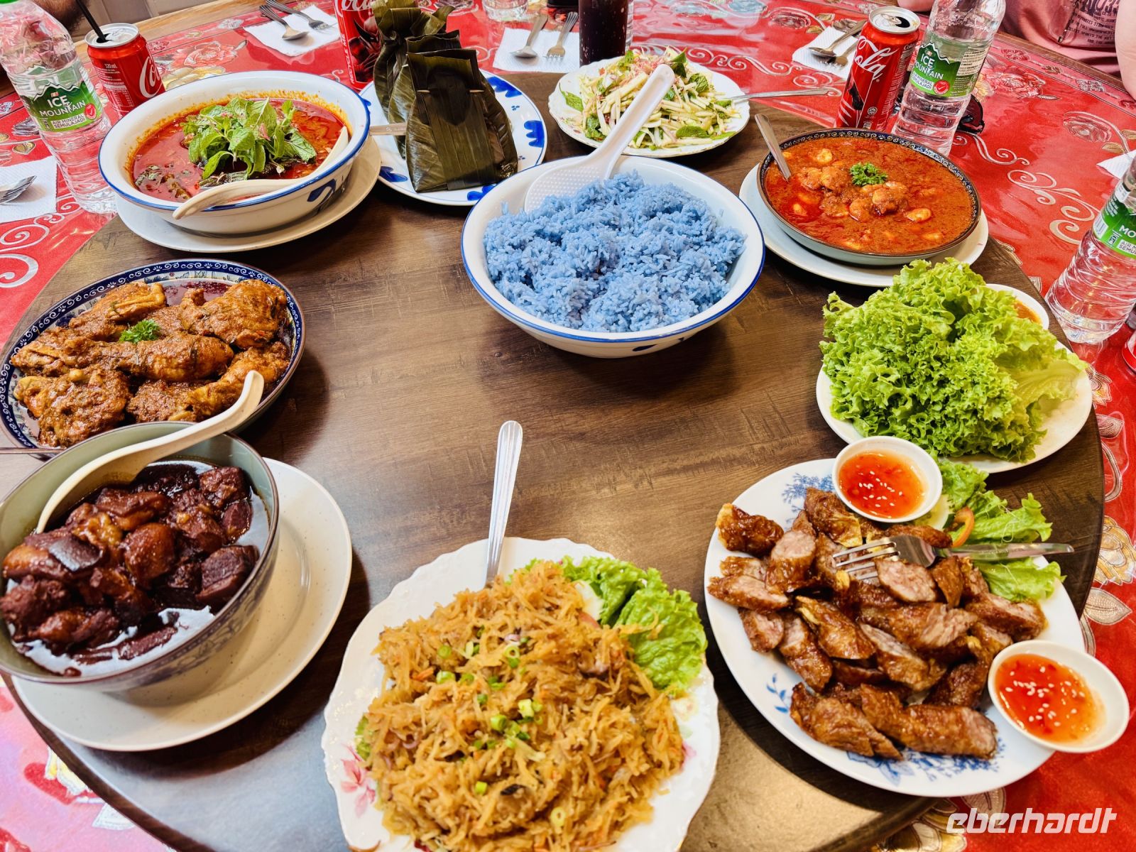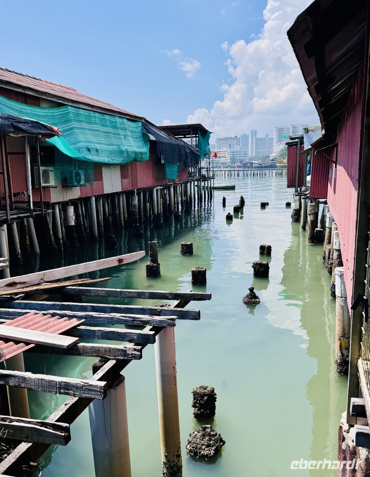 Es ist unser letzter Morgen in Malaysia, und zum ersten Mal auf dieser Reise dürfen wir es ruhig angehen lassen. Kein Wecker, der uns früh aus dem Schlaf reißt – stattdessen ein langsamer Start in den Tag. Gemütlich sitzen wir beim Frühstück und lassen die vergangenen Tage noch einmal Revue passieren. Die Gedanken schweifen immer wieder zu den Momenten, die uns auf dieser Reise am meisten beeindruckt haben: die Farben, die Menschen, die kulinarischen Abenteuer. Am späten Vormittag checken wir schließlich aus unserem Hotel aus. Das Gepäck ist verstaut, die letzte Abreise aus dem Hotel liegt hinter uns, doch unsere Zeit in Georgetown ist noch nicht zu Ende. Für die nächste Stunde tauschen wir den Bus gegen ein einzigartiges Gefährt: die Rikscha. Die traditionellen Dreiräder, die an jeder Straßenecke bereitstehen, bieten uns eine ganz besondere Perspektive auf die Stadt. Jeder von uns steigt in seine eigene Rikscha, geleitet von erfahrenen Fahrern, die die Straßen von Georgetown wie ihre Westentasche kennen. Langsam rollt die Kolonne bunter Rikschas durch die engen Gassen, vorbei an farbenfrohen Kolonialbauten, die von der bewegten Vergangenheit Georgetowns erzählen. Die Stadt, die zum UNESCO-Weltkulturerbe zählt, ist bekannt für ihre Mischung aus chinesischer, malaiischer und indischer Kultur – und für die lebendige Straßenkunst, die die Häuserfassaden schmückt. Wir kommen an ikonischen Wandgemälden vorbei, an traditionellen Märkten und an Tempeln, die vom tief verwurzelten Glauben der Stadtbewohner erzählen. Nach dieser Tour bleibt noch ein wenig Zeit, um einen letzten, besonderen Ort zu besuchen: das berühmte Chew Jetty. Diese historische Siedlung am Wasser wurde im 19. Jahrhundert von chinesischen Einwanderern erbaut und besteht aus Holzhäusern auf Stelzen, die sich bis in die Andamanensee erstrecken. Ein Spaziergang über die langen Holzstege eröffnet uns Einblicke in das Leben der Fischerfamilien, die hier noch immer ihre Traditionen pflegen. Während die Wellen unter den Planken leise plätschern, blicken wir über das Wasser und atmen die salzige Meeresluft ein – ein letzter, ruhiger Moment, bevor uns der Bus zum Flughafen bringt. Auf dem Weg dorthin verabschieden wir uns von Suzie, unserer Reiseleiterin, die uns in den letzten Tagen durch dieses wunderschöne Land begleitet hat. Am Abend hebt unser Flugzeug von Penang ab. Über Singapur fliegen wir weiter Richtung Frankfurt, wo das Abenteuer endet. Die Nacht verbringen wir in der Luft – mit vielen Erinnerungen, die wir für immer mitnehmen.