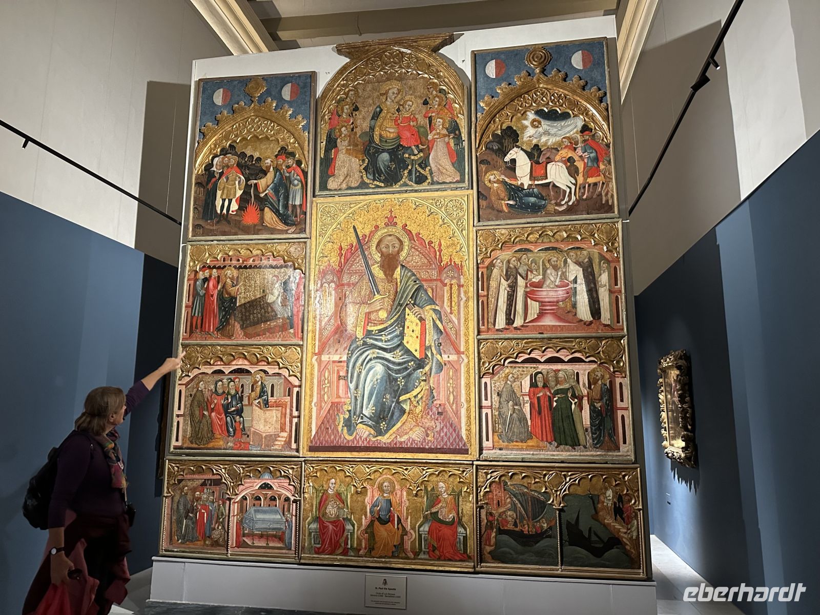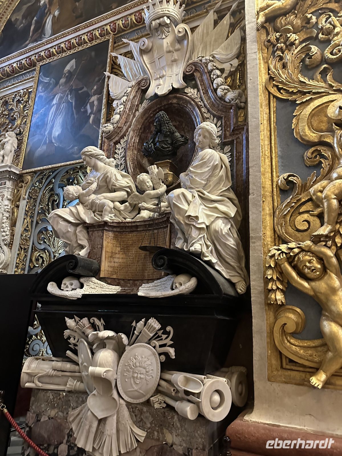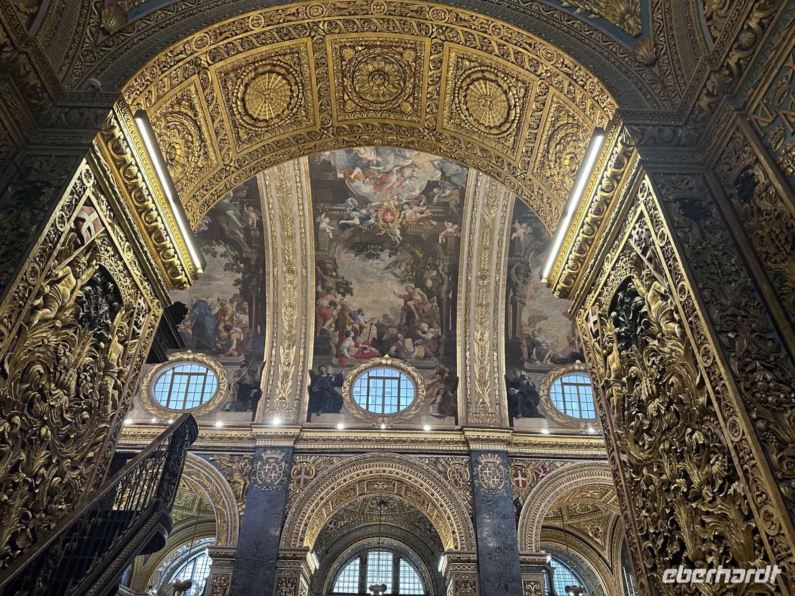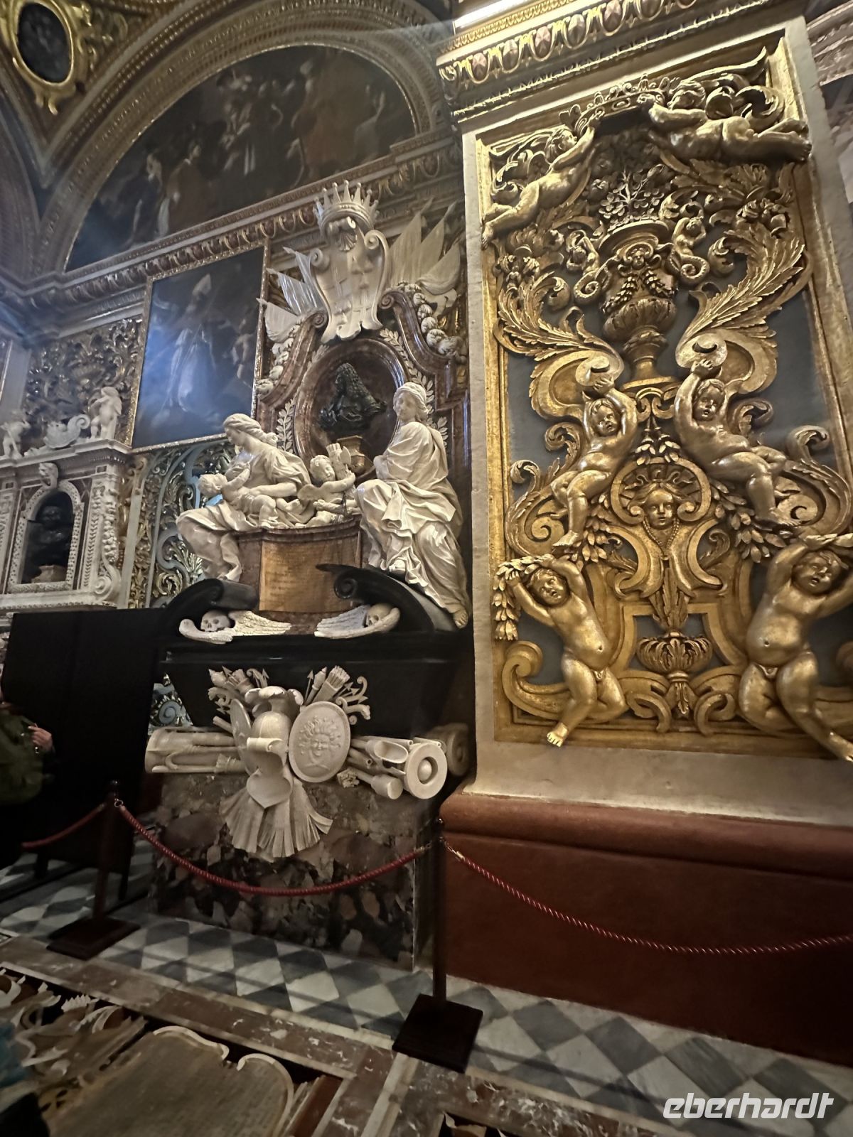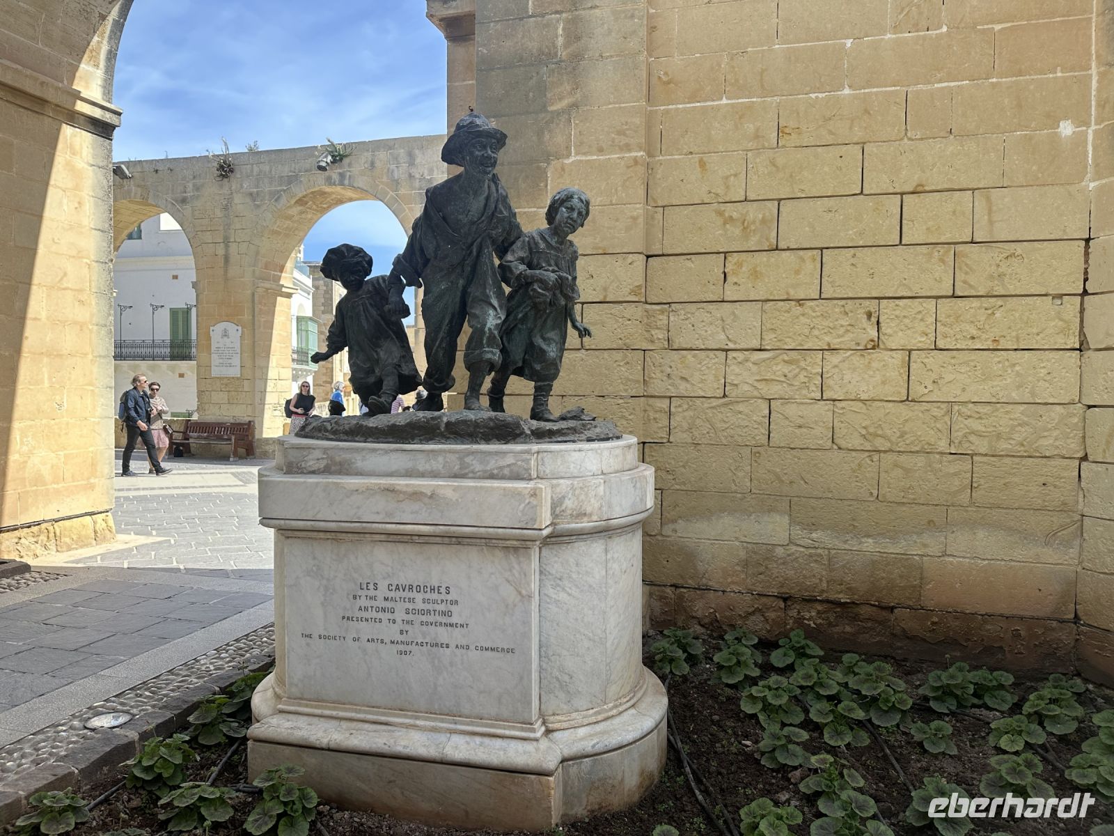 Um nach Valetta zu gelangen, spazieren wir zunächst ein Stück durch Floriana. Hier begrüßt uns als erstes ein Denkmal, das an die Unabhängigkeit Maltas 1964 erinnert. Am Tritonenbrunnen erreichen wir dann die Stadtgrenze zu Valetta. Wir spazieren durch eine der Hauptstraßen der Stadt, links und rechts gesäumt von modernen und historischen Gebäuden. 2011 bis 2015 wurde das heutige Parlamentsgebäude errichtet. Voll ist es hier. Viele Besucher scheint es nach Valetta zu ziehen. Sie flanieren wie wir die Straßen entlang und bevölkern die Restaurants und Cafés. Hanne besucht mit uns die Schiffswrack Kathedrale, die dem heiligen Paulus gewidmet ist. Hier ist ein Teil der Säule zu sehen, auf der er später von den Römern geköpft wurde sowie ein Teil von seinem Handgelenk, das als Reliquie verehrt wird. Apostel Paulus soll im Jahr 60 mit fast dreihundert Gefährten auf dem Weg nach Rom gewesen sein, als sie ein Sturm an der Küste Maltas scheitern ließ. Drei Monate hielt sich Paulus auf Malta auf und Missioniert seine Bewohner. Noch heute ist die Mehrheit der Bewohner Maltas römisch-katholisch und stolz darauf, von Paulus bekehrt worden zu sein. Wir besuchen nun die Upper Barakka Gärten, wo pünktlich um zwölf eine Kanone abgefeuert wird, so dass alle ihre Uhren danach abgleichen können. Fast unser letzter Besuch gilt nun einer der prächtigsten Kathedralen auf Malta – der St. Johannes Kathedrale. Der prächtige Marmorfußboden ist mit vierhundert farbigen Grabplatten bedeckt, wo Persönlichkeiten, die zur Zeit der Ritter lebten, ihre letzte Ruhe fanden. Denkmäler erinnern an die vielen Großmeister des Ordens, prachtvolle Seitenaltäre sind den verschiedenen Zungen gewidmet. Überall glänzen die Wände in Gold, sind kunstvoll und reich dekoriert.