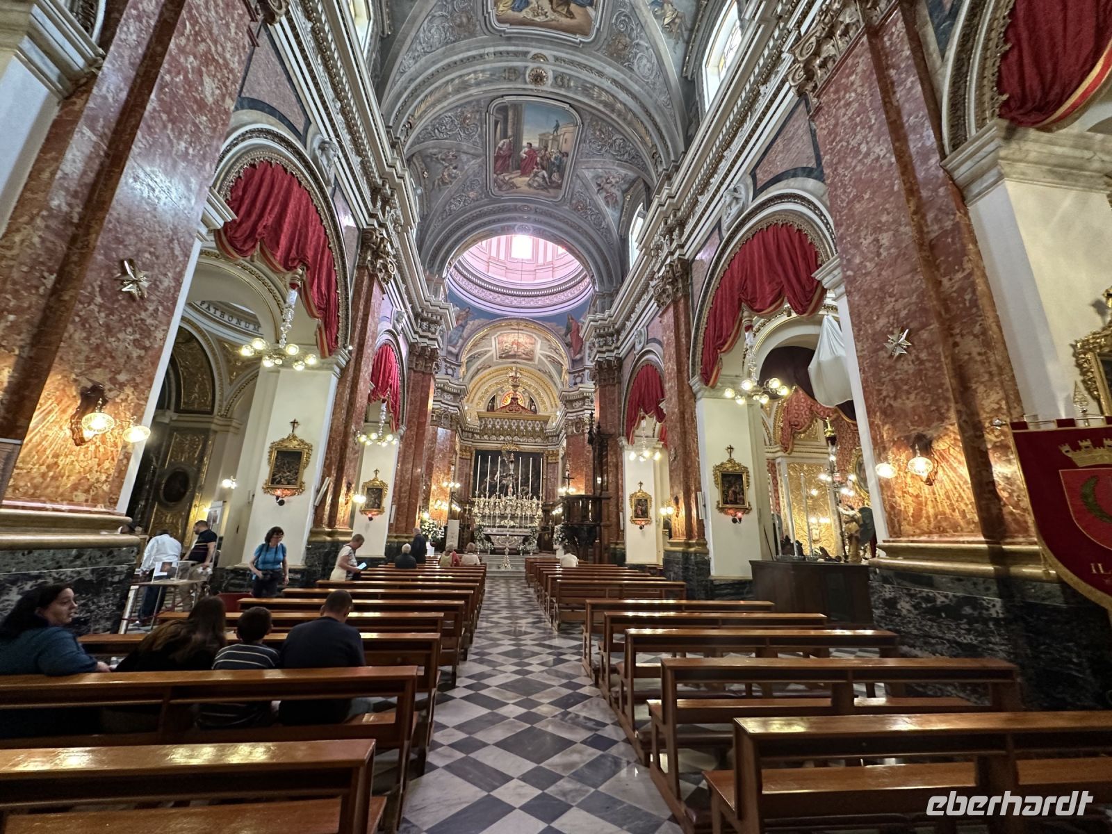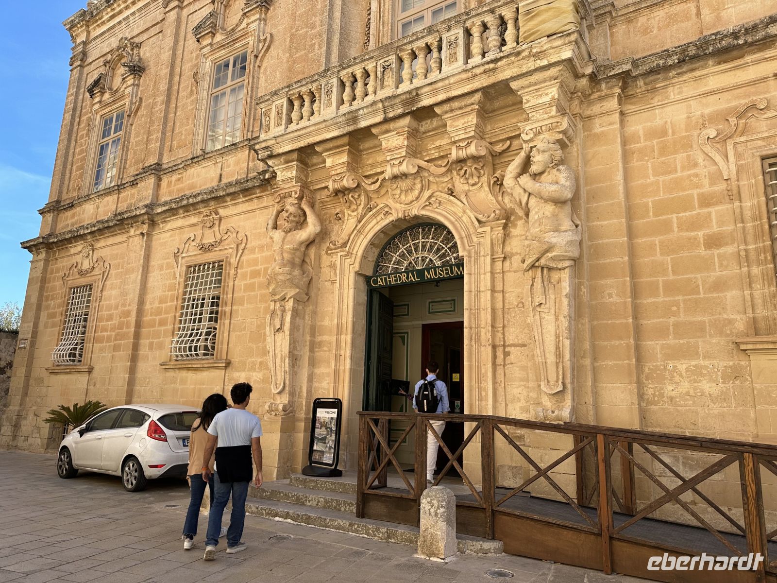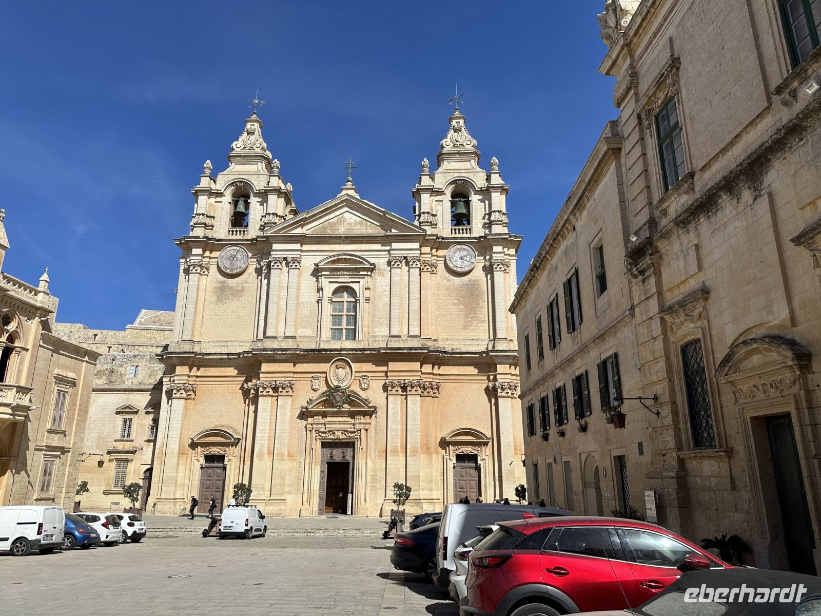 In Rabat legen wir eine Mittagspause ein. Jeder kann nach eigenem Gutdünken einkehren oder Bummeln gehen. Beim Besuch der St. Paulus Kathedrale und des Kathedralenmuseums von Mdina macht sich langsam Erschöpfung bemerkbar. Die Kathedrale wurde nach einem Erdbeben 1693 errichtet. Das gleich danebengelegene Kathedralenmuseum gilt heute als eines der wichtigsten Kunstmuseen auf Malta. Zu sehen sind kostbare Gemälde, Silberschätze und eine einmalige Reihe von Stichen Albrecht Dürers.