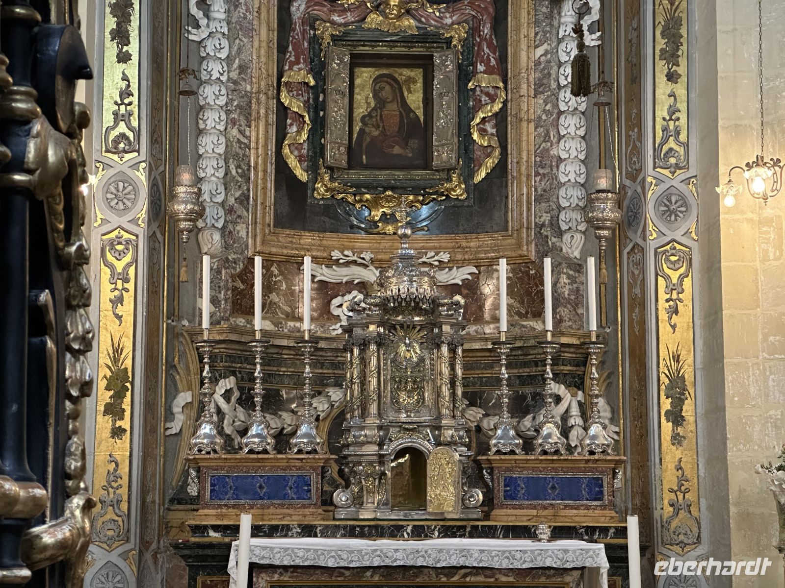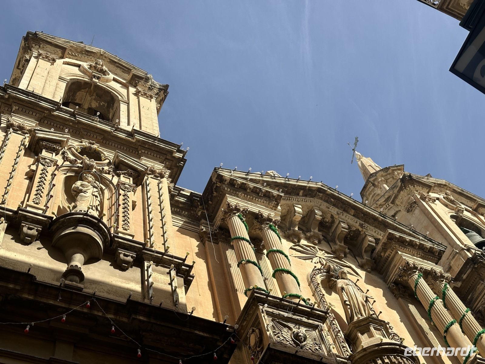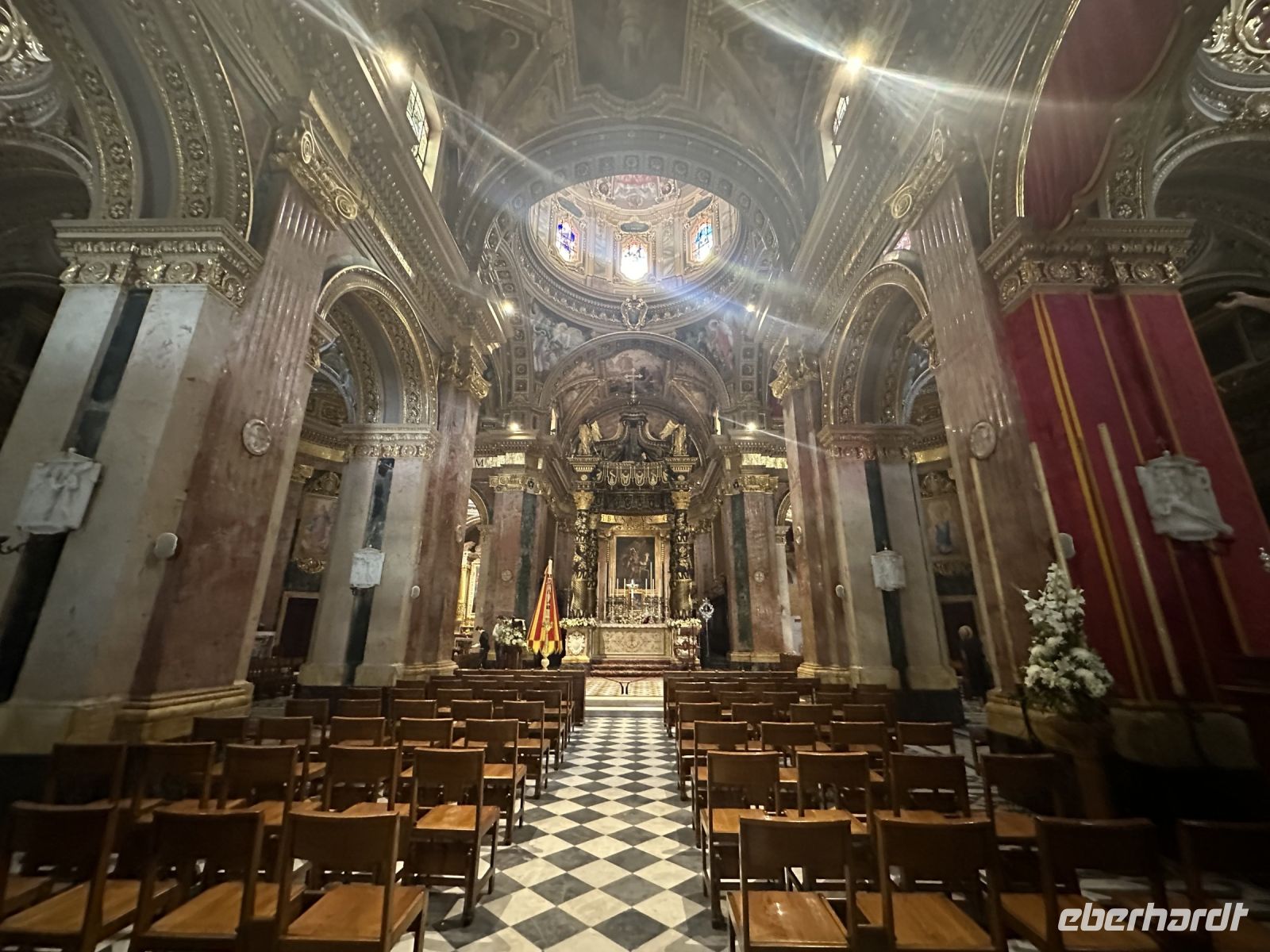 In Rabat legen wir eine Mittagspause ein. Jeder kann nach eigenem Gutdünken einkehren oder Bummeln gehen. Beim Besuch der St. Paulus Kathedrale und des Kathedralenmuseums von Mdina macht sich langsam Erschöpfung bemerkbar. Die Kathedrale wurde nach einem Erdbeben 1693 errichtet. Das gleich danebengelegene Kathedralenmuseum gilt heute als eines der wichtigsten Kunstmuseen auf Malta. Zu sehen sind kostbare Gemälde, Silberschätze und eine einmalige Reihe von Stichen Albrecht Dürers.