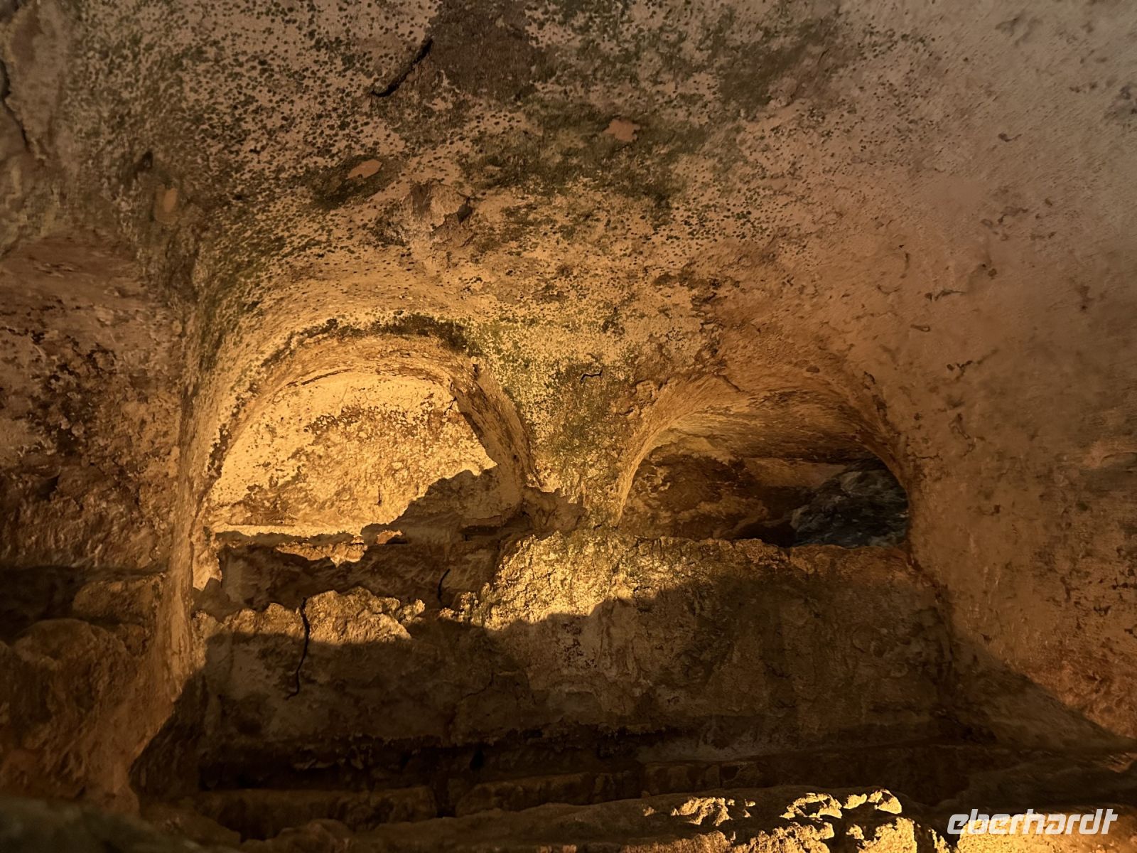 Als Nächstes stehen die St. Paulus Katakomben in Rabat auf unserem Programm. Diese stammen aus der römischen Zeit auf Malta, etwa 300 nach der Zeitenwende. Benannt sind sie nach dem Apostel Paulus, der als Gefangener mit einem Schiff hier strandete und die Bevölkerung missionierte. Die Katakomben bestehen aus einem weitläufigen Netz von unterirdischen Gängen, Grabkammern und Nischen, die in den weichen Kalkstein gehauen wurden.