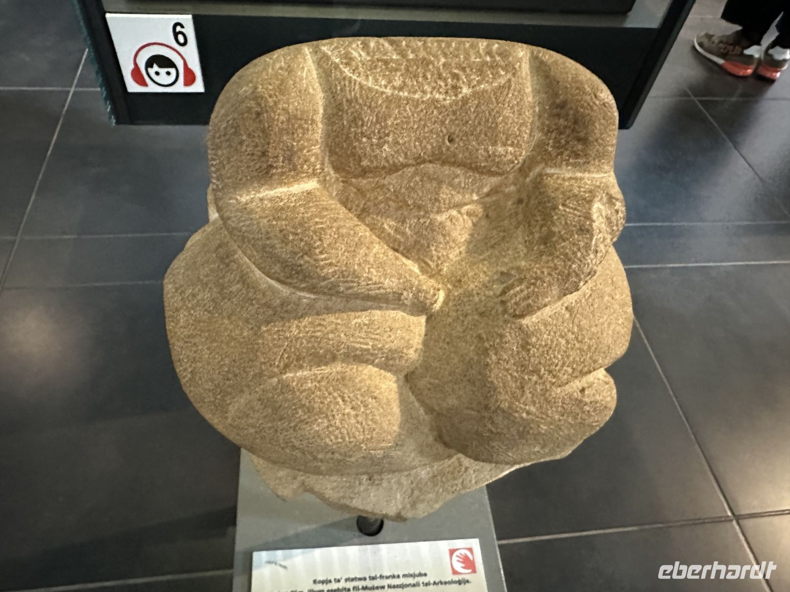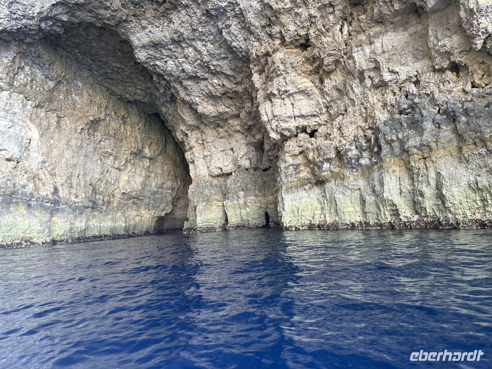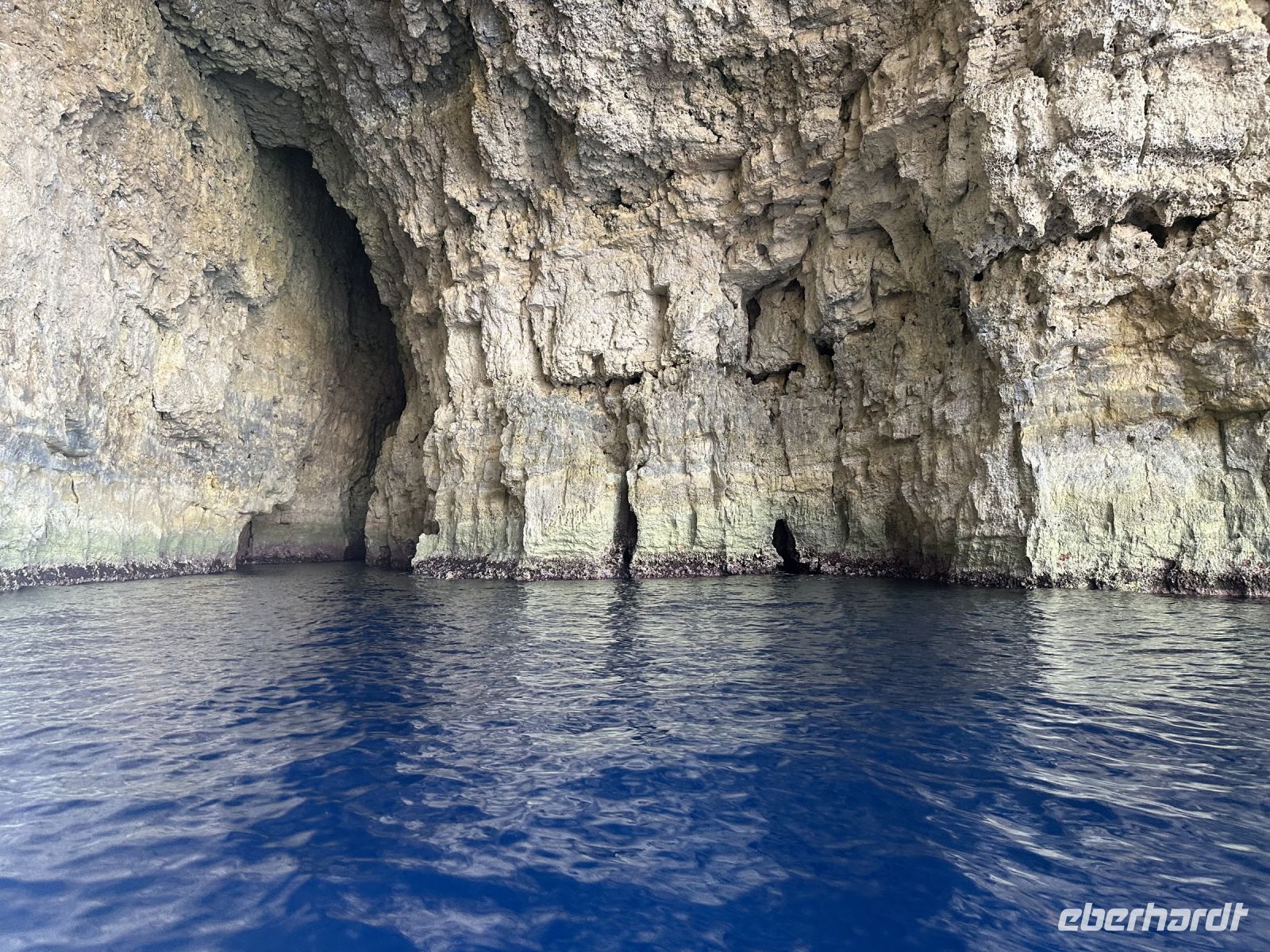 Heute fahren wir in den Süden von Malta. Wir beginnen im Südwesten, einem Gebiet, das Zurrieq heißt. Von einer hohen Klippe haben wir einen fantastischen Ausblick auf das azurblaue Meer. Zu sehen sind einige Höhlen, die von ewigen Wellen über Jahrtausende geschaffen wurden. Wenn es das Wetter zu lassen würde, könnten wir von hier aus eine Bootsfahrt zur Blauen Grotte unternehmen. Leider ist es heute aber zu windig dafür. Unser nächstes Ziel ist Hagar Qim. In Malta wurden fünf große Tempelkomplexe gefunden, Hagar Qim ist einer davon. Seine Entstehung wird auf circa dreitausend Jahre vor der Zeitenwende datiert. Man weiß, dass diese Tempelanlage mehrfach erweitert und umgebaut wurde und nicht dem ursprünglichen Bau entspricht. Es gibt Räume, die durch in Stein gehauene Öffnungen betreten werden können, die vielleicht eine private oder religiöse Atmosphäre schaffen sollte. Es ist nicht genau bekannt. Gefunden wurden ebenfalls wunderschöne weibliche bzw. androgyne Statuen, deren Kopien wir heute im Souvenirgeschäft erwerben können. Gegen Mittag erreichen wir Marsaxlokk. Im Hafen schaukeln die bunt bemalten Boote, die auf jeder Reisewerbung für Malta zu sehen sind. Heute sind wir zu einem Mittagessen eingeladen. Es gibt Bruschetta, Fischsuppe, Schwertfisch mit Kartoffeln und Gemüse und einen Nachtisch. Auch ein abschließender Kaffee oder Espresso darf nicht fehlen. Ach, geht es uns gut oder? Nun geht es in die Höhlen und in das Museum von Ghar Dalam. Hier wurden die ältesten Spuren der Menschen auf Malta entdeckt. Man geht davon aus, dass diese 5000 Jahre vor der Zeitenwende aus Sizilien nach Malta kamen. In den Höhlen wurden Fossilien prähistorischer Tiere entdeckt. So zum Beispiel von Füchsen, Wölfen, Braunbären und Flusspferden. Als besonders interessant gilt die Zwergform von Elefanten.