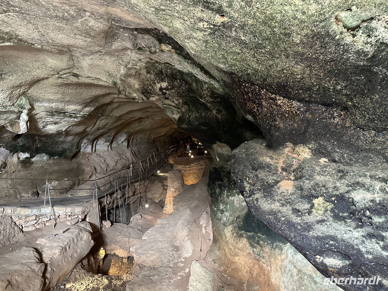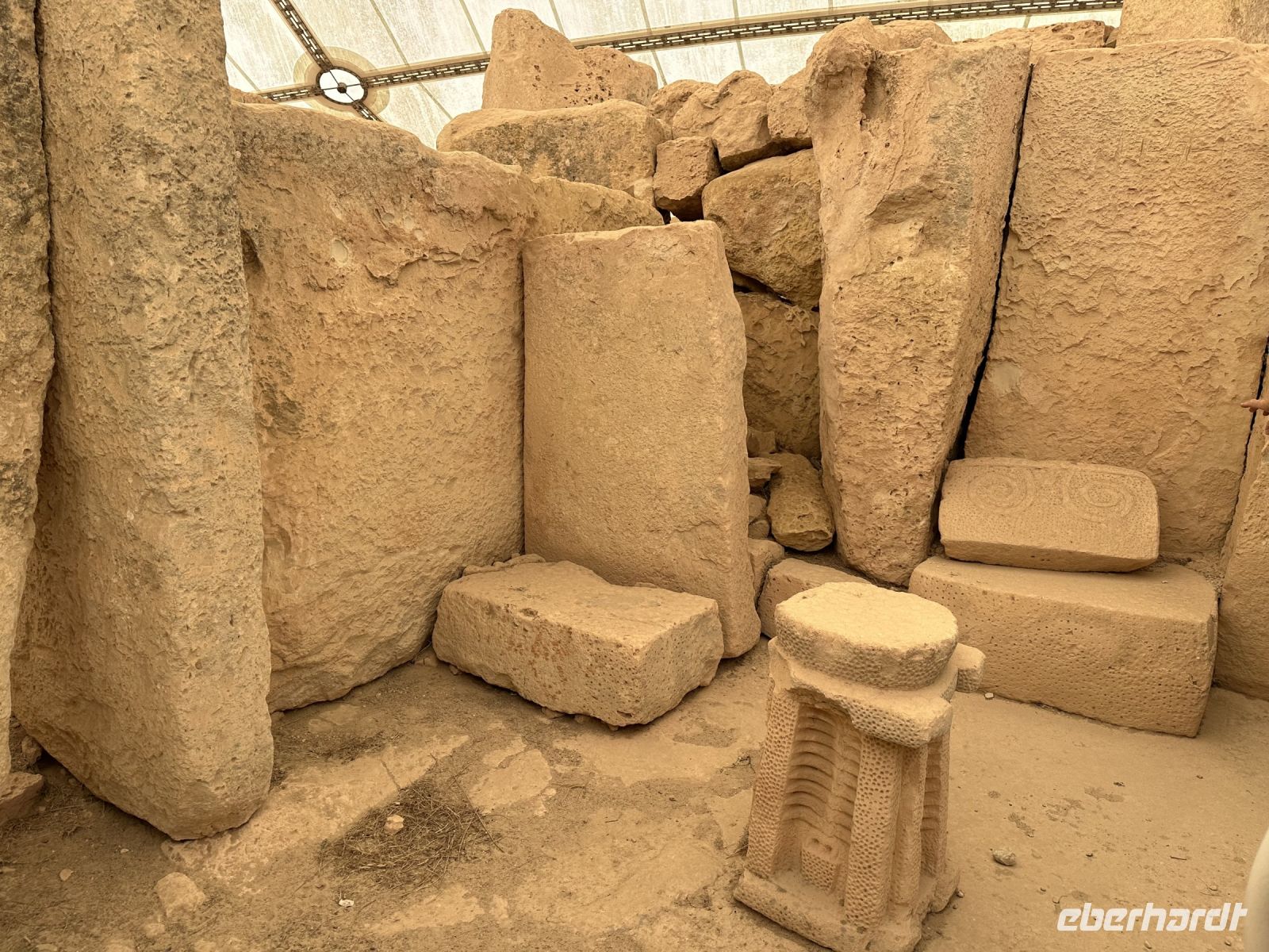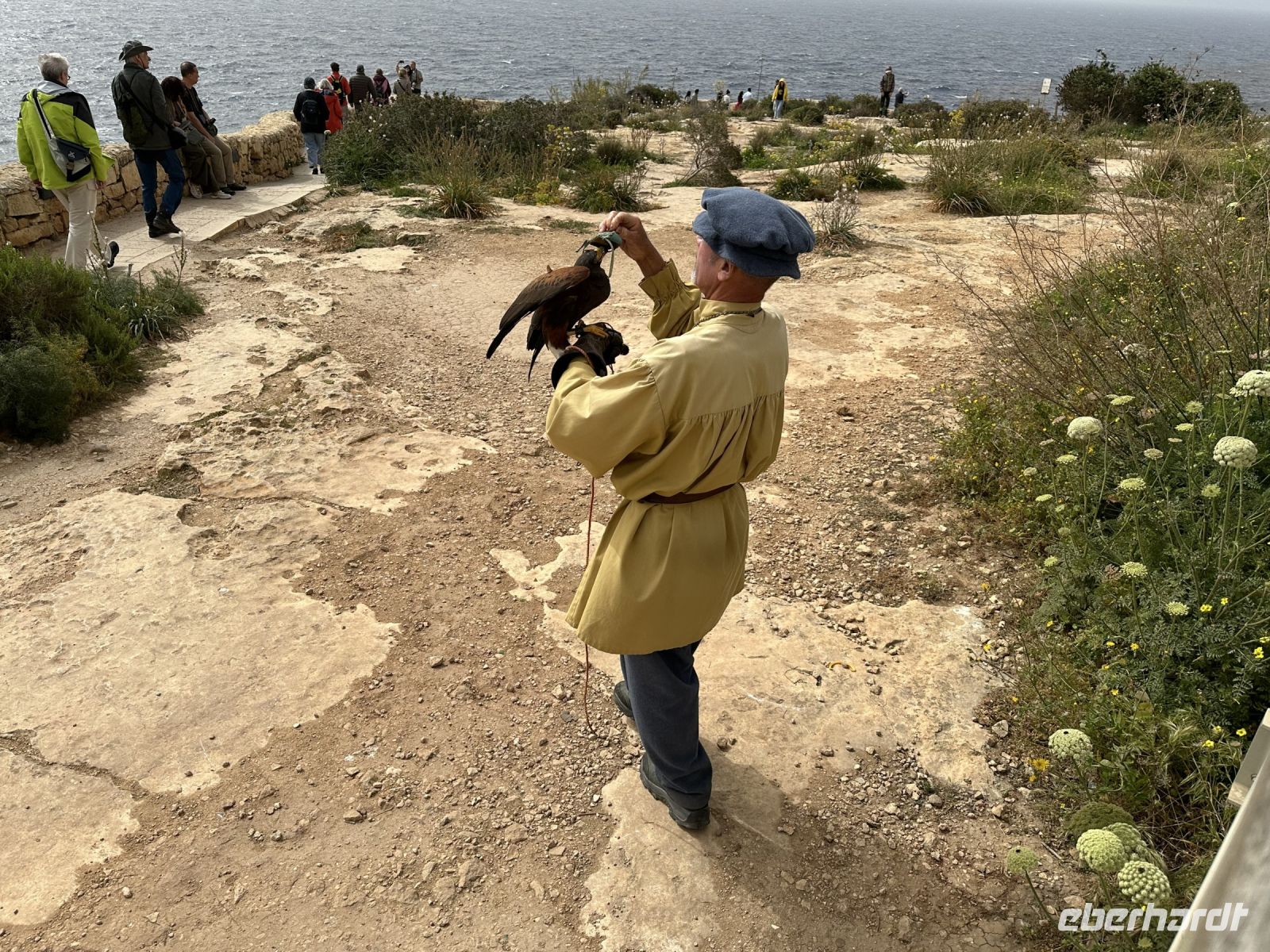 Heute fahren wir in den Süden von Malta. Wir beginnen im Südwesten, einem Gebiet, das Zurrieq heißt. Von einer hohen Klippe haben wir einen fantastischen Ausblick auf das azurblaue Meer. Zu sehen sind einige Höhlen, die von ewigen Wellen über Jahrtausende geschaffen wurden. Wenn es das Wetter zu lassen würde, könnten wir von hier aus eine Bootsfahrt zur Blauen Grotte unternehmen. Leider ist es heute aber zu windig dafür. Unser nächstes Ziel ist Hagar Qim. In Malta wurden fünf große Tempelkomplexe gefunden, Hagar Qim ist einer davon. Seine Entstehung wird auf circa dreitausend Jahre vor der Zeitenwende datiert. Man weiß, dass diese Tempelanlage mehrfach erweitert und umgebaut wurde und nicht dem ursprünglichen Bau entspricht. Es gibt Räume, die durch in Stein gehauene Öffnungen betreten werden können, die vielleicht eine private oder religiöse Atmosphäre schaffen sollte. Es ist nicht genau bekannt. Gefunden wurden ebenfalls wunderschöne weibliche bzw. androgyne Statuen, deren Kopien wir heute im Souvenirgeschäft erwerben können. Gegen Mittag erreichen wir Marsaxlokk. Im Hafen schaukeln die bunt bemalten Boote, die auf jeder Reisewerbung für Malta zu sehen sind. Heute sind wir zu einem Mittagessen eingeladen. Es gibt Bruschetta, Fischsuppe, Schwertfisch mit Kartoffeln und Gemüse und einen Nachtisch. Auch ein abschließender Kaffee oder Espresso darf nicht fehlen. Ach, geht es uns gut oder? Nun geht es in die Höhlen und in das Museum von Ghar Dalam. Hier wurden die ältesten Spuren der Menschen auf Malta entdeckt. Man geht davon aus, dass diese 5000 Jahre vor der Zeitenwende aus Sizilien nach Malta kamen. In den Höhlen wurden Fossilien prähistorischer Tiere entdeckt. So zum Beispiel von Füchsen, Wölfen, Braunbären und Flusspferden. Als besonders interessant gilt die Zwergform von Elefanten.
