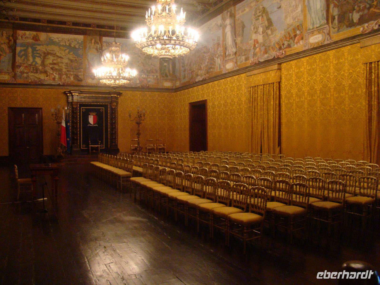 Auch der Großmeisterpalast durfte bei unserer Stadtbesichtigung natürlich nicht fehlen. Roswitha erzählte uns ausführlich alles über die Geschichte des Malteserordens und über die Großmeister, die in Valletta residierten. Nach diesem Ausflug in die Geschichte hatten wir zwei Stunden Freizeit, die jeder anders nutzte. Die Meisten aßen erst einmal zu Mittag und bummelten dann noch ein wenig durch Valletta. Zum Abschluss trafen wir uns und gingen gemeinsam zu Malta Experience. In einem kleinen Kino wurde uns ein sehr informativer und schön gestalteter Film über die Insel im Mittelmeer und deren Geschichte gezeigt.