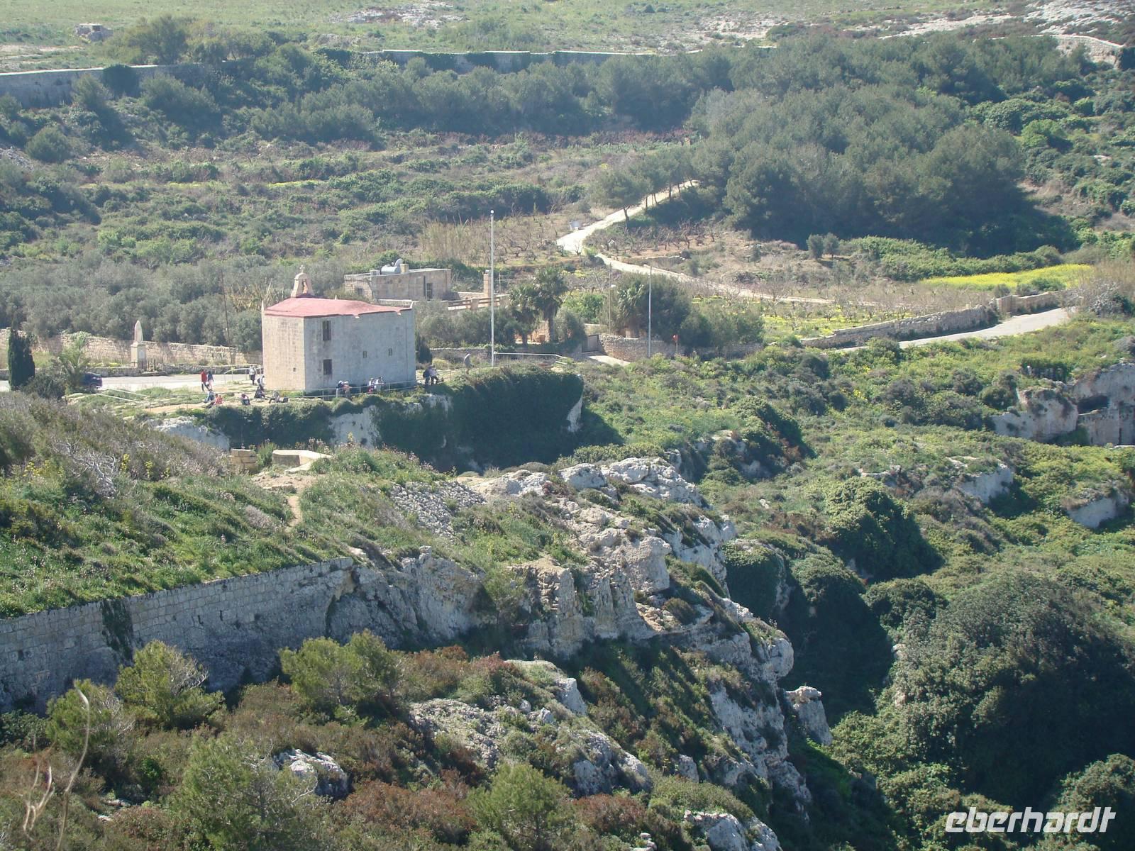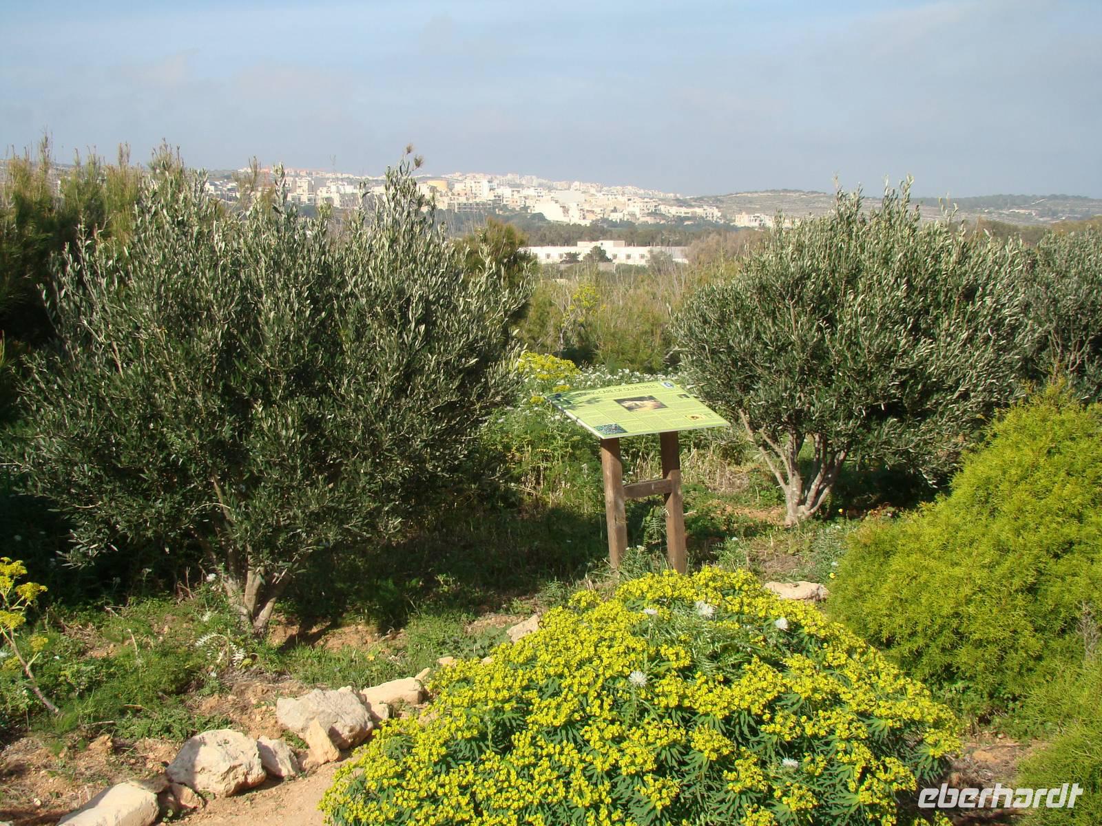 An der Küste oberhalb der Klippen durch schöne Blumenwiesen entlang kamen wir oberhalb der Bucht „des Windes" an, hier wartete schon unser Minibus und nahm uns bis oberhalb der Gnejna- Bucht mit. Hier starteten wir unsere 2. Etappenwanderung in Richtung Golden Bay. Am Wachturm „Ghajn Tuffieha Tower" oberhalb der Golden Bay angekommen, belohnten wir uns mit einem schönen Ausblick auf die Bucht. Mit dem Minibus fuhren wir, kurz vor Feierabend, zu der „Gaia Foundation", eine Baumschule wo alle einheimischen Pflanzen und Bäume Maltas zu finden sind. Roswitha zeigte uns diese alle bevor wir wieder die Rückreise ins Hotel antraten.