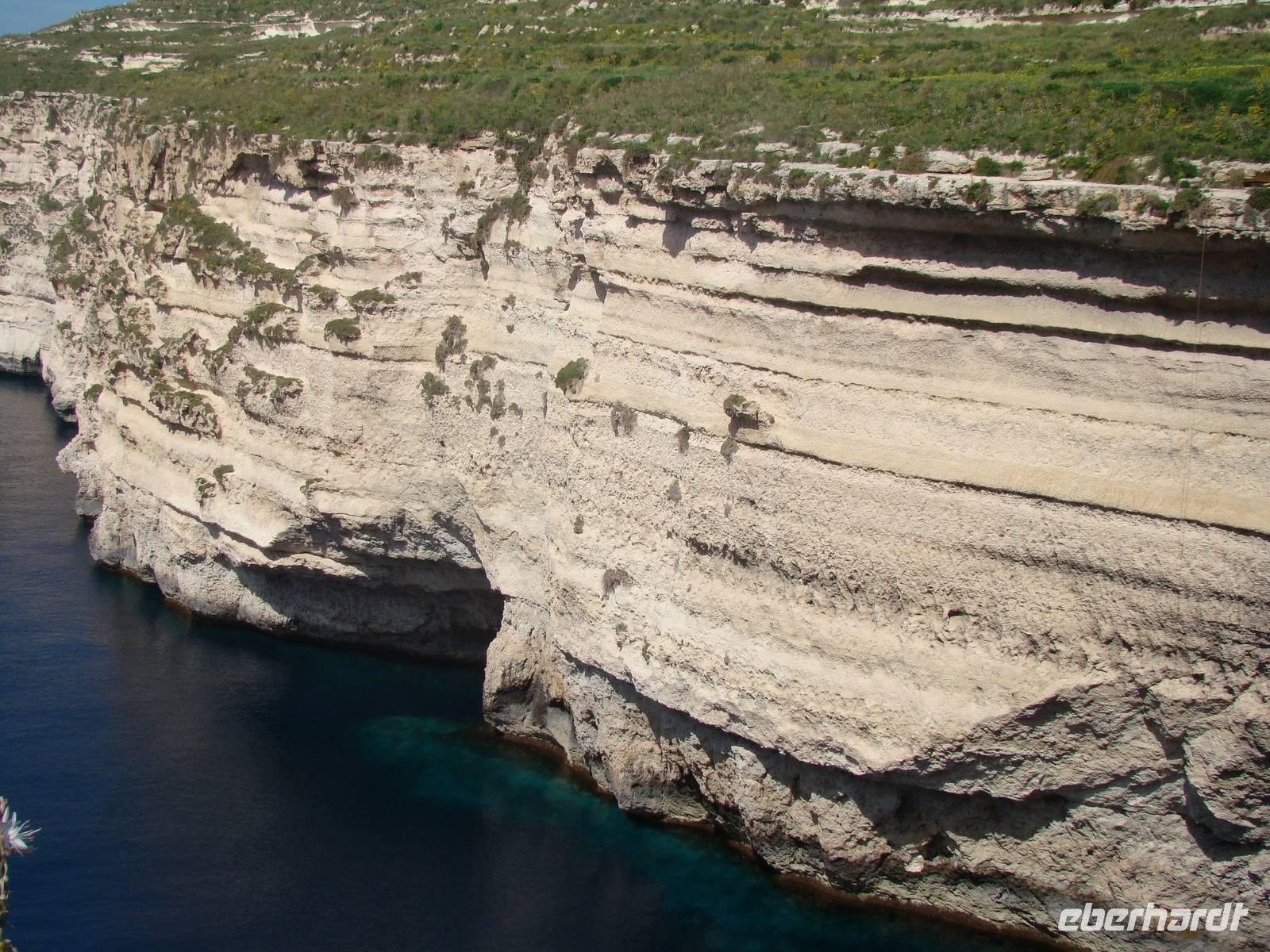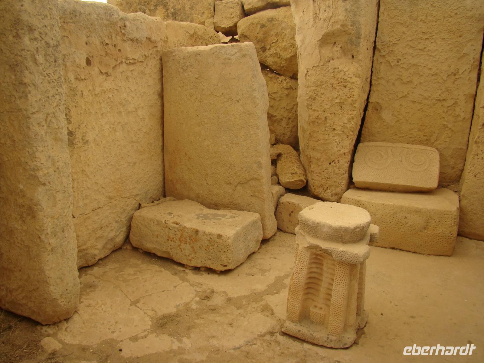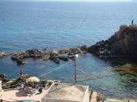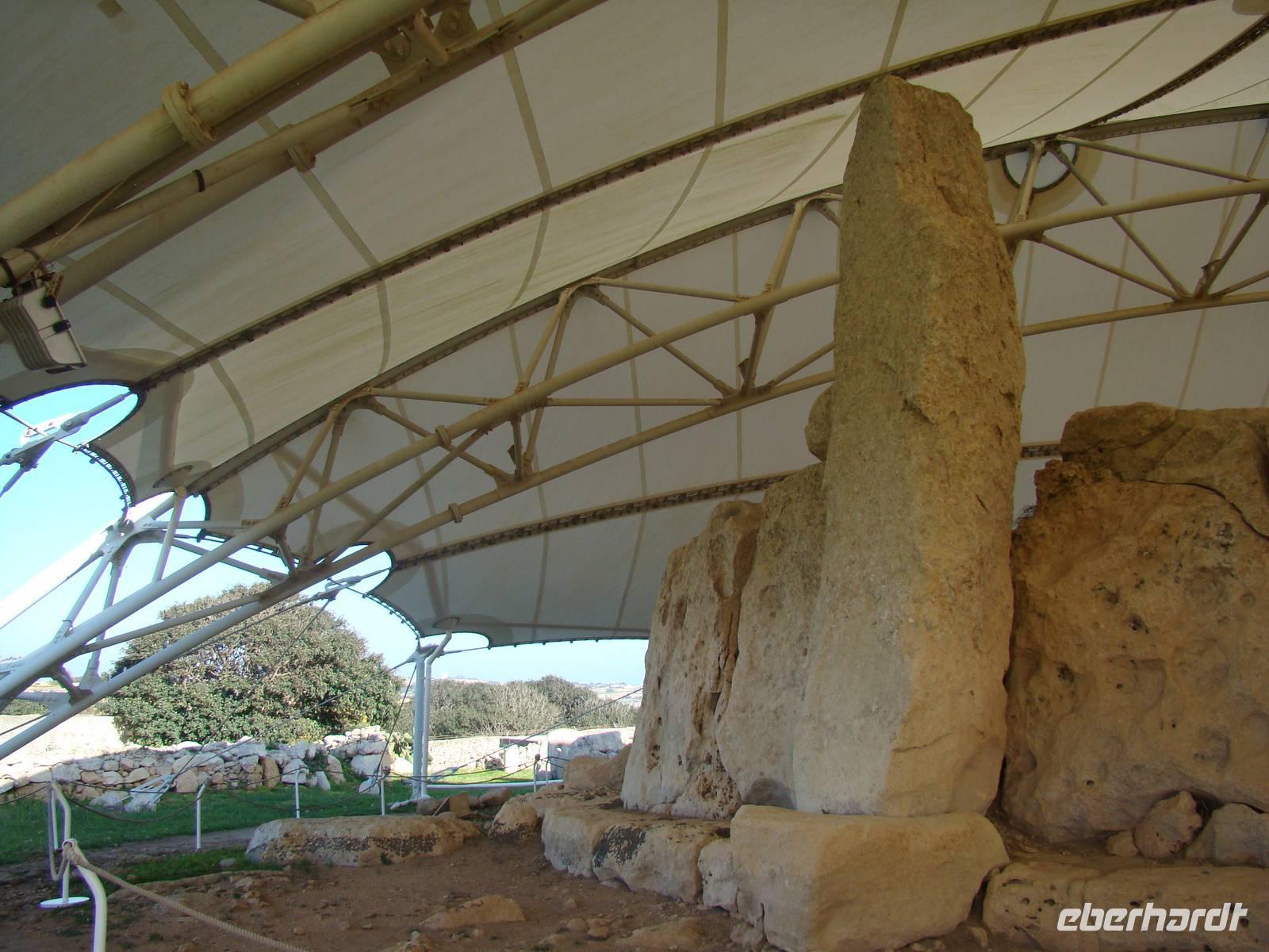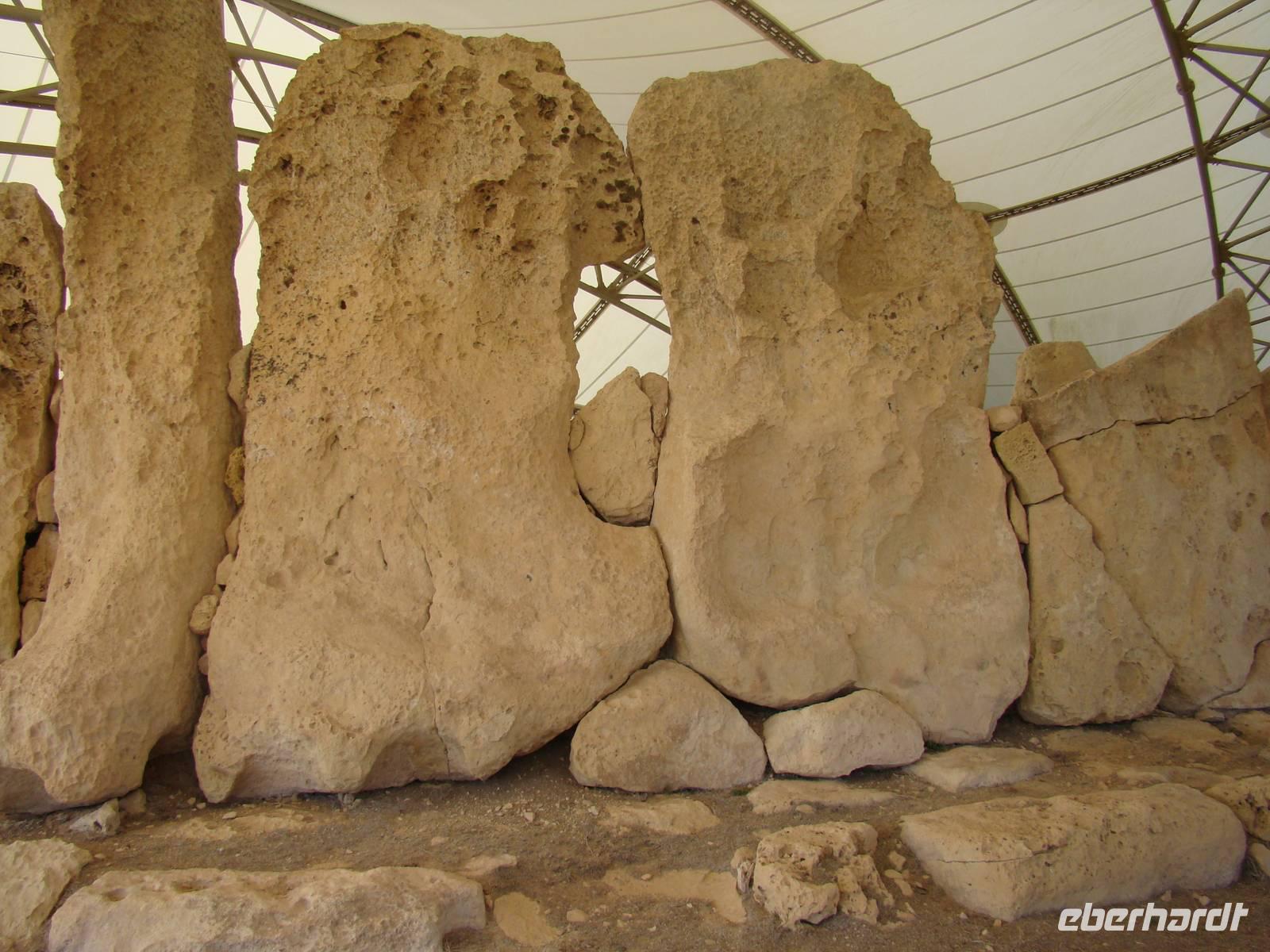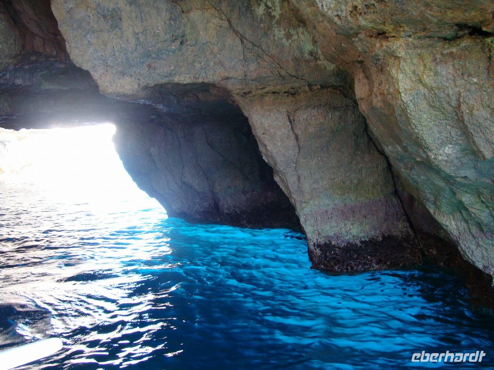 Bald gelangten wir an die Dingli-Klippen, an denen wir erst einmal erstaunt ob der beeindruckenden Tiefe dieser Steilklippen stehen blieben. Einige von uns trauten sich die sichere Straße zu verlassen und liefen an den Klippen entlang. Nach einem steilen Abstieg erreichten wir die Bucht Ghar Lapsi. Wir genossen kurz die Aussicht auf die schöne Badebucht, machten uns dann aber schnell mit dem Minibus auf den Weg zur „Blauen Grotte". Einige aus unserer Gruppe schipperten mit dem Boot nah an die Grotte heran, andere von uns wiederum schauten sie sich lieber alles von oben an. Ein weiterer Programmpunkt war die Besichtigung des Hagar Qim Tempel, Rowitha führte uns durch das Relikt jener längst vergangenen Zeiten und erklärte uns geduldig die „Stehenden Steine".