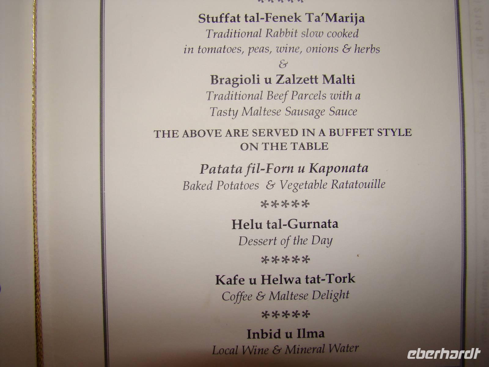 Abschließend an diesem Tag ging es zu einem typisch maltesischer Abend ins Restaurant „Ta´Marija" in Mosta. Wir hatten die Möglichkeit aus verschiedenen Speisen zu wählen und schauten der maltesischen Tanzgruppe zu, die uns eindrucksvoll in die Welt der Folklore Maltas entführte. Nach einem sehr gutem Essen und tollem Programm gingen wir alle erschöpft auf unsere Zimmer.
