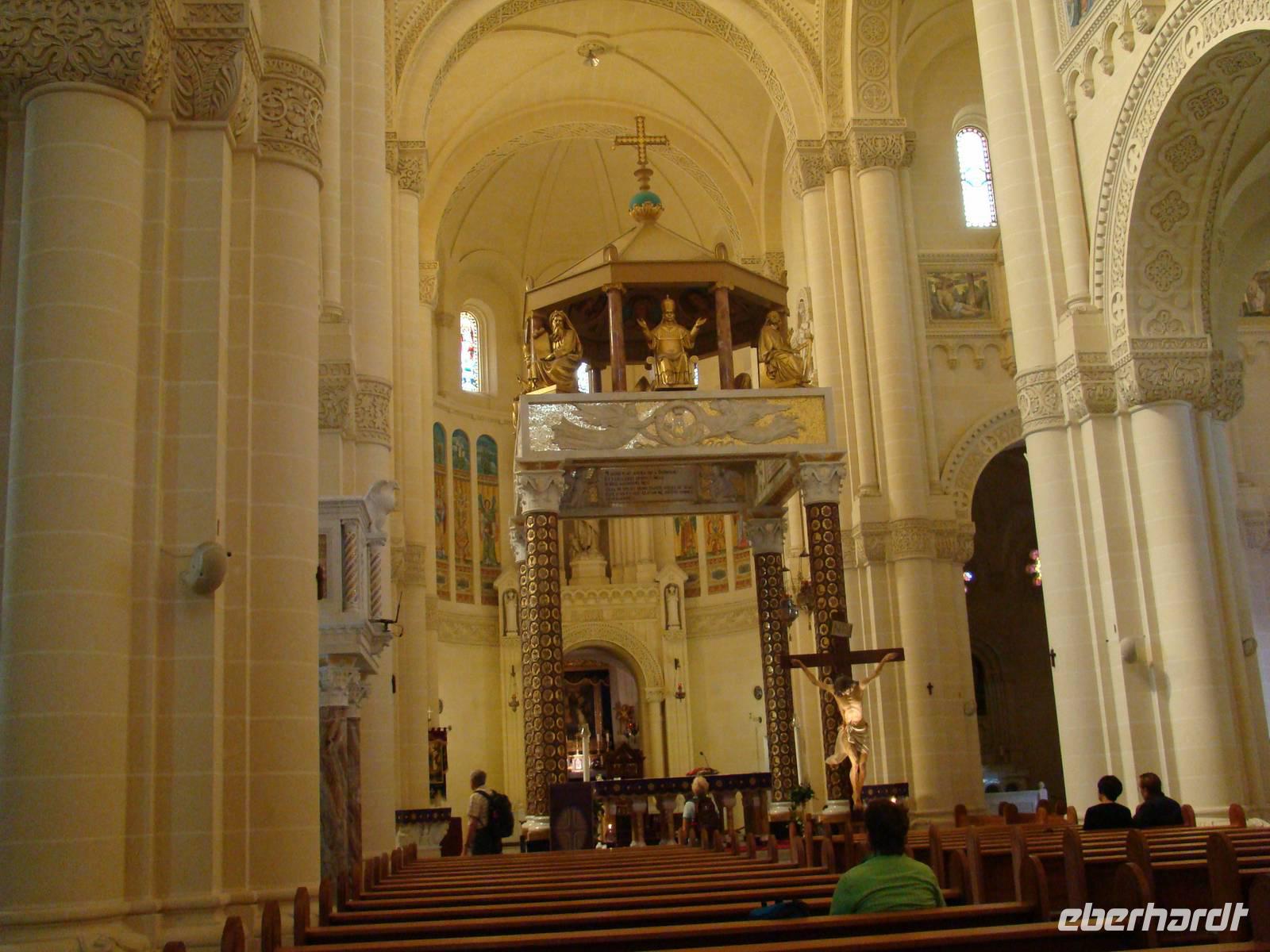 In Marsalforn, ein kleines gemütliches Fischerdörfchen an der Küste Gozos ging es los. Vorbei an den Salzsalinen durch den Ort Ghammar erreichten wir unser 1.Etappenziel, die Wallfahrtskirche Ta´Pinu. Bis zur Weiterfahrt mit unserem Minibus hatten wir die Möglichkeit die schöne Kirche zu besichtigen.