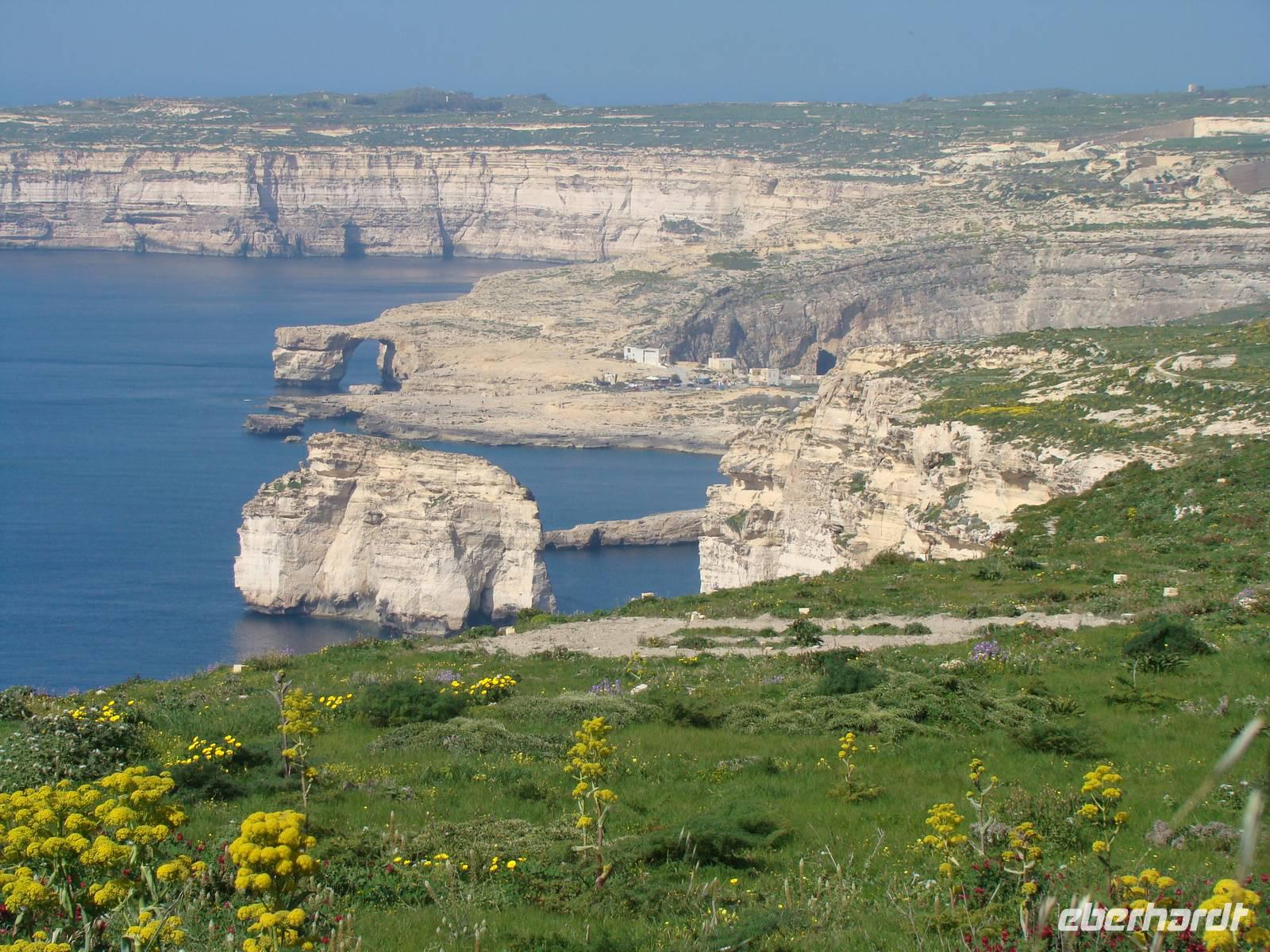 An der Westküste Gozos begannen wir den zweiten Teil unserer Wanderung. Entlang der Küste mit atemberaubenden Blicken auf das Meer erreichten wir die Dwejra Bucht, wir konnten das „Azure Window", das blaue Fenster sehen, ein durch Umwelteinfluss entstandenes Felsentor, welches durch hohen Wellengang ein besonderes Schauspiel bietet. Nach unserem Aufenthalt fährt uns Felix nach Xlendi. Leider war die übliche Zufahrtsstraße wegen Bauarbeiten gesperrt, aber gegen Nachmittag erreichten wir die Bucht von Xlendi. Hier genossen wir das typische Mittelmeerflair, eine tolle Badebucht mit kleiner Promenade an der sich Fischrestaurants und Souvenirläden reihten erwartete uns. Während einige vom Laufen noch nicht genug hatten und die Promenade lang in Richtung offenes Meer liefen, gönnte ich mir mit 2 Gästen ein leckeres Eis. Vorbei am schönsten gekürten Discoclub des Mittelmeeres „La Grotta" und an den Wäschplätzen von Gozo fuhr uns Felix im rasanten Fahrstil, bald wären wir noch unverschuldet mit einem großen Bus kollidiert, zu einem Aussichtspunkt oberhalb des Hafens von Gozo. Von hier konnten wir auf die kleine Insel Comino, welche noch von drei Bewohnern ständig bewohnt wird, schauen. Da Roswitha uns die Tickets für die Fähre schon am Bus ausgab, gelangten wir gleich ohne großes Anstehen in das Hafenterminal. Die Fähre brachte uns sicher wieder nach Malta und unser Kleinbus in wenigen Minuten zu unserem Hotel.