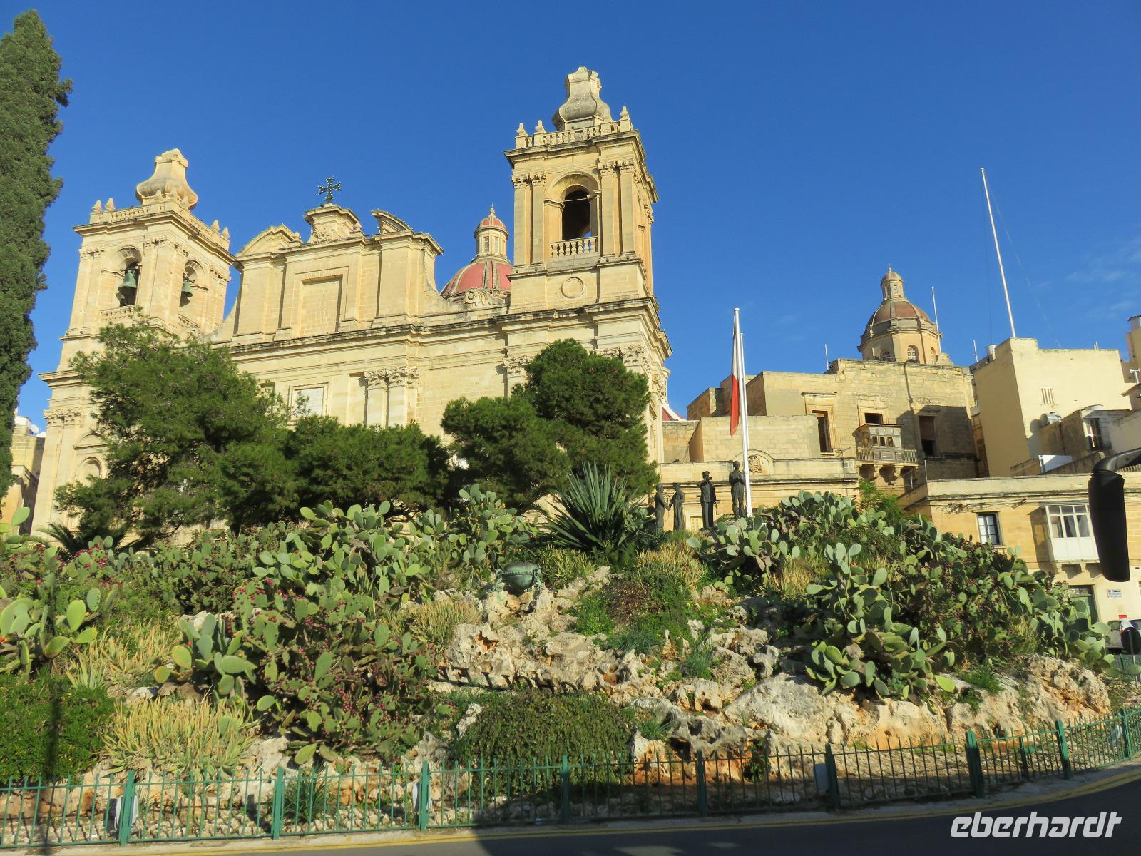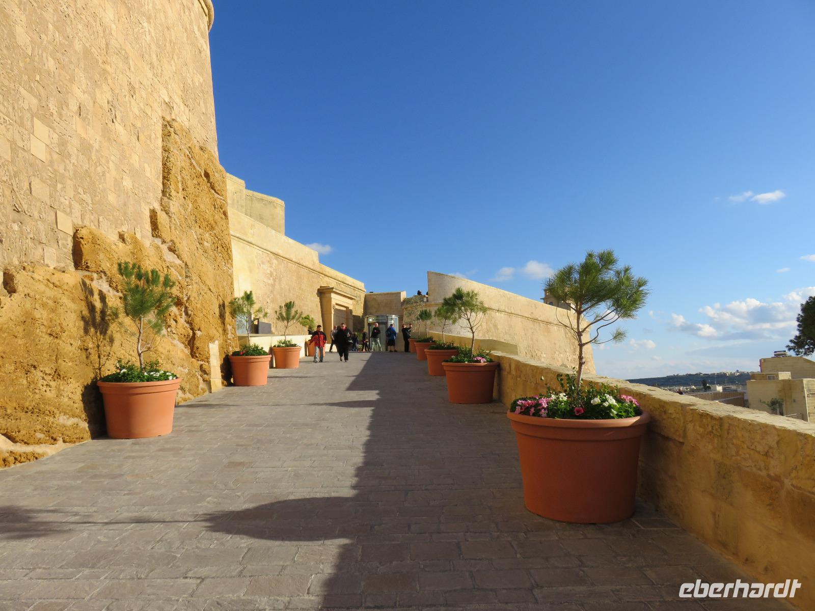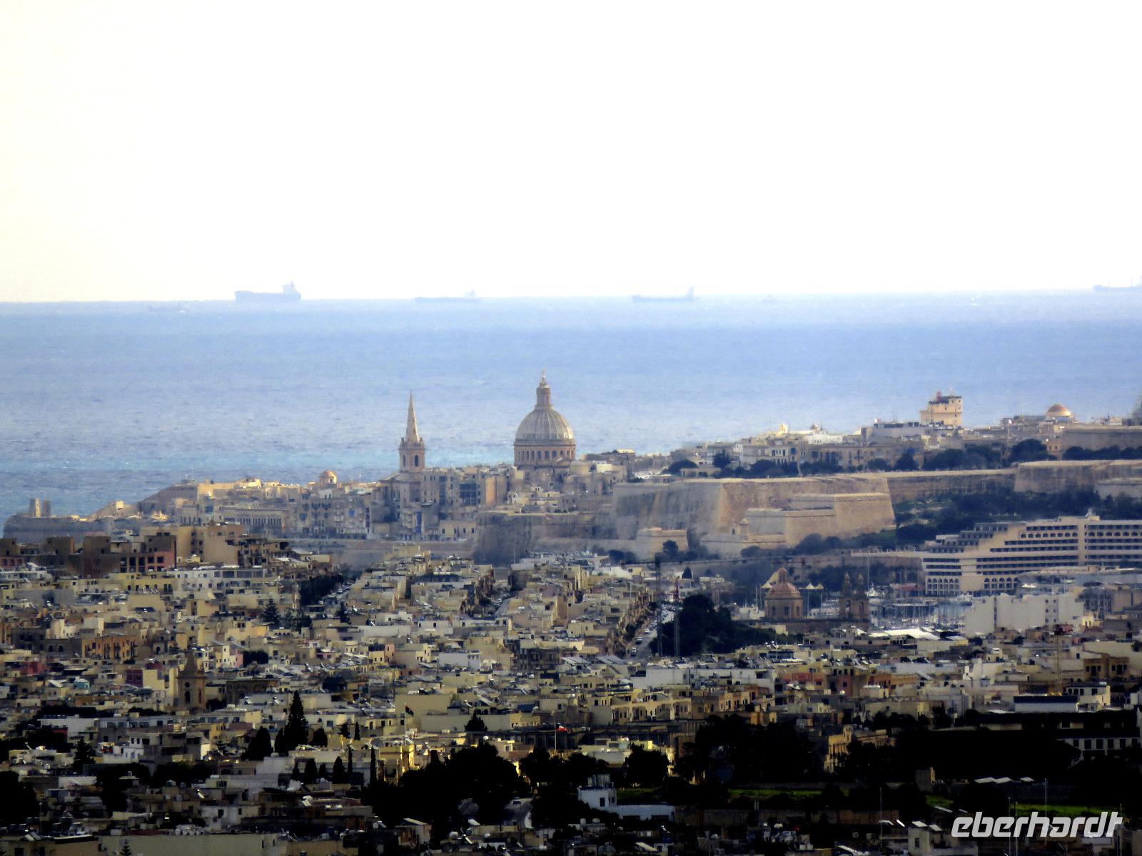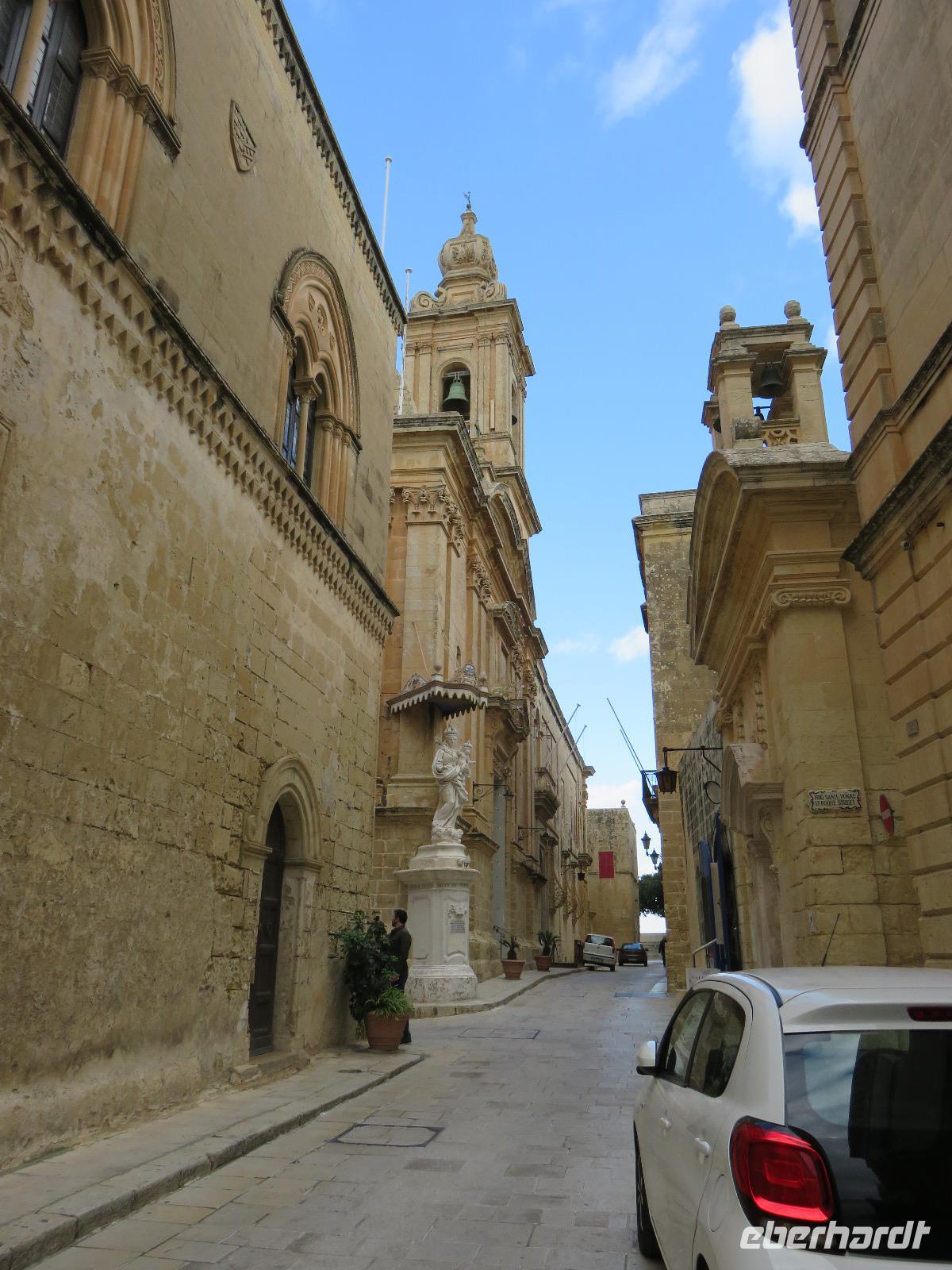 Packen wir halt auch den Regenschirm ein, besser ist besser. Gerlinde, unsere örtliche Reiseleiterin, lächelte uns entgegen. Sie lebt seit mehr als 35 Jahren auf Malta, sie fand hier ihr Lebensglück. Sie ist begeistert von der Insel und schwärmt von dem besonderen Licht. Nach kurzer Fahrt erreichten wir die alte Inselhauptstadt Mdina. Durch das gewaltige Main Gate, das Haupttor, das Großmeister Manuel de Vilhena 1724 erbauen ließ, betraten wir die mittelalterliche Stadt. Fast schien es, als sei die Zeit stehen geblieben. Wir blickten in den Howard Garden im Festungsgraben, bestaunten die Orangen-, Oliven-, Johannisbrot- und Granatapfelbäume, lauschten den Erläuterungen von Gerlinde und schlenderten anschließend durch die engen Gassen, vorbei an herrschaftlichen Palästen zur St. Peter und Paul-Kathedrale am St. Pauls-Platz. Dieses Meisterwerk von Lorenzo Gafà, Ende des 17. Jahrhunderts erbaut, zeigte sich in der prächtigen Vormittagssonne. An der imposanten Doppelturmfassade sahen wir das Wappen des Großmeisters Perellos y Roccaful, die rechte Turmuhr und am linken Turm, die Datumsuhr, die leider im Moment in Reparatur ist. Unser Weg führte uns nun durch kleine Gassen zur Festungsmauer. Da sich Mdina auf den Ausläufern des Dingli-Plateaus befindet und in einer Höhe von 185 Metern liegt, eröffnete sich uns ein äußerst imposanter Ausblick auf Valletta und seine Vororte. Man denkt, eine riesige Metropole vor sich zu haben. Bei einer Bevölkerungsdichte von 1.300 Menschen pro Quadratmeter in ganz Malta liegt dies nahe. Nach einem kurzen Spaziergang auf der wehrhaften Stadtmauer und später vorbei an weiteren prunkvollen Palästen verließen wir durch ein kleines Stadttor Mdina. Leider blieb keine Zeit für einen Museumsbesuch oder einen individuellen Bummel. Gern wären wir geblieben ... für ein Mehr in Malet oder Melita, wie die Phönizier und die Römer die Stadt nannten, sollten, müssen wir wieder kommen!