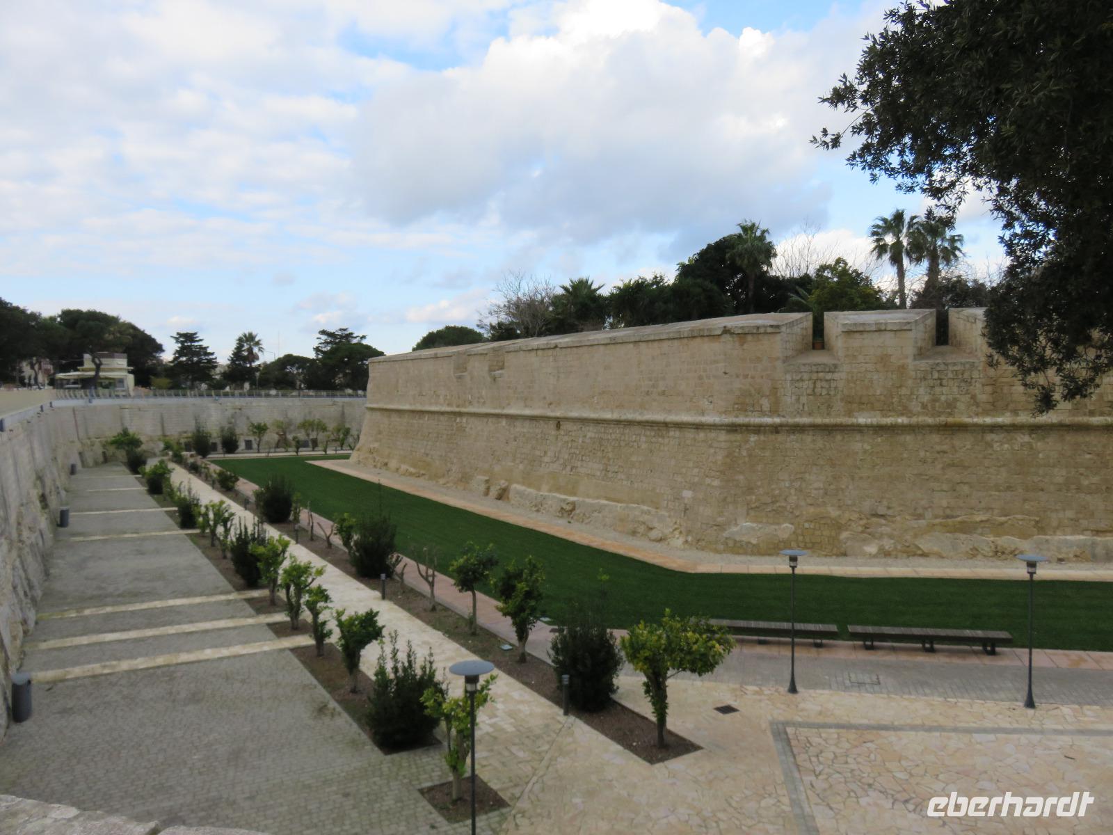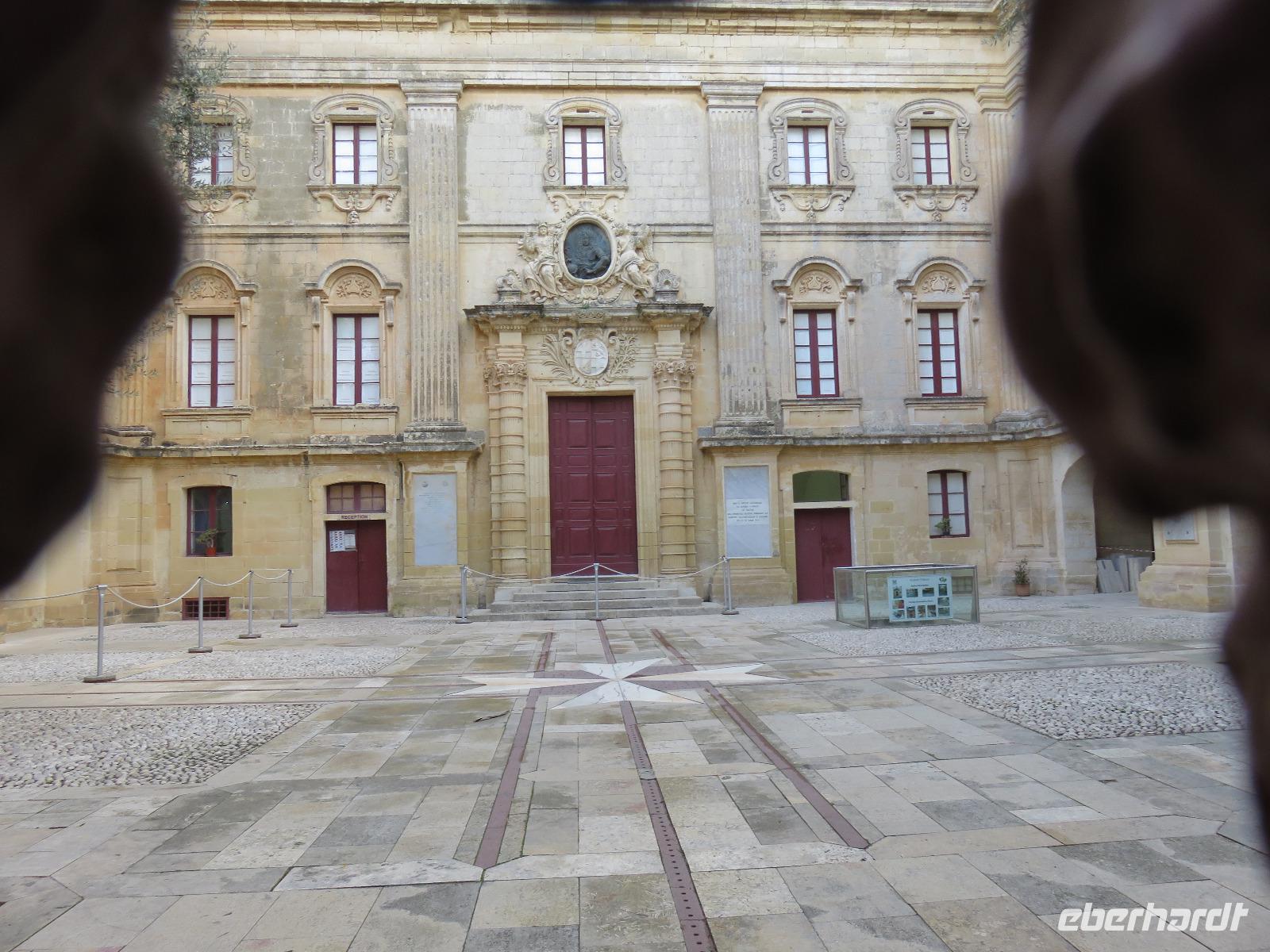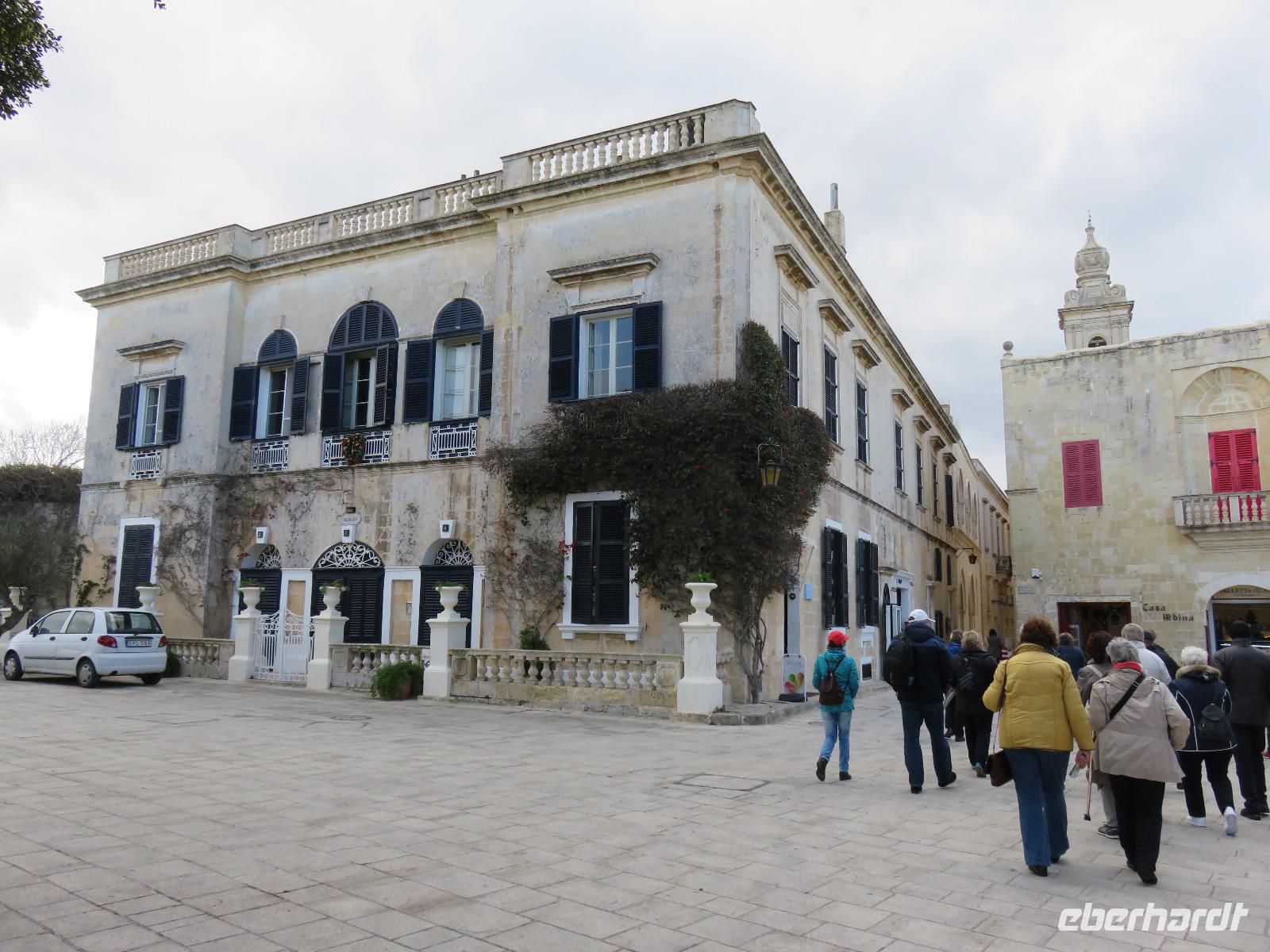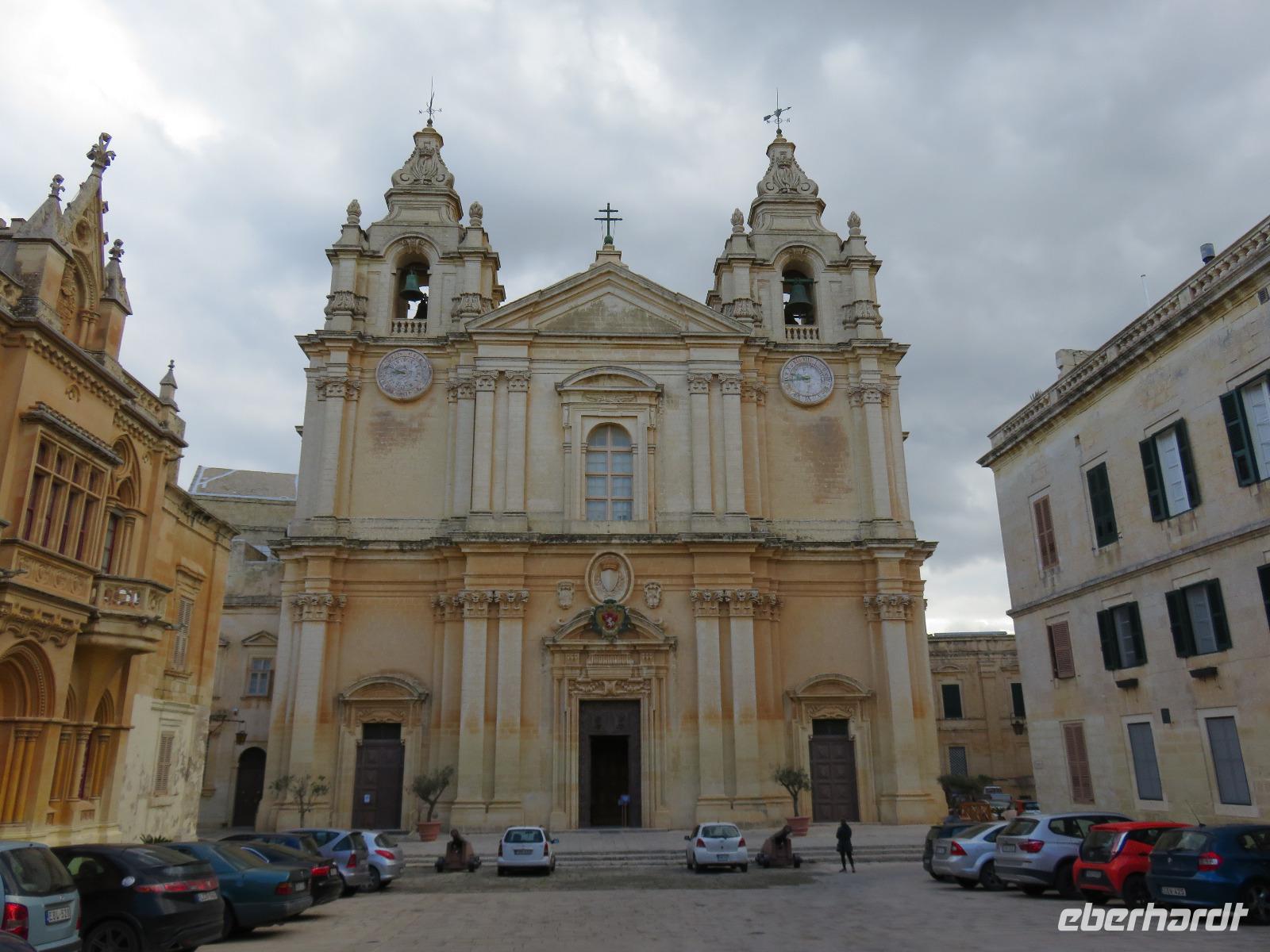 Packen wir halt auch den Regenschirm ein, besser ist besser. Gerlinde, unsere örtliche Reiseleiterin, lächelte uns entgegen. Sie lebt seit mehr als 35 Jahren auf Malta, sie fand hier ihr Lebensglück. Sie ist begeistert von der Insel und schwärmt von dem besonderen Licht. Nach kurzer Fahrt erreichten wir die alte Inselhauptstadt Mdina. Durch das gewaltige Main Gate, das Haupttor, das Großmeister Manuel de Vilhena 1724 erbauen ließ, betraten wir die mittelalterliche Stadt. Fast schien es, als sei die Zeit stehen geblieben. Wir blickten in den Howard Garden im Festungsgraben, bestaunten die Orangen-, Oliven-, Johannisbrot- und Granatapfelbäume, lauschten den Erläuterungen von Gerlinde und schlenderten anschließend durch die engen Gassen, vorbei an herrschaftlichen Palästen zur St. Peter und Paul-Kathedrale am St. Pauls-Platz. Dieses Meisterwerk von Lorenzo Gafà, Ende des 17. Jahrhunderts erbaut, zeigte sich in der prächtigen Vormittagssonne. An der imposanten Doppelturmfassade sahen wir das Wappen des Großmeisters Perellos y Roccaful, die rechte Turmuhr und am linken Turm, die Datumsuhr, die leider im Moment in Reparatur ist. Unser Weg führte uns nun durch kleine Gassen zur Festungsmauer. Da sich Mdina auf den Ausläufern des Dingli-Plateaus befindet und in einer Höhe von 185 Metern liegt, eröffnete sich uns ein äußerst imposanter Ausblick auf Valletta und seine Vororte. Man denkt, eine riesige Metropole vor sich zu haben. Bei einer Bevölkerungsdichte von 1.300 Menschen pro Quadratmeter in ganz Malta liegt dies nahe. Nach einem kurzen Spaziergang auf der wehrhaften Stadtmauer und später vorbei an weiteren prunkvollen Palästen verließen wir durch ein kleines Stadttor Mdina. Leider blieb keine Zeit für einen Museumsbesuch oder einen individuellen Bummel. Gern wären wir geblieben ... für ein Mehr in Malet oder Melita, wie die Phönizier und die Römer die Stadt nannten, sollten, müssen wir wieder kommen!