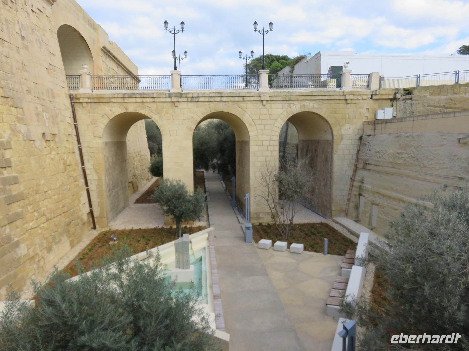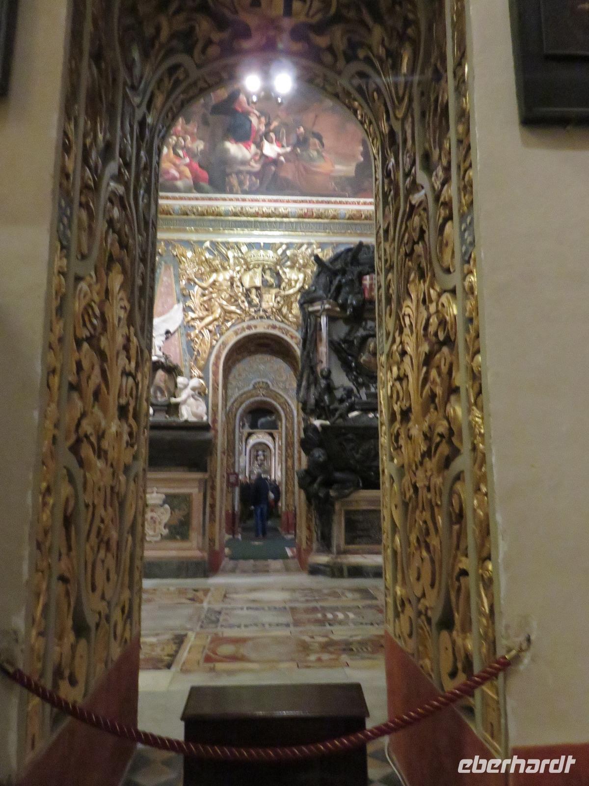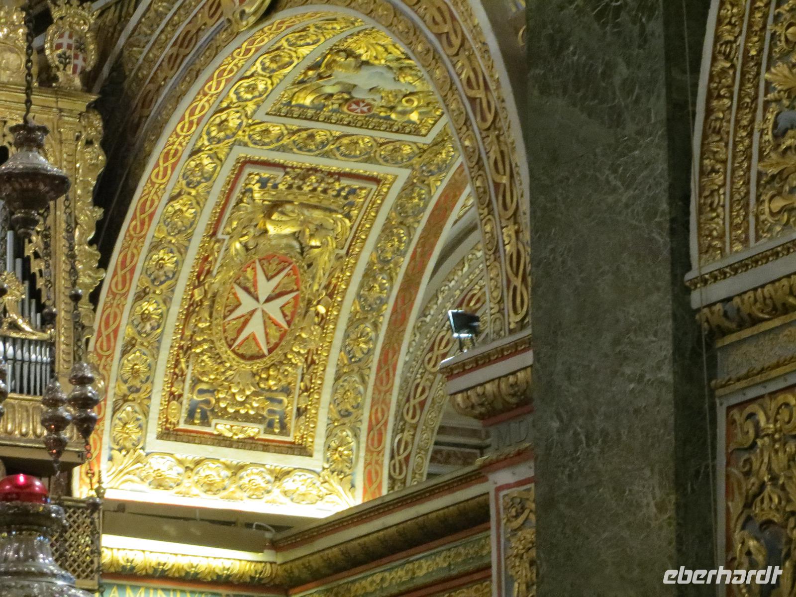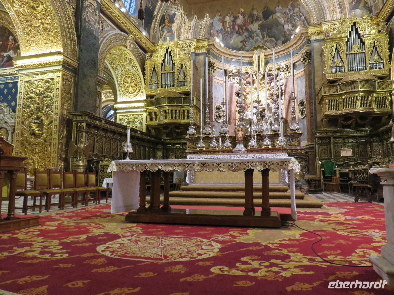 Unser nächstes Ziel ist die heutige Inselhauptstadt Valletta. Zunächst fuhren wir vorbei am Fußballstadion durch eine kleine Ebene in die Vororte und schließlich nach Floriana. An diesem Eingangstor zur Stadt der Ordensritter legten wir eine Pause der Harmonie ein. Nun stand unserem Erlebnis Valletta bei schönstem Wetter nichts mehr im Weg. Durch das City-Tor betraten wir die Stadt, die in nur fünf Jahren (!) errichtet wurde und auch heute durch gewaltige Mauern geschützt, einen äußerst wehrhaften Charakter besitzt. Schnell ein Blick in den gewaltigen Festungsgraben. Unsere Schritte lenkten wir zuerst zum neuen Parlamentsgebäude Maltas mit der wundervollen Fassade aus gelben Muschelkalk und zu den Ruinen des Royal Opera House, völlig ausgebombt 1942. Gerlinde führte uns mit eiligen Schritten über die Republic-Street zur St. Johns Co-Kathedrale. Mit dieser fast schlichten Fassade könnte man einen Palast vermuten, aber keine Kirche dieser Bedeutung. Wie heißt es doch: Auf Malta offenbart sich das Reizvolle erst auf den zweiten Blick. Der französisches Großmeister Jean l'Evêque de la Cassière hatte diesen Sakralbau den Johannitern gestiftet. Geweiht wurde sie dem Schutzpatron des Ordens, Johannes dem Täufer. Nach dem Betreten des Inneren stockte uns der Atem, unsere Augen mussten sich erst an die prunkvolle und äußerst üppige Ausstattung gewöhnen. Die Großmeister und die einzelnen Landsmannschaften haben die Ordenskirche mit kostbaren Kunstwerken ausgestattet. Gerlinde berichtete, dass ca. 4.000 Quadratmeter Blattgold verarbeitet wurden. Auch die 375 mit Marmorintarsien versehenen Grabplatten der Ritter des Johanniter- und des Malteserordens sind einmalig. Wir besichtigten die Sakristei und die Kapelle von Deutschland, flanierten an vielen weiteren Gästen vorbei durch das Kirchenschiff zum Chorraum mit dem prächtigen Hochaltar und der weißen Marmorgruppe der Taufe Christi. Abschließender Höhepunkt war der Besuch des Oratoriums der Kathedrale mit zwei Gemälden von Caravaggio: Hl. Hieronymus und Die Enthauptung Johannes des Täufers, sein Hauptwerk auf Malta. Caravaggio, sein bürgerlicher Name: Michelangelo da Merisi, war in Italien ein gefragter Altarmaler, aber auch oft mit dem Gesetz in Konflikt gekommen und auf die Insel Malta geflüchtet. Er beherrschte die Kunst des Licht- und Dunkelmalens im besonderen Maß. Schnell bekam er Aufträge der Ordensritter. So wurde er für ein Porträt des Großmeisters Alof de Wignacourt berühmt und wurde selbst zum Ritter geschlagen. Leider überwarf er sich mit den Rittern, kam erneut mit dem Gesetzt in Konflikt und floh schließlich auch von Malta. Mit nur 38 Jahren starb der Künstler in Italien.