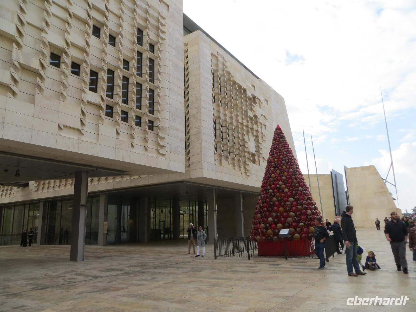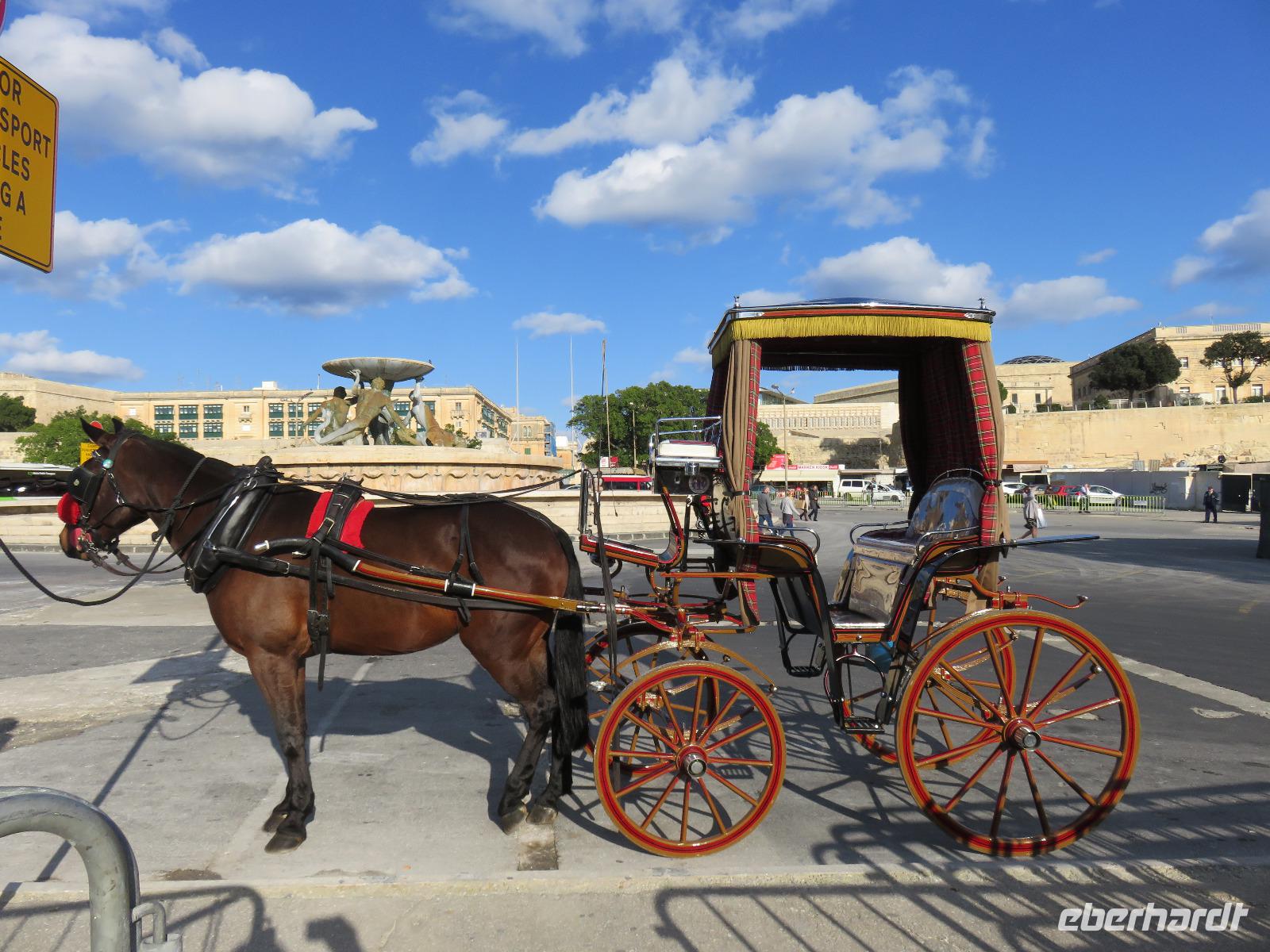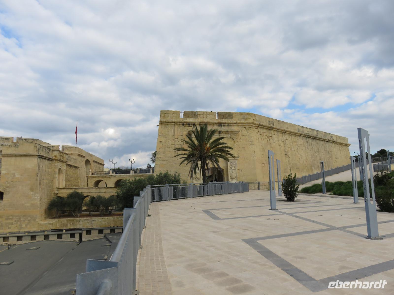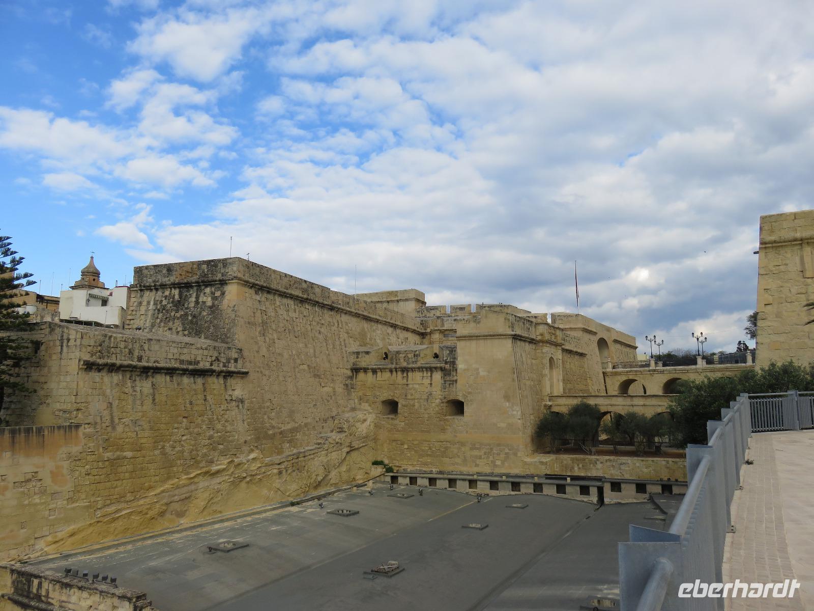 Nach etwas Zeit zu individuellen Besichtigungen spazierten wir vorbei am Denkmal für den Stadtgründer Jean de la Valette, am Sitz der Präsidentin Maltas, Marie Louise Coleiro Preca, zum Upper Barracca Garden, einer kleinen, grünen Oase fast mitten in der Stadt. Von hier eröffnete sich uns ein äußerst prächtiger Blick auf den Grand Harbour, den Großen Hafen, und The Three Cities: Birgu, Senglea und Cospicua mit ihren kleinen und größeren Hafenbecken. Unsere Schritte führten uns zurück zur St. Johns Co-Kathedrale, wo wir nun die Prachtfassade mit den zwei Türmen und der Uhr bestaunten. Nicht mehr weit und wir standen vor dem Großmeisterpalast, dem Sitz der Macht auf Malta. Einst residierten hier die Großmeister, später ab 1800 der britische Gouverneur und heute auch die maltesische Präsidentin. Leider hatte der Palast mit seinen Prunkräumen und -sälen heute zu Silvester geschlossen. Wir müssen wirklich nochmals wiederkommen! Hier in der Nähe des Palastplatzes befinden sich eine Reihe von Restaurants und Cafés und wir hatten uns nach den Besichtigungen eine Pause zur Stärkung im wahrsten Sinn der Worte verdient. Einige Gäste fanden Plätze im Traditionscafé Cordina, andere bevorzugten bei nun wolkenlosem Himmel die Tische im Freien.