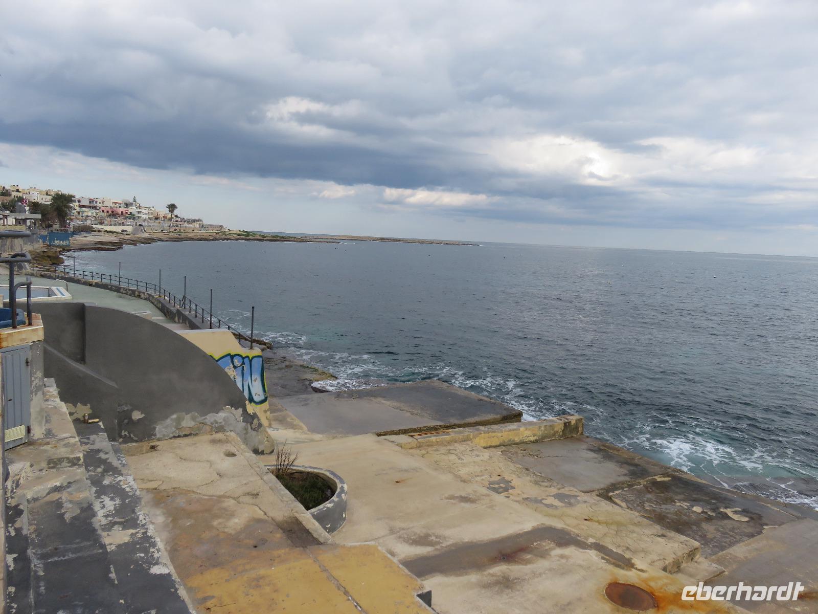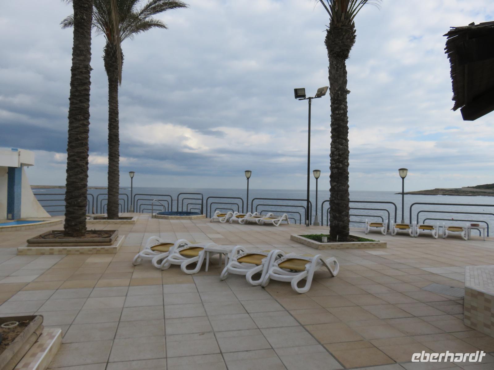 Uns lachte die Sonne entgegen und so genossen wir unsere Busfahrt vorbei an der alten Hauptstadt Mdina in den Norden der Insel. Unser Hotel Seashells Resort at Suncrest befindet sich in Bugibba, unweit der St. Pauls Bay. Hier ist nach Sliema und St. Julian das dritte Touristenzentrum Maltas im Wachsen. Unser Hotel gehört zu den größeren Häusern des Ortes und liegt in einer Bucht unweit der früheren Salinen. Leider waren unsere Zimmer noch nicht fertig. Wir mussten bis ca. 15 Uhr warten. 2014 hatte das Nationale Aquarium Maltas im Ort eröffnet. Hier befinden sich 26 Bassins mit ca. 130 Meerestieren. Und so nutzte die Mehrzahl unserer Gäste die Möglichkeit zum Besuch des Aquariums oder zu einem ersten Spaziergang in der Bucht. Viele kleine Restaurants luden zudem zu einer Stärkung ein.