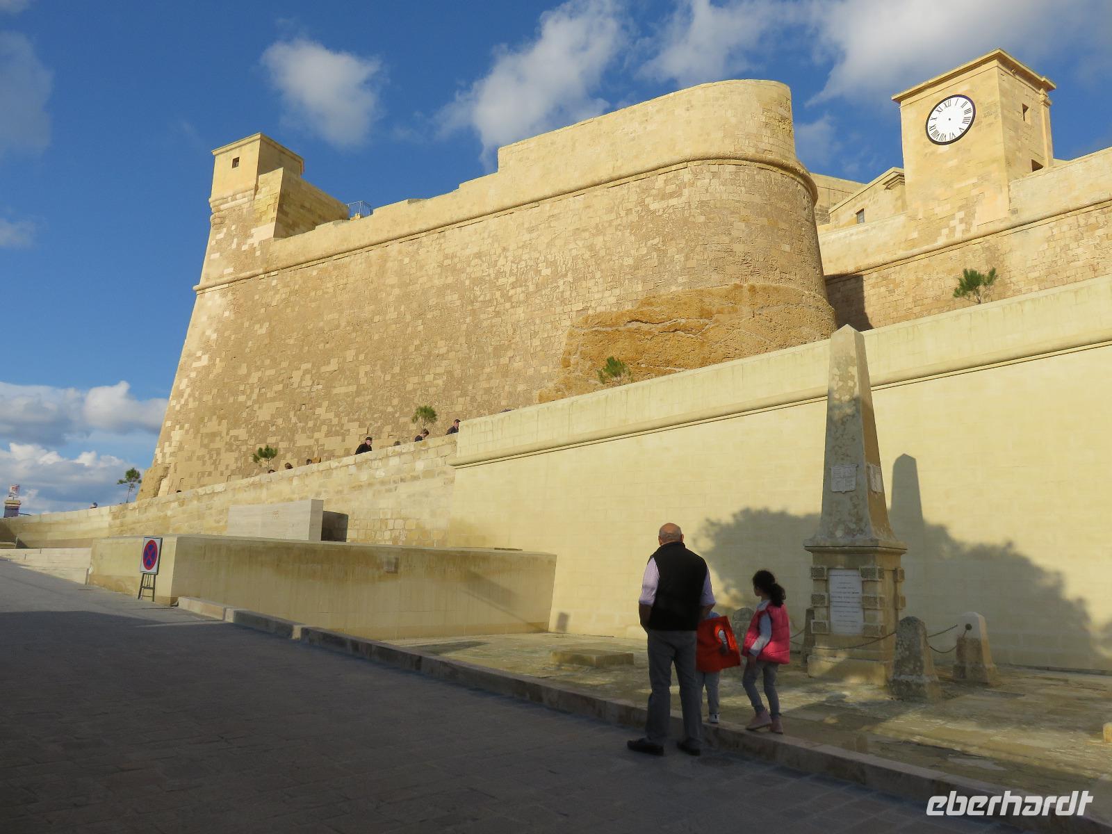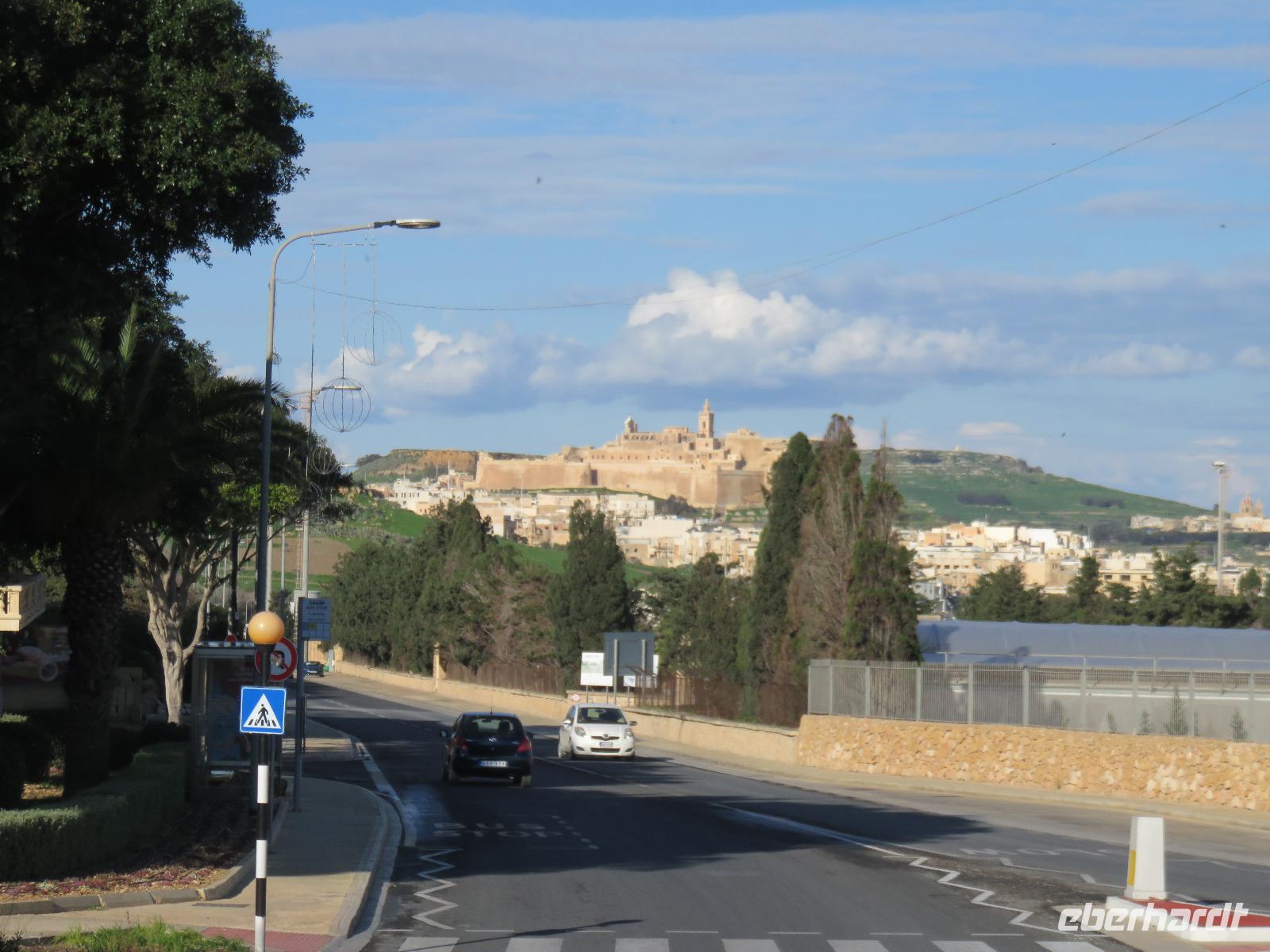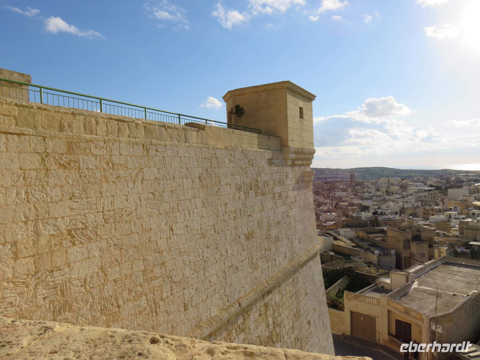 Nun wird es Zeit, der Inselhauptstadt einen Besuch abzustatten. Also klettern wir mit dem Bus wieder die Kehren hinauf und erreichen nach wenigen Minuten Rabat, das 1897 zum diamantenen Thronjubiläum der britischen Königin Victoria den Namen Victoria erhielt. Wir spazierten durch die engen, kleinen Gassen der Inselhauptstadt, die zugleich das wirtschaftliche und kulturelle Zentrum Gozos ist. An der Kirche des Heiligen Georg legten wir unseren Treffpunkt nach Zeit für individuelle Besichtigungen fest. Unsere Interessen gingen auseinander. Besichtigung der Kirche, Aufstieg zur gewaltigen Zitadelle oder einfach etwas Ruhe, um die Szenerie zu genießen ... Die Ursprünge der Zitadelle gehen auf punische und römische Zeiten zurück. Die Araber befestigten diesen strategischen Platz ebenfalls. Schließlich waren es die Johanniter an der Wende vom 16. zum 17. Jahrhundert, die dieses gewaltige Bauwerk errichteten. Das steilste Stück des Aufstiegs erfolgte vom IT-Tokk, dem Hauptplatz, dann schritten wir über leicht ansteigende Rampen hinauf zum Platz an der Kathedrale und von dort auf die Kastellmauern. Uns eröffnete sich ein wirklich einzigartiger Blick auf Rabat, auf Gozo und teils hinüber nach Malta. Leider hatten wir keine Zeit, die Museen der Zitadelle, zum Beispiel das Kathedralmuseum oder das Archäologische Museum zu besichtigen. Immer mehr bildete sich der Wunsch zu einem erneuten Besuch der Inseln heraus. Wir sind an die Fährzeiten gebunden ... eine kurze Busfahrt zum Hafen, etwas Warten auf die nächste Fähre und dann genossen wir unsere Überfahrt nach Malta. Wir erreichten die Hauptinsel im Sonnenuntergang, ein Spiel der Farben und ein Augenschmaus. Nun hieß es bereits Abschied nehmen.