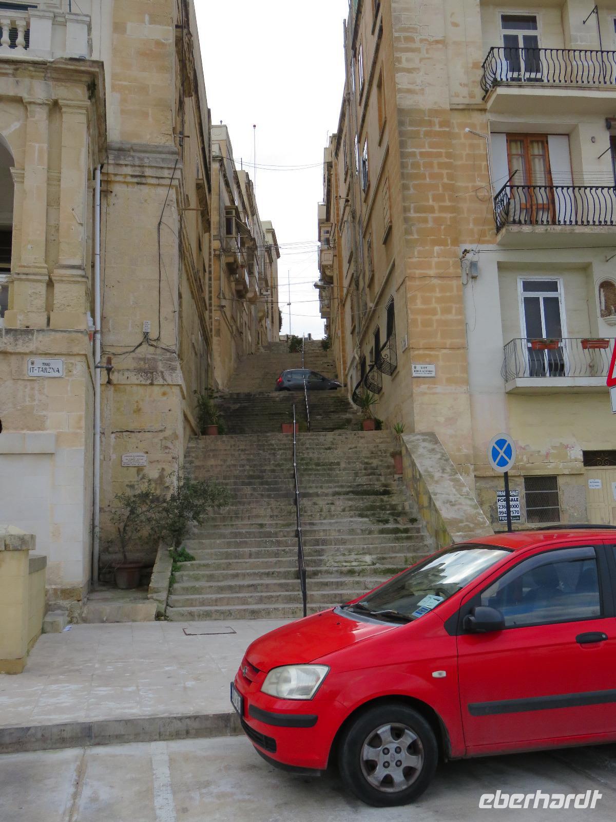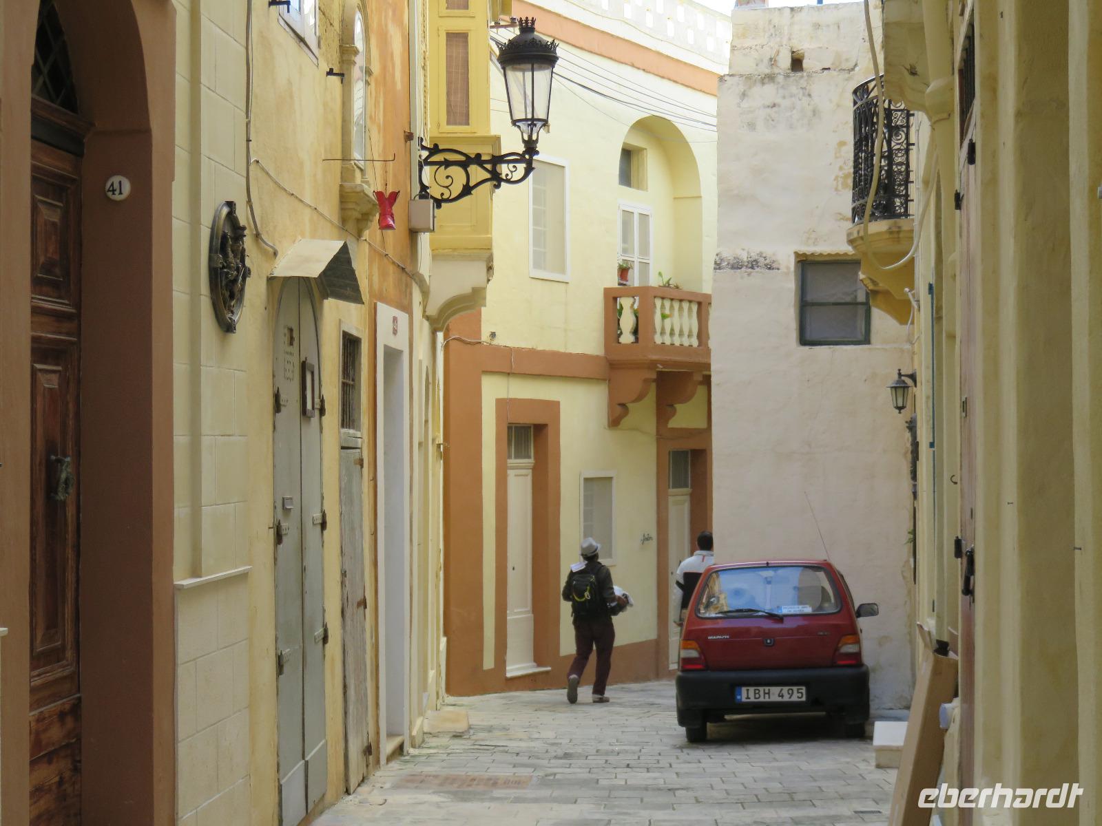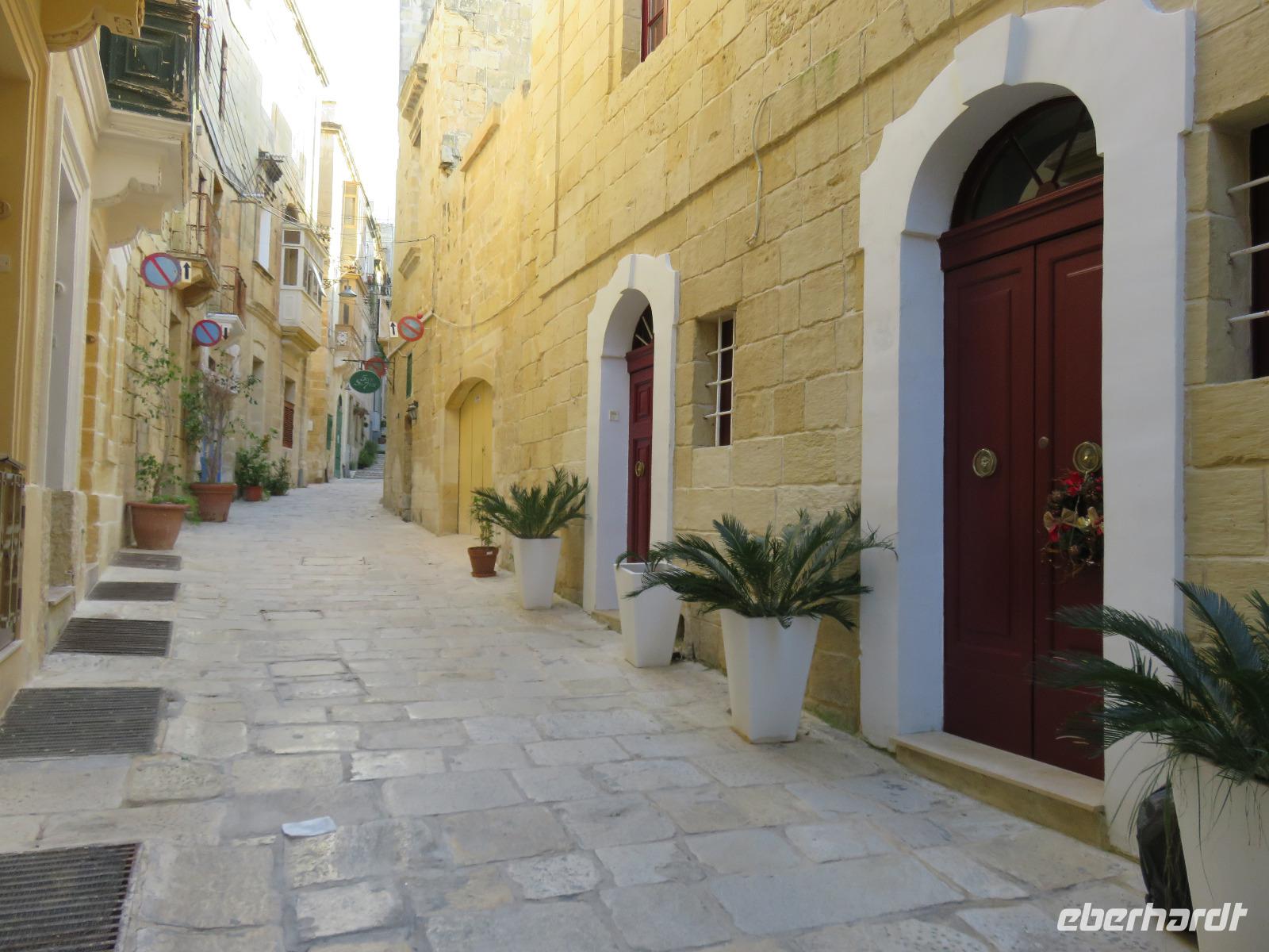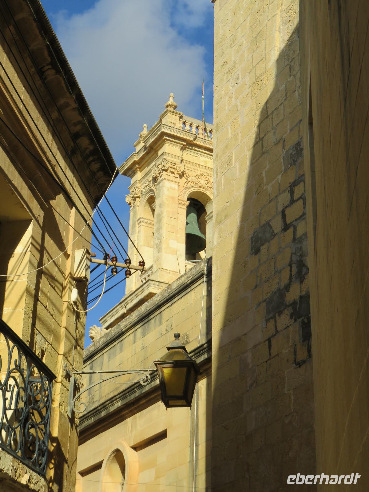 Nun wird es Zeit, der Inselhauptstadt einen Besuch abzustatten. Also klettern wir mit dem Bus wieder die Kehren hinauf und erreichen nach wenigen Minuten Rabat, das 1897 zum diamantenen Thronjubiläum der britischen Königin Victoria den Namen Victoria erhielt. Wir spazierten durch die engen, kleinen Gassen der Inselhauptstadt, die zugleich das wirtschaftliche und kulturelle Zentrum Gozos ist. An der Kirche des Heiligen Georg legten wir unseren Treffpunkt nach Zeit für individuelle Besichtigungen fest. Unsere Interessen gingen auseinander. Besichtigung der Kirche, Aufstieg zur gewaltigen Zitadelle oder einfach etwas Ruhe, um die Szenerie zu genießen ... Die Ursprünge der Zitadelle gehen auf punische und römische Zeiten zurück. Die Araber befestigten diesen strategischen Platz ebenfalls. Schließlich waren es die Johanniter an der Wende vom 16. zum 17. Jahrhundert, die dieses gewaltige Bauwerk errichteten. Das steilste Stück des Aufstiegs erfolgte vom IT-Tokk, dem Hauptplatz, dann schritten wir über leicht ansteigende Rampen hinauf zum Platz an der Kathedrale und von dort auf die Kastellmauern. Uns eröffnete sich ein wirklich einzigartiger Blick auf Rabat, auf Gozo und teils hinüber nach Malta. Leider hatten wir keine Zeit, die Museen der Zitadelle, zum Beispiel das Kathedralmuseum oder das Archäologische Museum zu besichtigen. Immer mehr bildete sich der Wunsch zu einem erneuten Besuch der Inseln heraus. Wir sind an die Fährzeiten gebunden ... eine kurze Busfahrt zum Hafen, etwas Warten auf die nächste Fähre und dann genossen wir unsere Überfahrt nach Malta. Wir erreichten die Hauptinsel im Sonnenuntergang, ein Spiel der Farben und ein Augenschmaus. Nun hieß es bereits Abschied nehmen.
