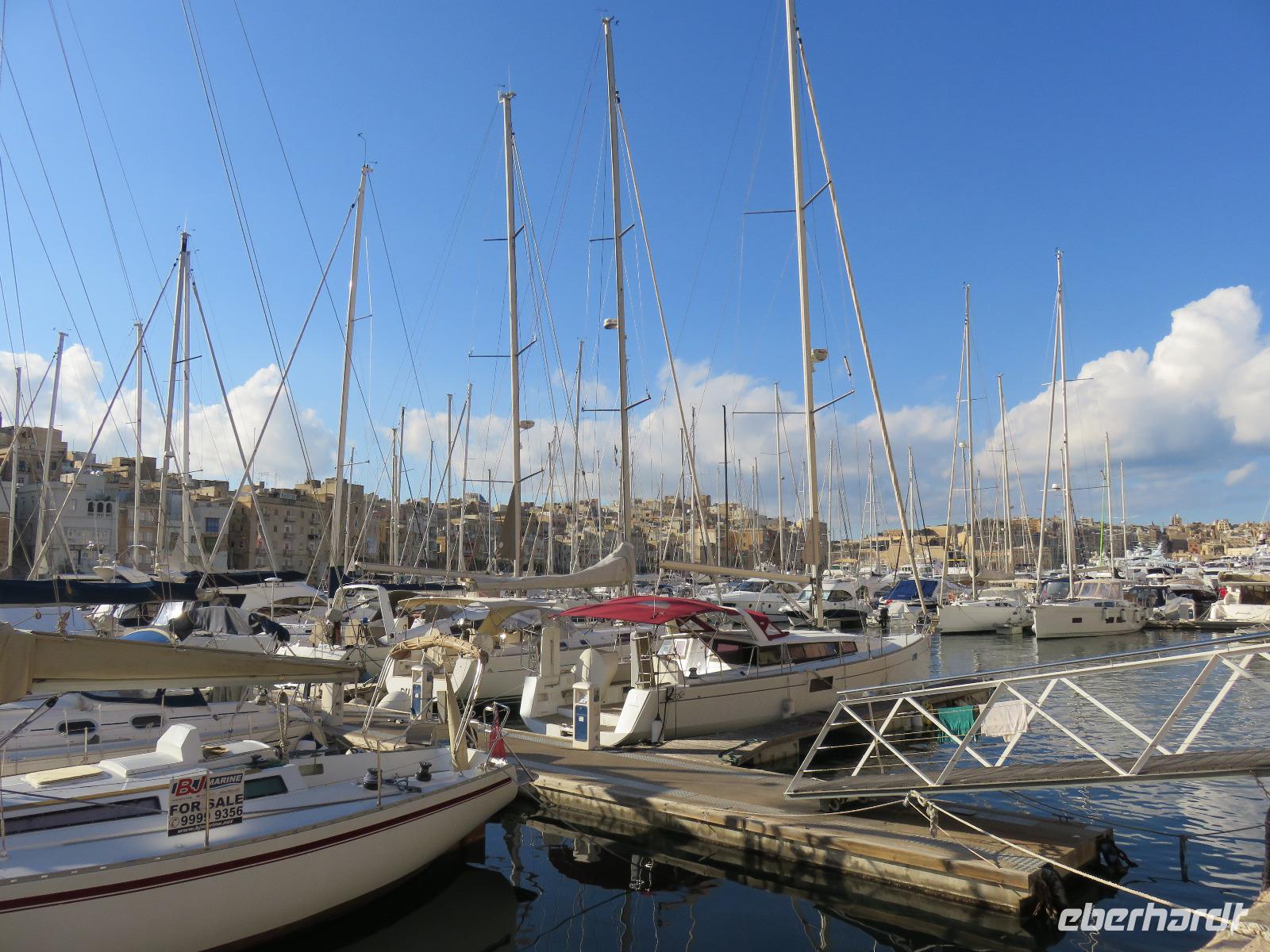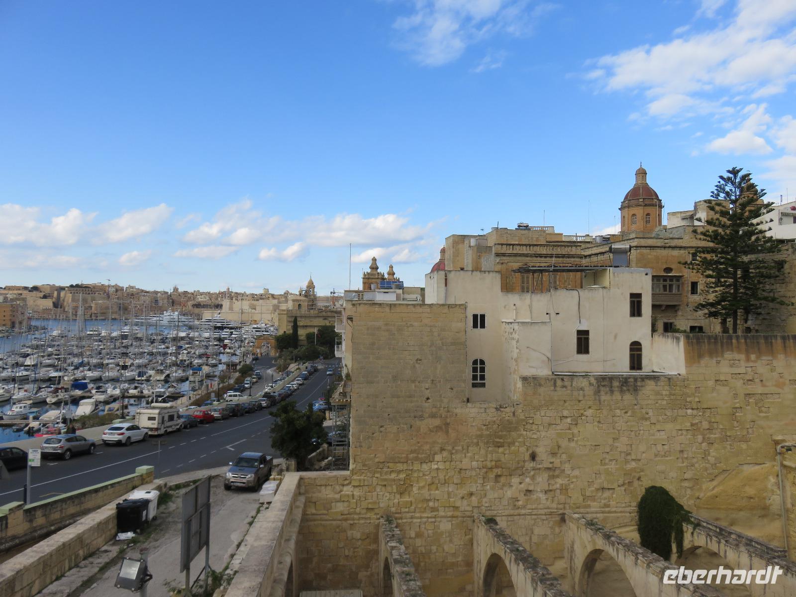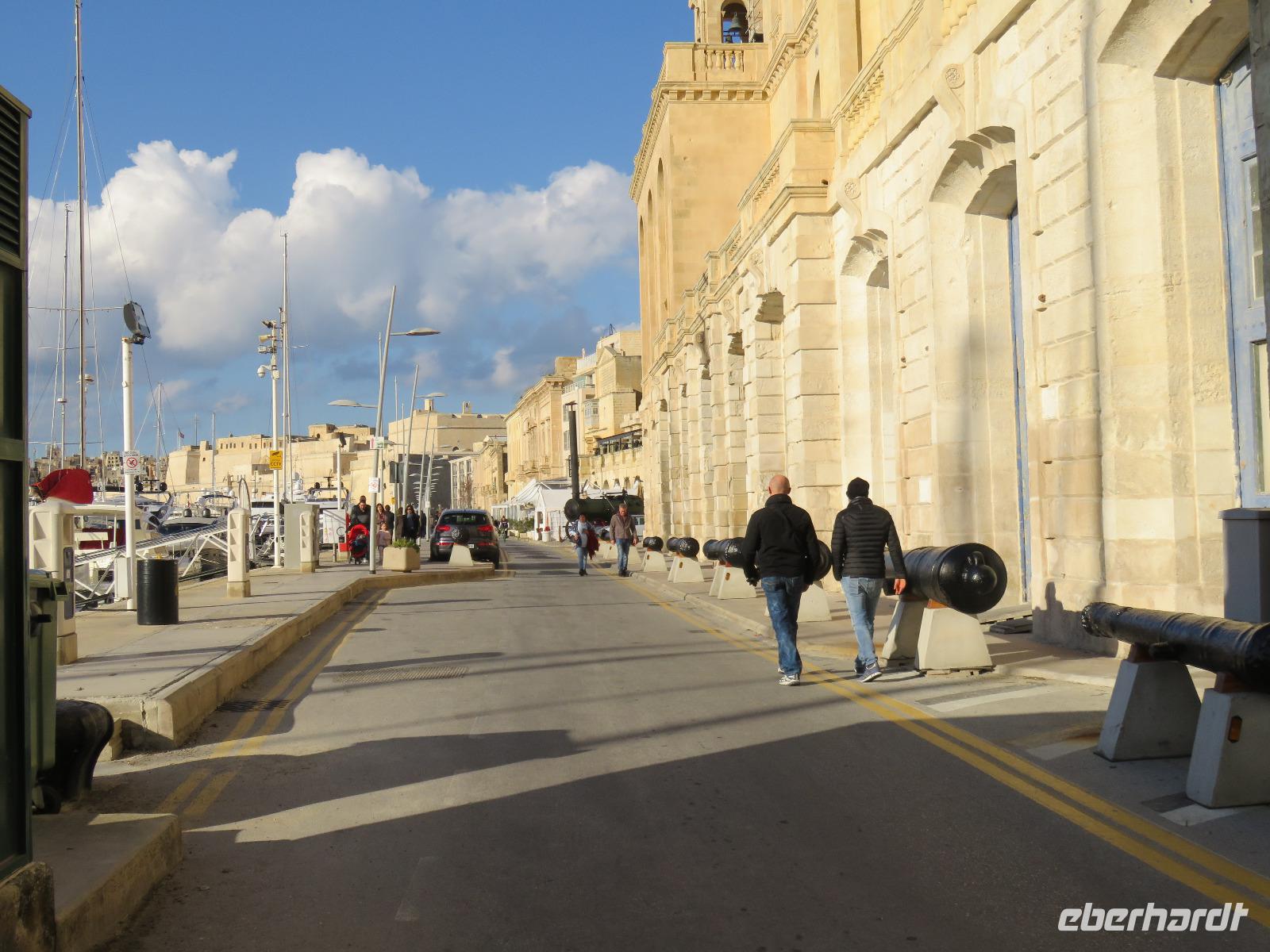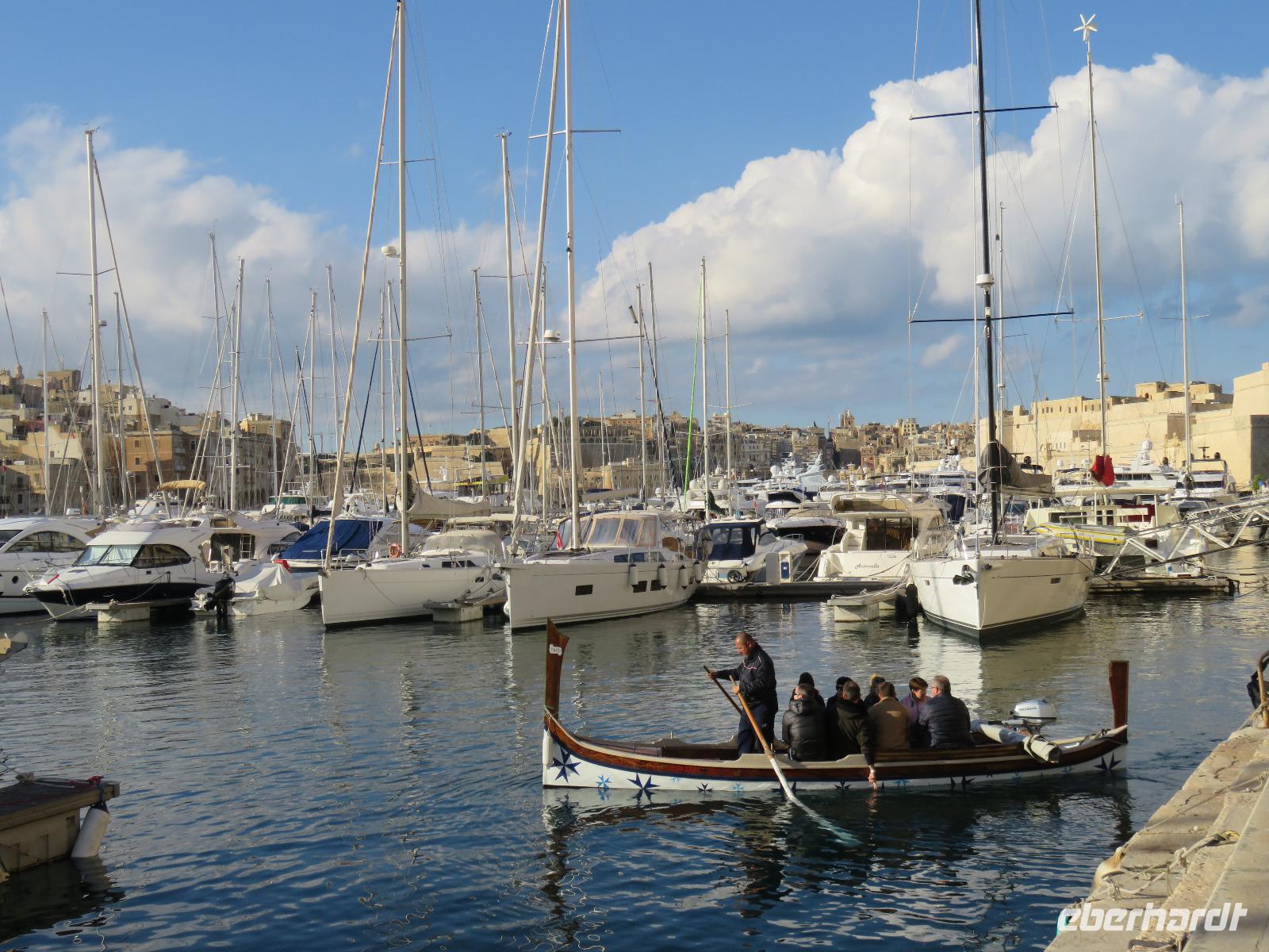 Heute war Ausschlafen angesagt. Nach einem späten Frühstück war Zeit für einen Neujahrsbummel entlang der Salina-Bucht. 13 Uhr starteten wir zu unserem Ausflug zu den Drei Alten Städten, in die Cottonera, wie diese auch genannt werden. Zuerst spazierten wir durch die engen Gassen von Senglea von der Basilika hinab zur Marina. Mit Blick zu den steilen Treppen erreichten wir schließlich das alte Verwaltungsgebäude mit den schmucken Arkaden. Auch sahen wir die kleinen bunten Wassertaxis, die Dghajsa, die traditionellen phönizischen Boote mit dem hohen bemalten Bug, und natürlich die schmucken Yachten unterschiedlichster Preisklassen. Gerlinde berichtete über die Geschichte des Viertels, das einst ein Lagerplatz war, später Hafen, Wohnort der Lastenträger, der Schauerleute und der Dockarbeiter sowie Industriestandort, der Ende des zweiten Weltkrieges stark zerbombt wurde. Nach anschließender kurzer Busfahrt vorbei an den gewaltigen Docks besuchten wir Vittoriosa, das einstige Birgu. Durch die zwei gewaltige Stadttore der St. Johns Bastion und Poste de France betraten wir dieses Viertel. Mit diesen Verteidigungsanlagen konnten sich die Ordensritter vor Zugriffen schützen. Mächtige Mauern gaben den nötigen Schutz. Vorbei an der Kirche Annunciation und am Palast der Inquisition führte uns der Weg in das Viertel Il Collachio mit den Herbergen der Ritter. Über den Hauptplatz gehend erreichten wir schließlich die St. Lawrence Kirche und davor das Freiheitsdenkmal, das an den Abzug der letzten britischen Streitkräfte 1979 erinnert. Am Ufer des Creeks erstreckt sich ein langes Gebäude mit einem Uhrturm, früher Marinebäckerei beherbergt es heute das Maritime Museum. Wir wärmten uns mit Blick auf den Yachthafen und hinüber nach Senglea bei wohligen 15 °C in der frühlingshaften Sonne. Was für ein Gefühl an einem Neujahrstag!