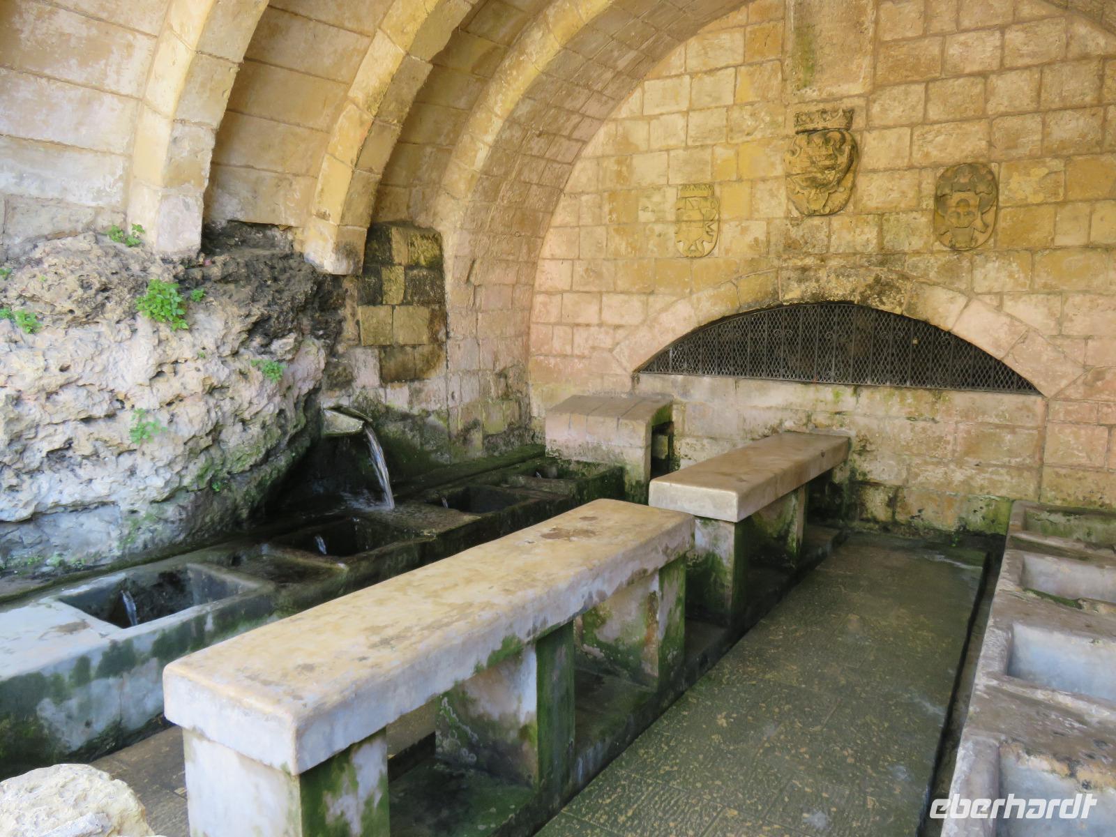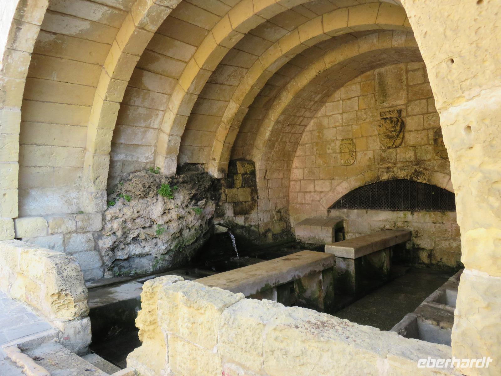 Nach diesem Blick in die Steinzeit, in Geschichte, die mehr als 5.000 Jahre zurück liegt, reisten wir in Richtung Westen. Von Weitem grüßte uns bereits die gewaltige Zitadelle von Rabat. Wir besuchten aber zuerst den kleinen Markt Fontana Cottage. Hier boten Händler in gediegenem Ambiente typische Produkte der Inseln an. Wir probierten köstlichen Käse, Wurst, Feigen- oder Zitronenlikör. Schnell noch das ein oder andere Souvenir für zu Hause eingekauft. Gegenüber erblickten wir einen alten Waschplatz, früher der Platz wo die Frauen ihre Neuigkeiten austauschten. Der Platz soll auch heute noch in Betrieb sein ...