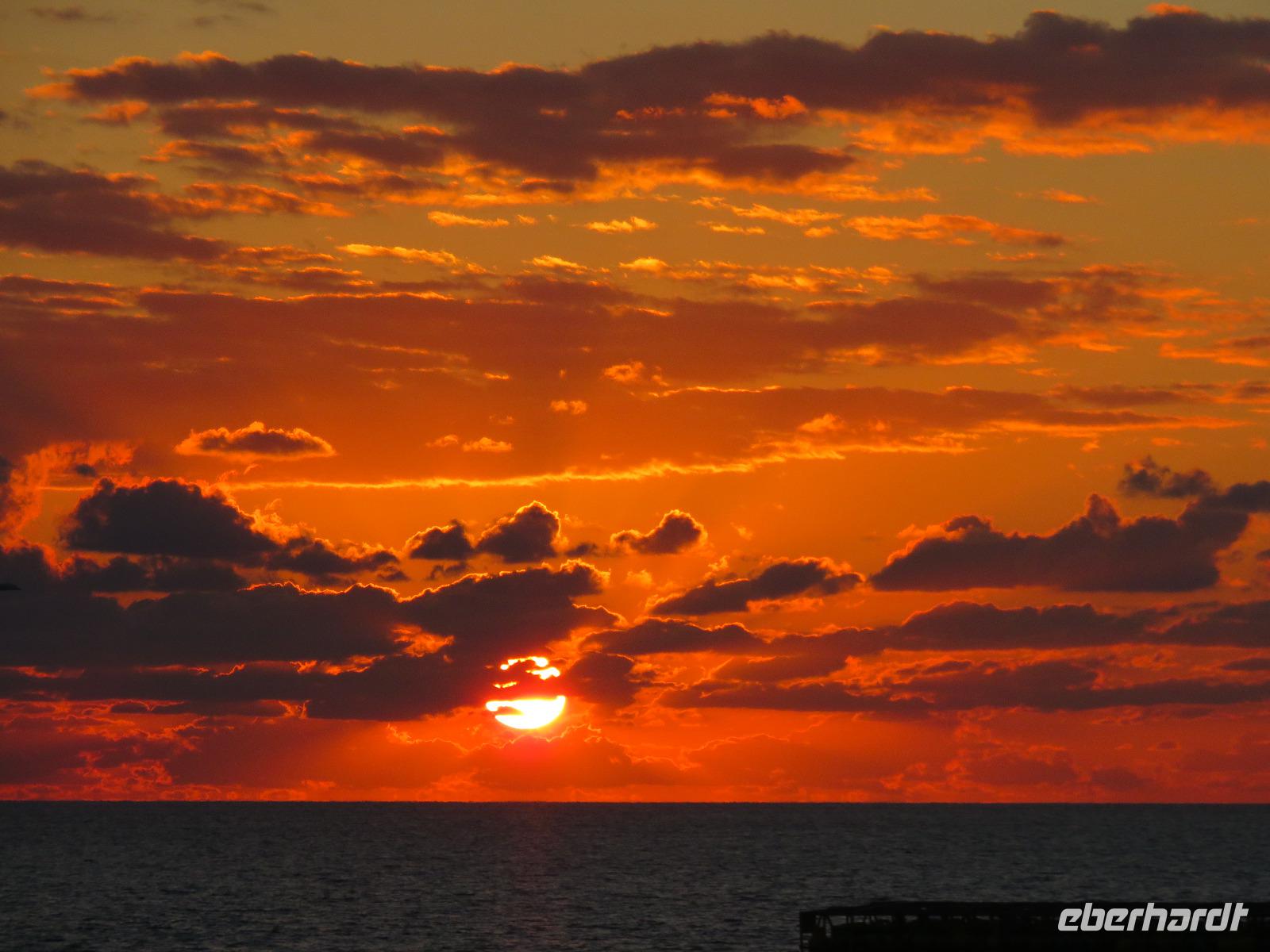 Auch das Frühstücksbuffet war üppig und sehr gut bestückt, der Kaffee gut und wir voller Erwartungen auf den letzten Tag des alten Jahres. Ein kurzer Blick zum Himmel: ein richtiges Wolkenspiel und dazwischen blinzelt die Sonne hindurch. Wer wird diesen Wettstreit gewinnen?