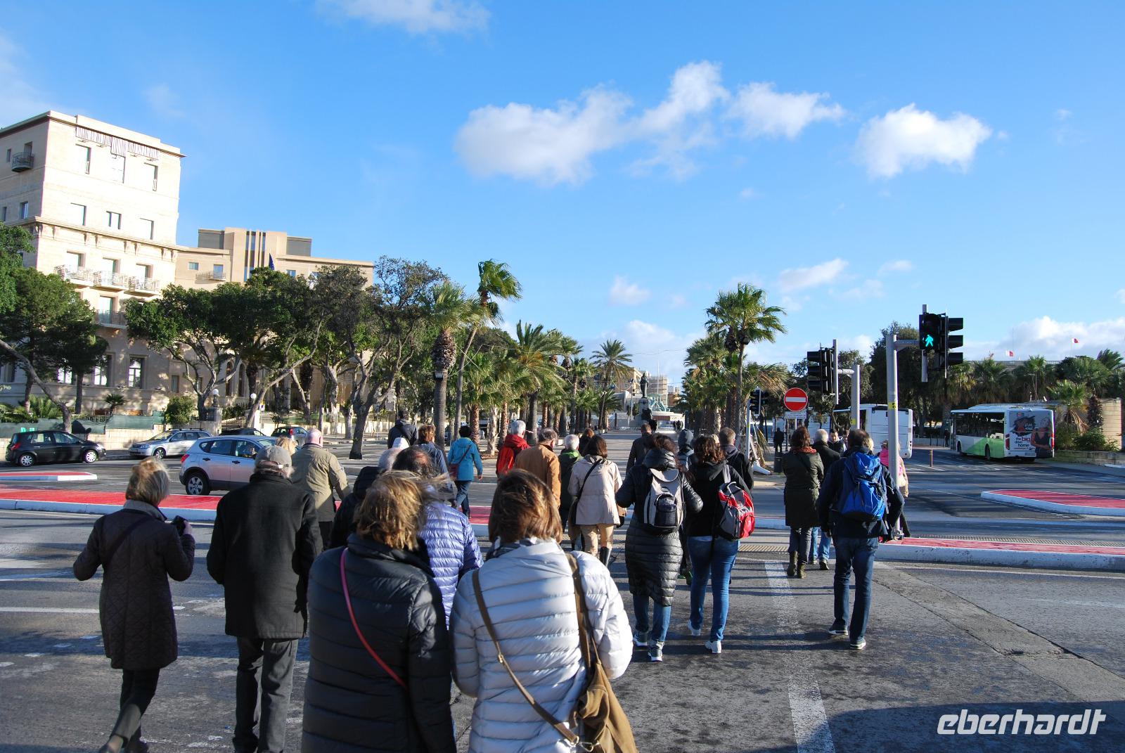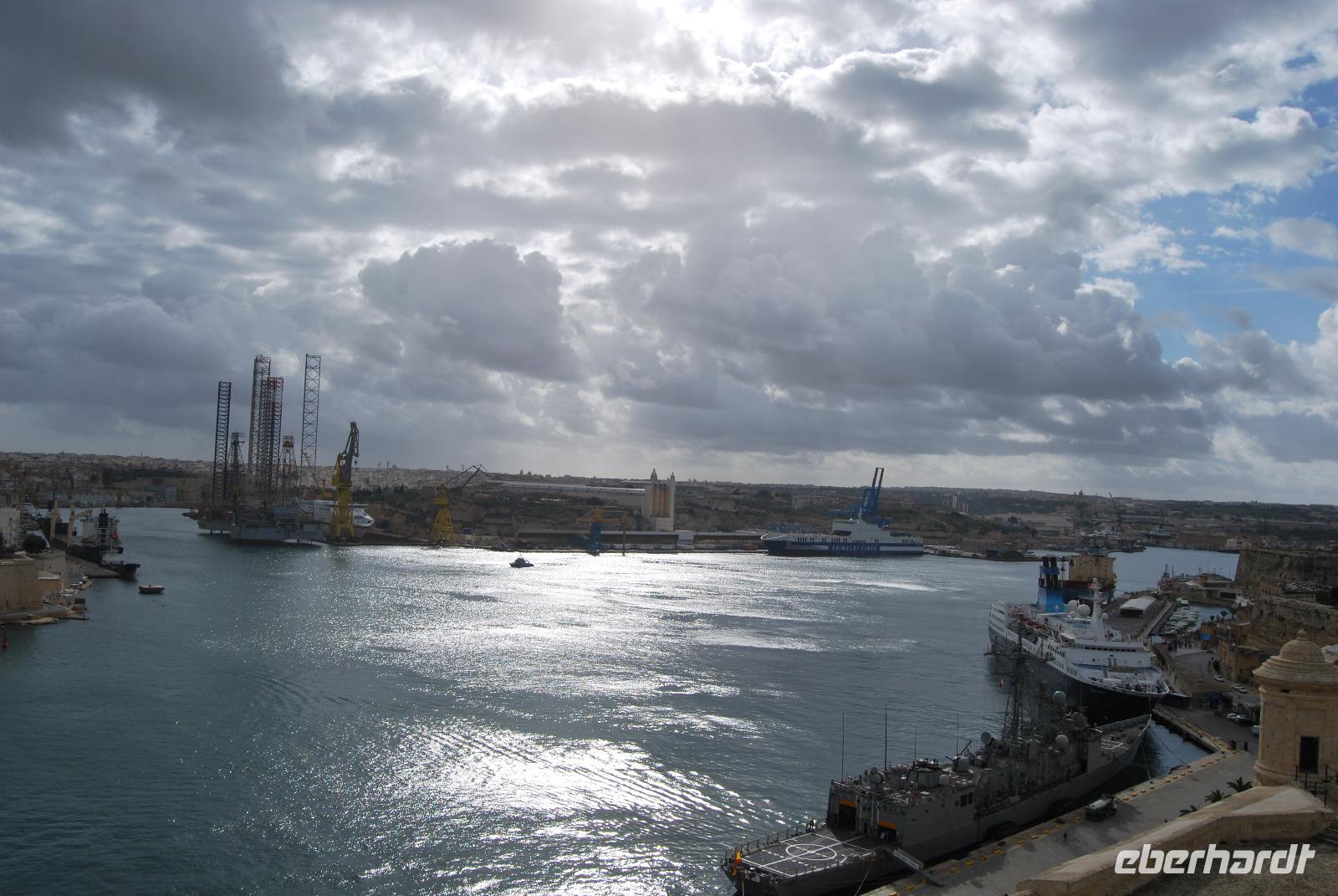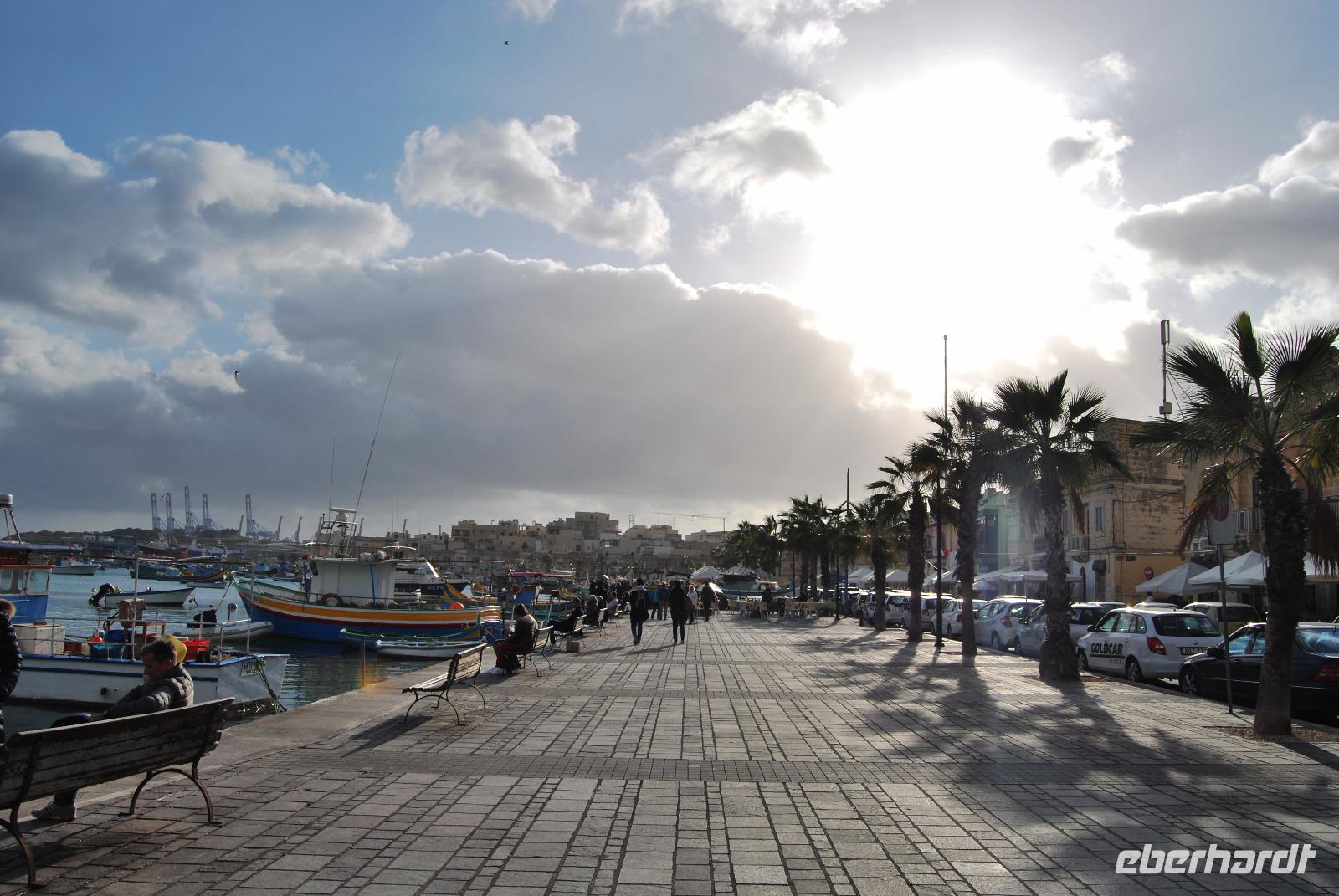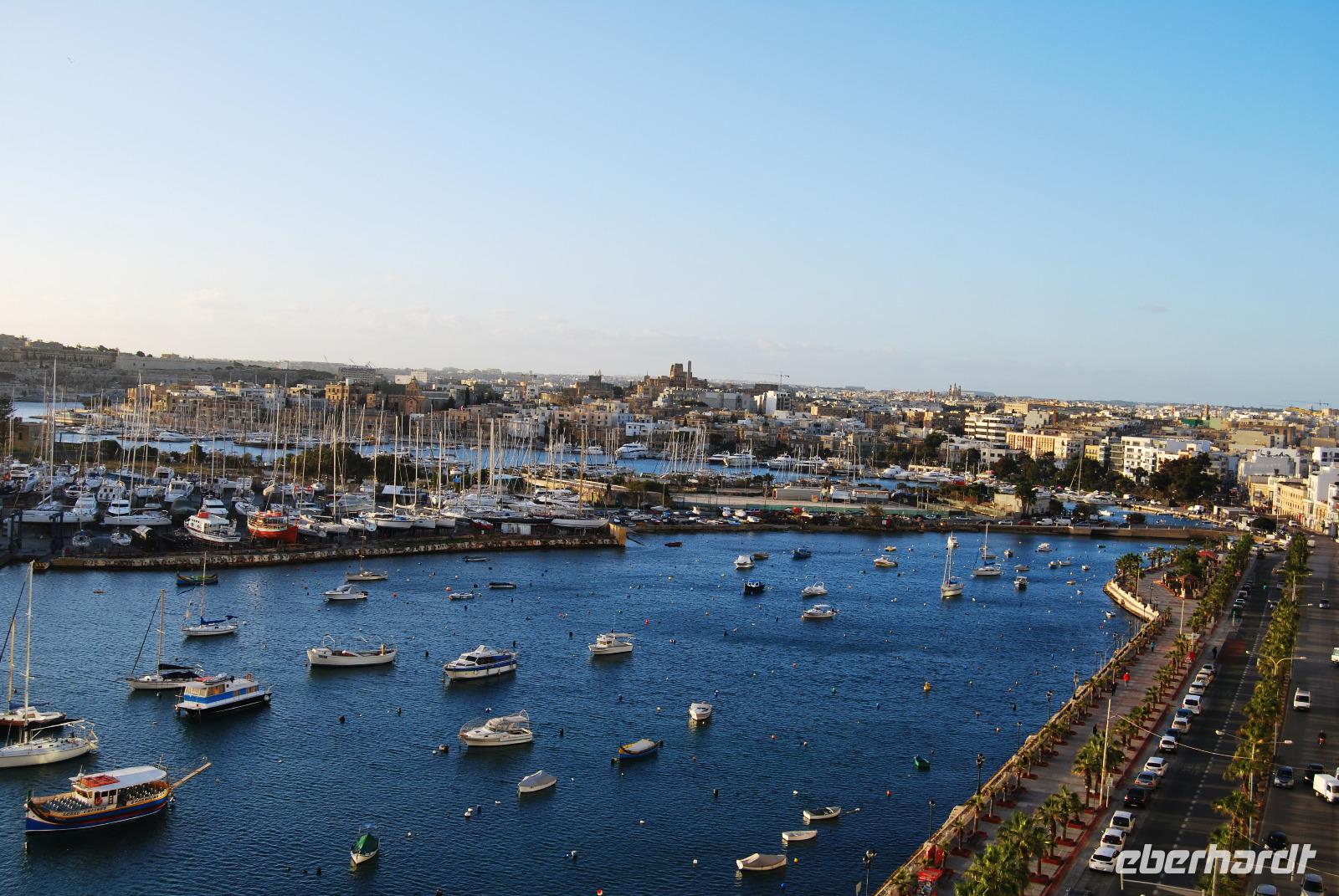 Heute Morgen hatten wir Zeit, viel Zeit zum Ausspannen. Erst am Mittag wollten wir mit der Erkundung der drei alten Städte und des Fischerdorfes Marsaxlokk beginnen. So hatten wir genügend Zeit die warme Sonne am Hafen zu genießen und die Freizeit für einen entspannten Spaziergang an der Promenade zu nutzen.