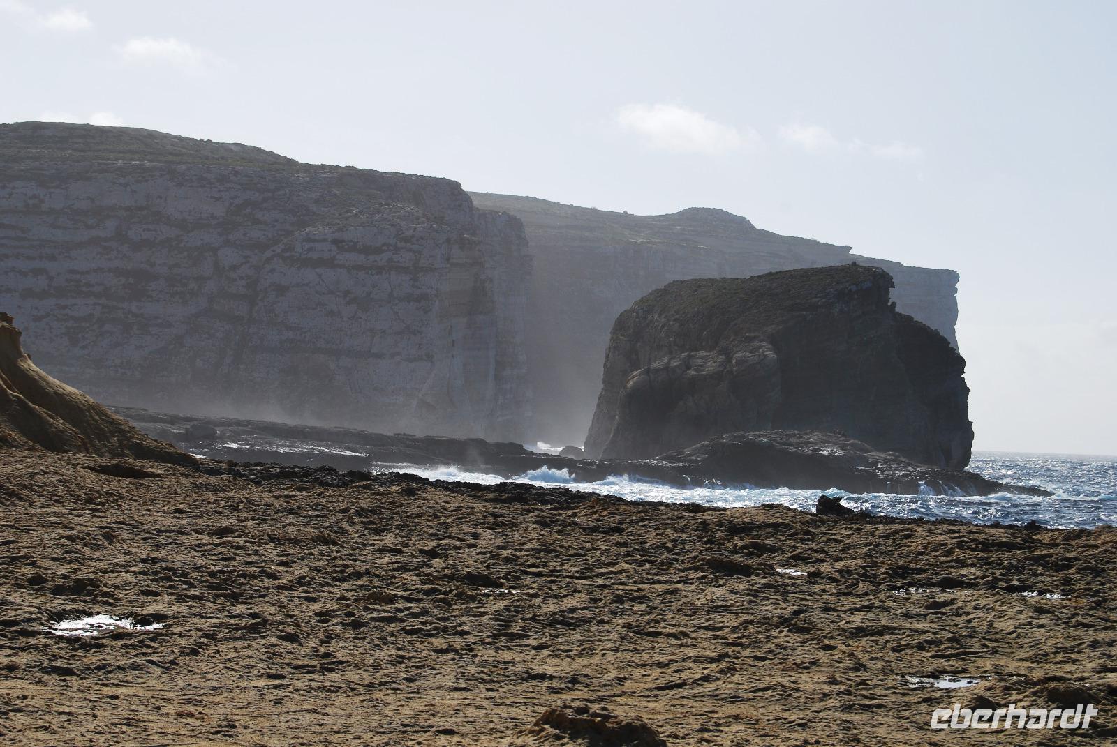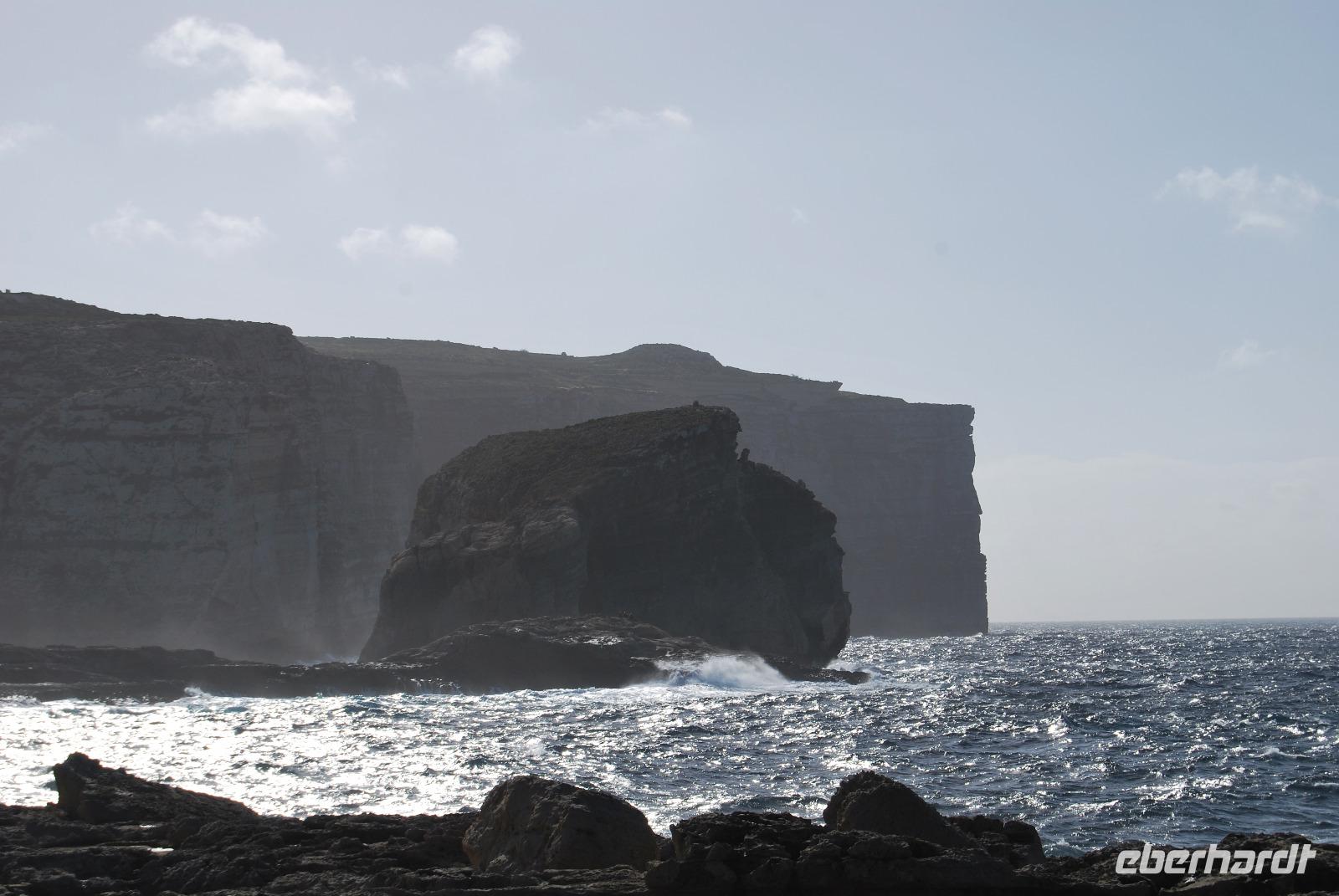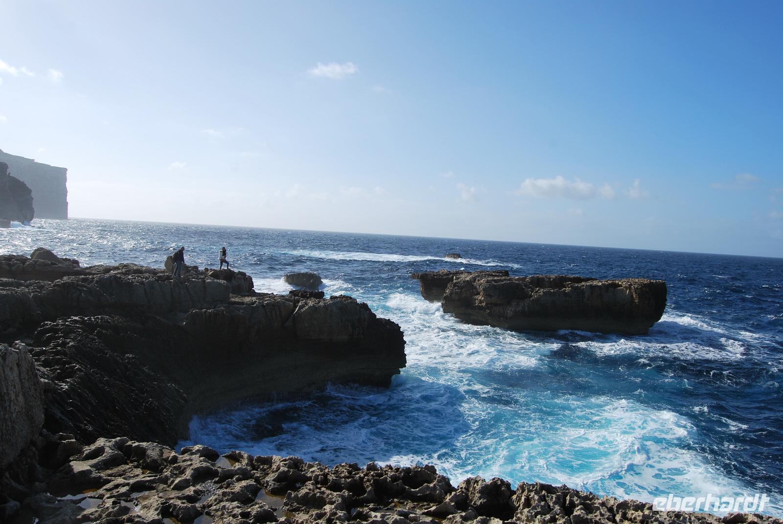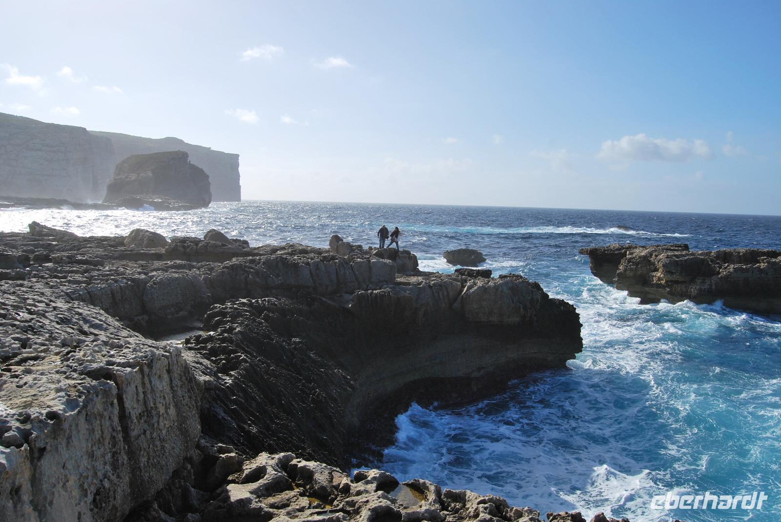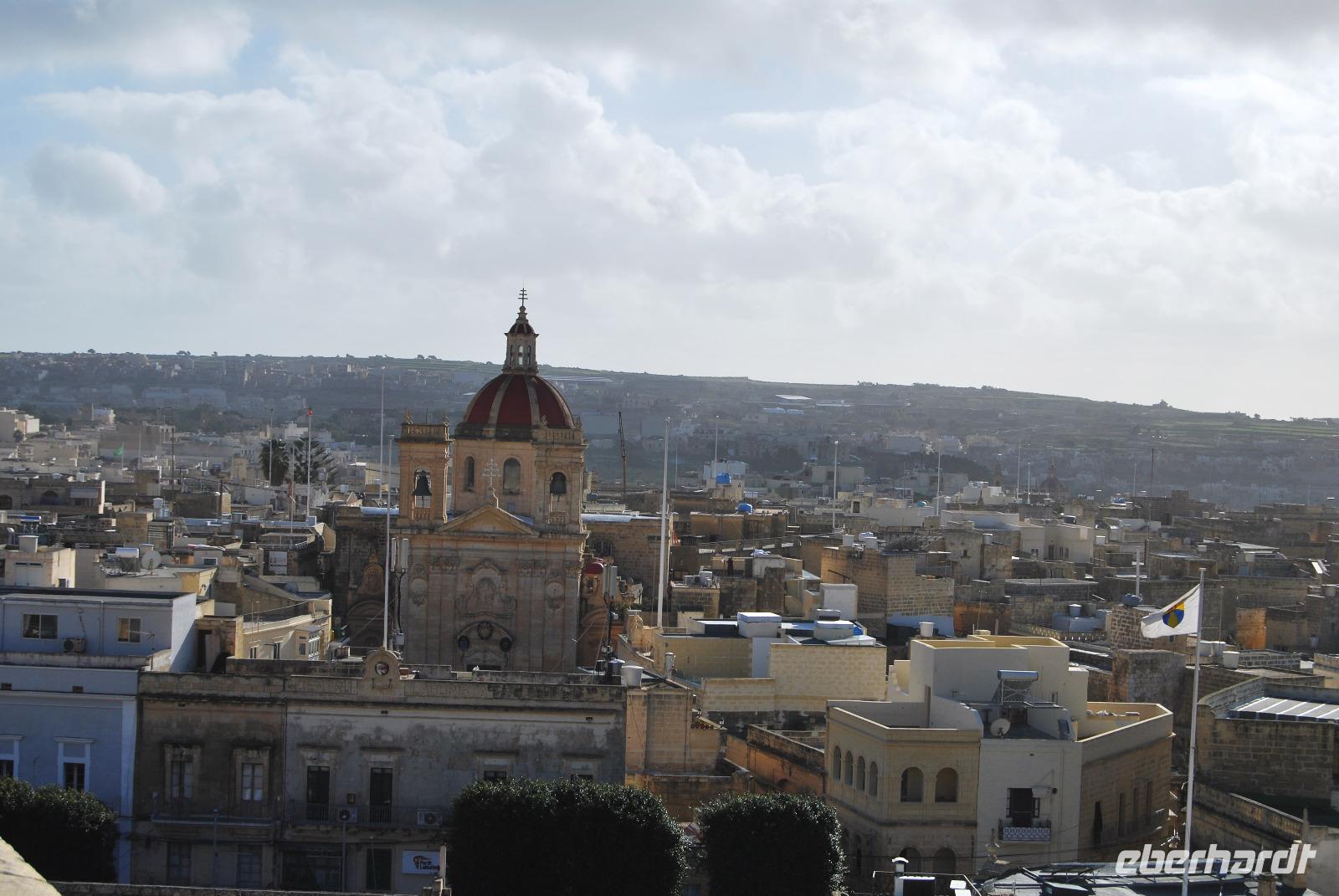 Am Morgen, nach dem Frühstück, fuhren wir nach Mellieha. Im Norden der Insel Malta wollten wir mit der Fähre zur Schwesterinsel Gozo übersetzen. Nach kurzer Wartezeit und zügiger Überfahrt legten wir in Mgarr auf Gozo an und gingen an Land. Bei der Einfahrt in den Hafen kann man zahlreiche Kirchen auf der Insel entdecken. Es sind hier die einzigen großen Gebäude und überragen die kleinen Städtchen. Aus der Ferne ein schöner Anblick, der in diesem Fall wörtlich, überragenden Glaubenszentren. Mit dem Bus geht es weiter über die Insel. Unseren ersten Fotostopp legten wir in Xlendi ein und fuhren dann zum einstigen „blauen Fenster" nach Dwejra. Steile Klippen, herrlicher Sonnenschein, wilde Brandung und ein geniales Panorama offenbarte sich uns an dieser Stelle. In diesem Ort, an einer kleinen Bucht, dem Il-Qawra, boten sich ein paar bunte Bootshäuser als Motiv für ein Gruppenfoto. Bei der Fahrt über die Insel sahen wir immer wieder zahlreich Kirchen, wie zum Beispiel die Basilika Ta' Pinu, die eindrucksvoll, inmitten ein paar Feldern steht. In dem Örtchen Marsalfron machten wir unsere Mittagspause. Im Restaurant Il-Kartell konnten wir direkt an der Bucht speisen. Am Nachmittag besuchen wir noch das städtische Zentrum der Insel - Victoria. In Victoria stiegen wir an der Pjazza St. Wistin aus und spazierten durch die Gassen bis zur barocken St. George's Basilika aus dem 17. Jahrhundert. Von dort ging es einen steilen Berg hinauf zur Zitadelle von Gozo, in deren Inneren man die Mariä-Himmelfahrt-Kathedrale und den Bischofsplatz des Bistums Gozo findet. Zum einen ist die gesamte Zitadelle schön anzusehen, was auch daran liegt, dass das Bauwerk aus dem 13. Jahrhundert vor wenigen Jahren restauriert wurde, zum anderen hat man von dort oben aber auch einen guten Blick über ganz Victoria und Gozo.