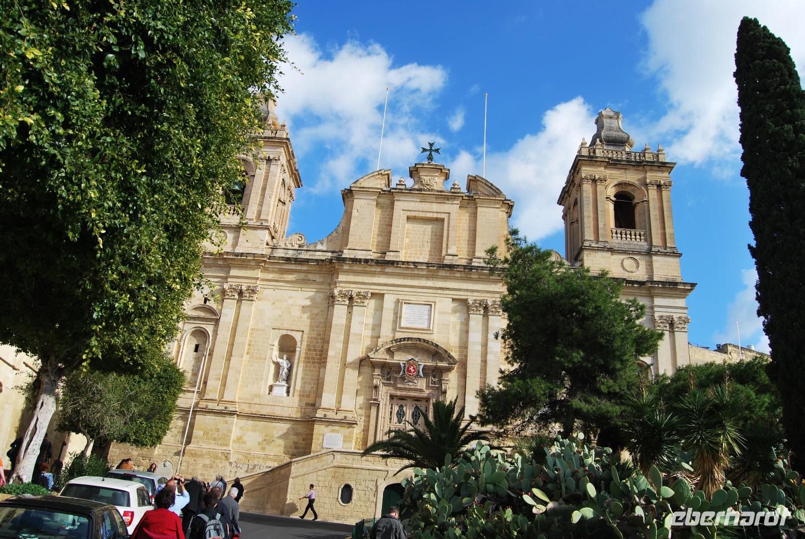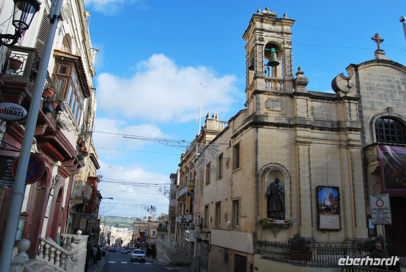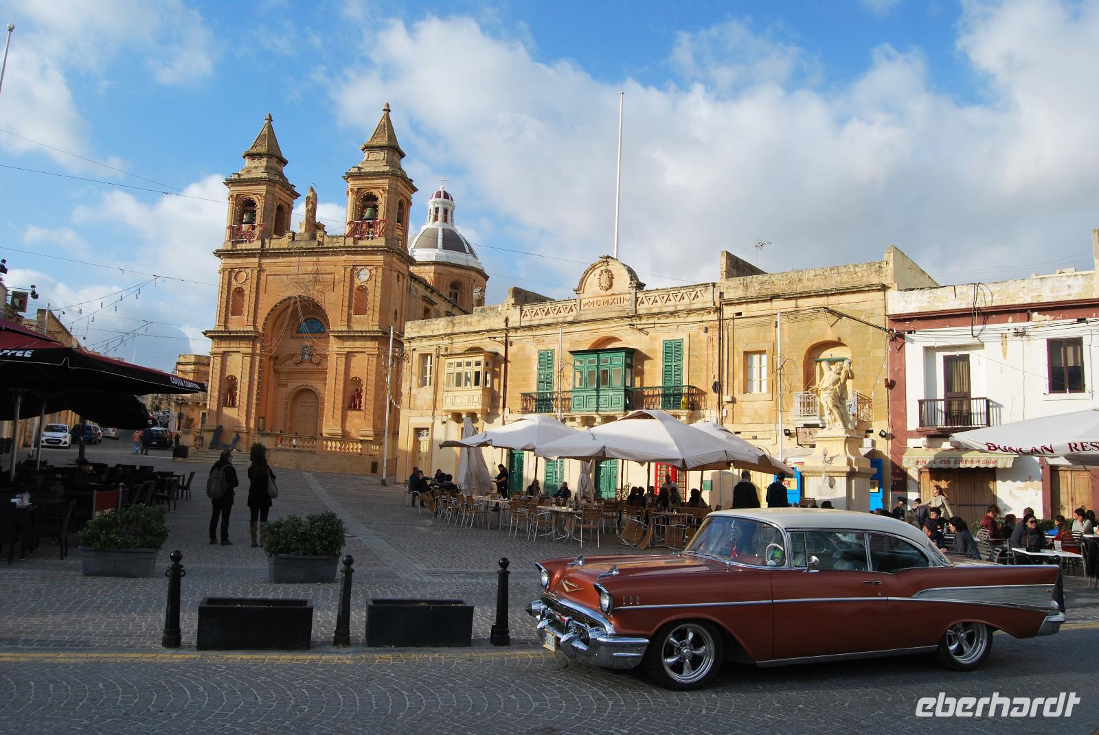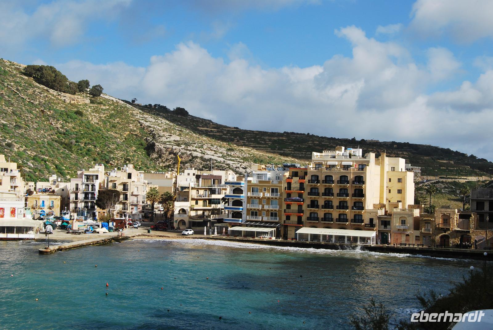 Am Morgen, nach dem Frühstück, fuhren wir nach Mellieha. Im Norden der Insel Malta wollten wir mit der Fähre zur Schwesterinsel Gozo übersetzen. Nach kurzer Wartezeit und zügiger Überfahrt legten wir in Mgarr auf Gozo an und gingen an Land. Bei der Einfahrt in den Hafen kann man zahlreiche Kirchen auf der Insel entdecken. Es sind hier die einzigen großen Gebäude und überragen die kleinen Städtchen. Aus der Ferne ein schöner Anblick, der in diesem Fall wörtlich, überragenden Glaubenszentren. Mit dem Bus geht es weiter über die Insel. Unseren ersten Fotostopp legten wir in Xlendi ein und fuhren dann zum einstigen „blauen Fenster" nach Dwejra. Steile Klippen, herrlicher Sonnenschein, wilde Brandung und ein geniales Panorama offenbarte sich uns an dieser Stelle. In diesem Ort, an einer kleinen Bucht, dem Il-Qawra, boten sich ein paar bunte Bootshäuser als Motiv für ein Gruppenfoto. Bei der Fahrt über die Insel sahen wir immer wieder zahlreich Kirchen, wie zum Beispiel die Basilika Ta' Pinu, die eindrucksvoll, inmitten ein paar Feldern steht. In dem Örtchen Marsalfron machten wir unsere Mittagspause. Im Restaurant Il-Kartell konnten wir direkt an der Bucht speisen. Am Nachmittag besuchen wir noch das städtische Zentrum der Insel - Victoria. In Victoria stiegen wir an der Pjazza St. Wistin aus und spazierten durch die Gassen bis zur barocken St. George's Basilika aus dem 17. Jahrhundert. Von dort ging es einen steilen Berg hinauf zur Zitadelle von Gozo, in deren Inneren man die Mariä-Himmelfahrt-Kathedrale und den Bischofsplatz des Bistums Gozo findet. Zum einen ist die gesamte Zitadelle schön anzusehen, was auch daran liegt, dass das Bauwerk aus dem 13. Jahrhundert vor wenigen Jahren restauriert wurde, zum anderen hat man von dort oben aber auch einen guten Blick über ganz Victoria und Gozo.