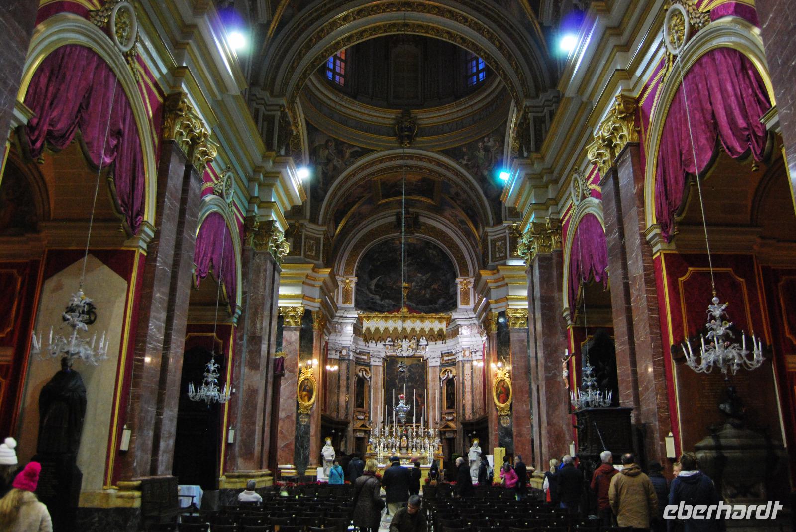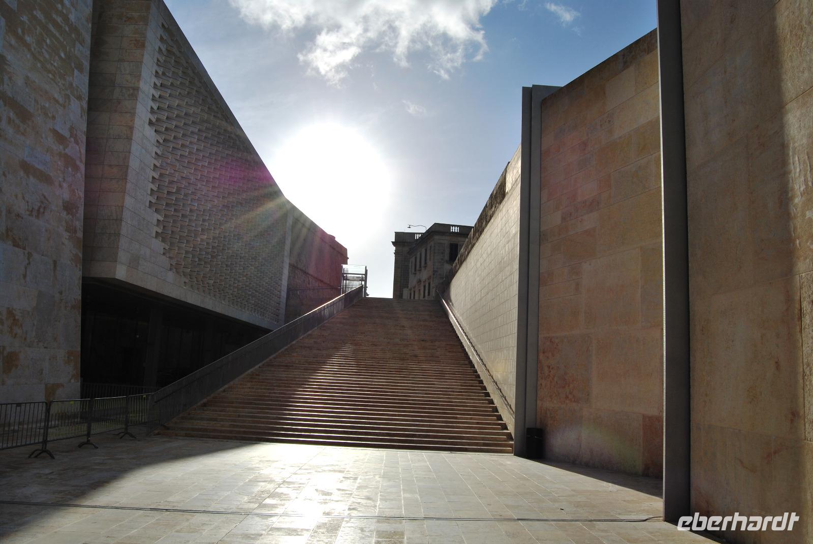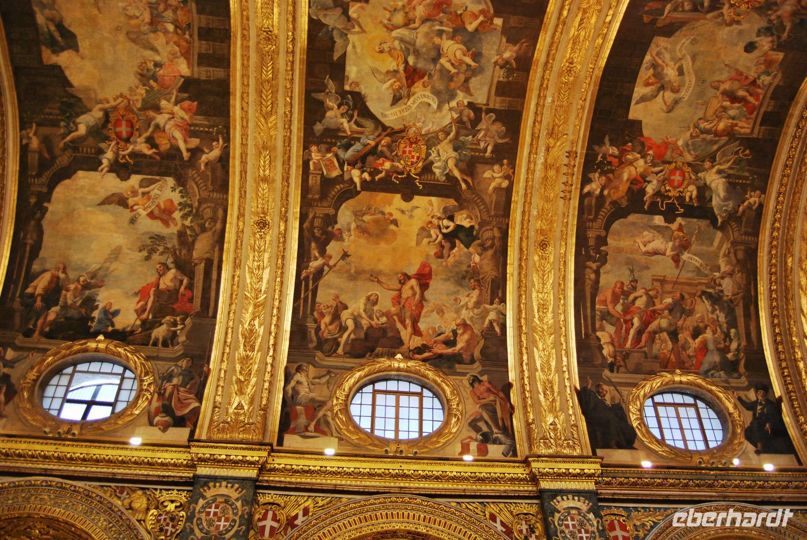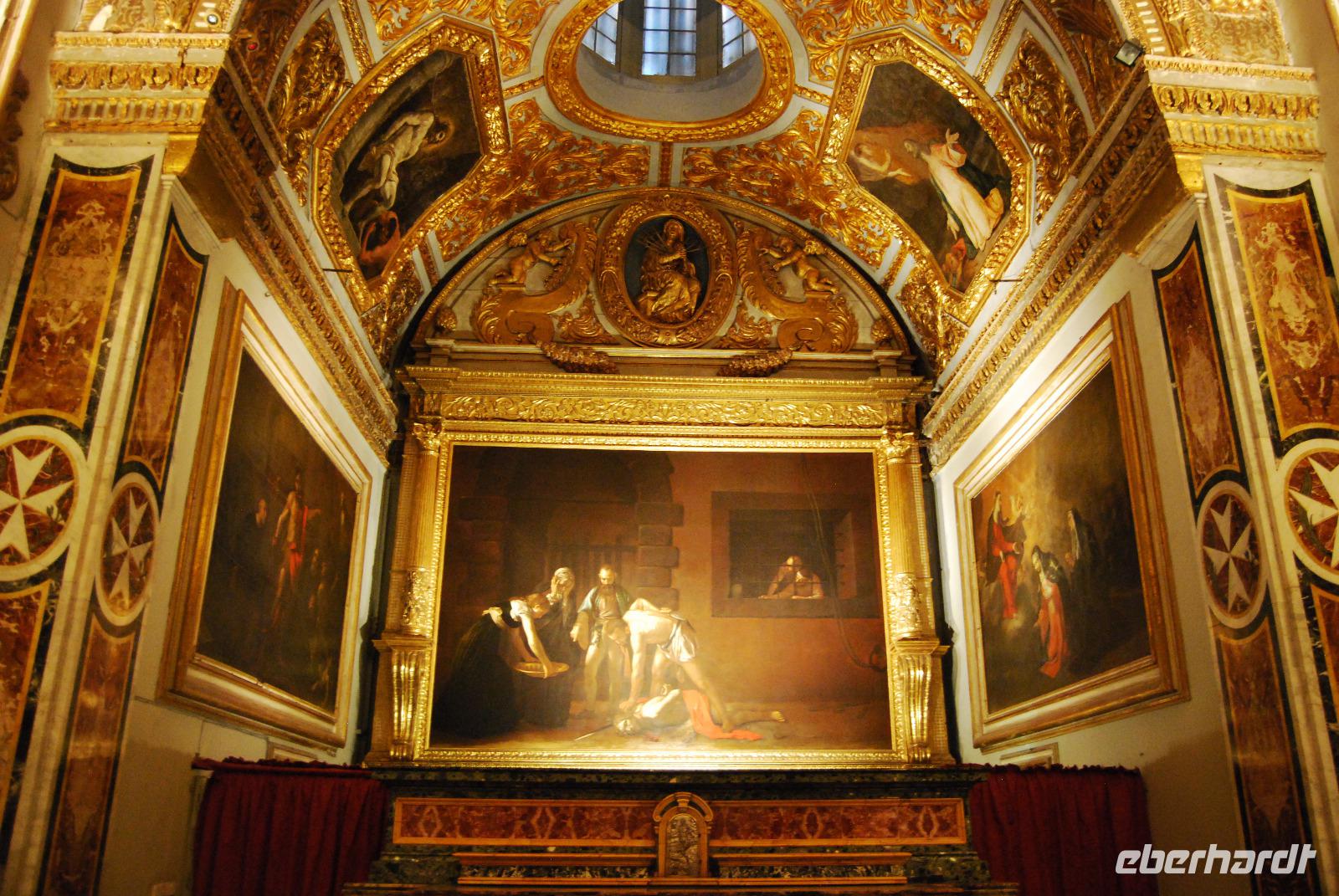 Nach einem ausgiebigen Frühstücks-Buffet mit Sonnenschein und Blick über die Bucht und Manoel Island begannen wir unsere Stadtrundfahrt. Mit Rita, unserer örtlichen Reiseleiterin, fuhren wir Richtung Valletta. Vor den Toren der Altstadt, an der Kirche St. Publius und dem alten Kornspeicher Pjazza San Publju, stiegen wir aus. Ein Foto an der Unabhängigkeitsstatue, die als Denkmal des 21.09.1964 steht, schlenderten wir am Tritonenbrunnen vorbei, der direkt vor den massiven Stadttoren steht. Beim Betreten von Valletta fällt gleich noch der Weihnachtsschmuck auf. Eine Straße mit vielen Lichtern und Bögen geschmückt. Auch eine kleine Attraktion: Der knapp sieben Meter hohe Weihnachtsbaum aus über 2.000 handgefertigten Glaskugeln. Wir umrundeten das Königliche Opernhaus, gingen bis zur katholischen Kirche St. Catherine von Italien und kamen zum St John's Square, wo wir die berühmte St. John's Co-Cathedral erblickten. Von außen wahrlich schlicht - doch beim Betreten des Gotteshauses macht man große Augen. Goldene Verzierungen und Ornamente soweit man gucken kann. Anstatt Seitenschiffen findet man in dieser Kirche zahlreiche Kapellen, die je einer Fraktion aus dem einstigen Malteser-Ordnen zugeordnet sind. So spiegelt auch das Emblem des Ordens, das Malteserkreuz, mit jedem Zacken eine Fraktion der Mittelalterlichen EU wieder. Auf dem Boden zahlreiche Intarsien-Marmor-Gräber, wo eines kunstvoller und bemerkenswerter ist als das andere. Ganz besonders faszinierend fand ich die Deckenbemalung. Ein meisterlicher Pinselstrich, wo die einzelnen Figuren tatsächlich aus dem Gemälde herauszuragen scheinen, hervorgerufen durch geniale Illusionen von Schatten und Lichtern, die teilweise aus dem eigentlichen Bilderrahmen ragen. Und wo wir gerade bei Malerei sind: eine berühmte Reliquie, die sich in der Kirche befindet, ist das Gemälde von Caravaggio - Die Enthauptung Johannes des Täufers von 1608. Nach dieser eindrucksvollen Malteser-Kathedrale wollten wir eigentlich den Großmeister Palast besichtigen, doch leider kam uns die Regierung zuvor und sperrte das Gebäude kurzfristig. Wir entschlossen uns spontan zu einer Café-Pause gegenüber der Nationalbibliothek von Malta und besuchten anschließend das archäologische Museum, wo uns Rita schon mal auf den Hagar Qim einstimmte. Artefakte, Kunst, Schmuck und Skulpturen aus dem Jahre 4.000 - 2.500 vor Christus konnten wir dort besichtigen. Dann ging es zum großen Hafen von Valletta. Über den Barrakka-Garten, wo wir eine herrliche Sicht über den Hafen und die drei alten Städte hatten - Vittoriosa, Senglea und Cospicua, kamen wir zur Waterfront Valletta. Gut eine Stunde ging die Hafenrundfahrt, in der wir so ziemlich jeden „Finger" der natürlichen Hafenanlage besuchten. Das war schon mal ein kleiner Vorgeschmack auf übermorgen, wo wir noch einmal Vittoriosa besuchten.
