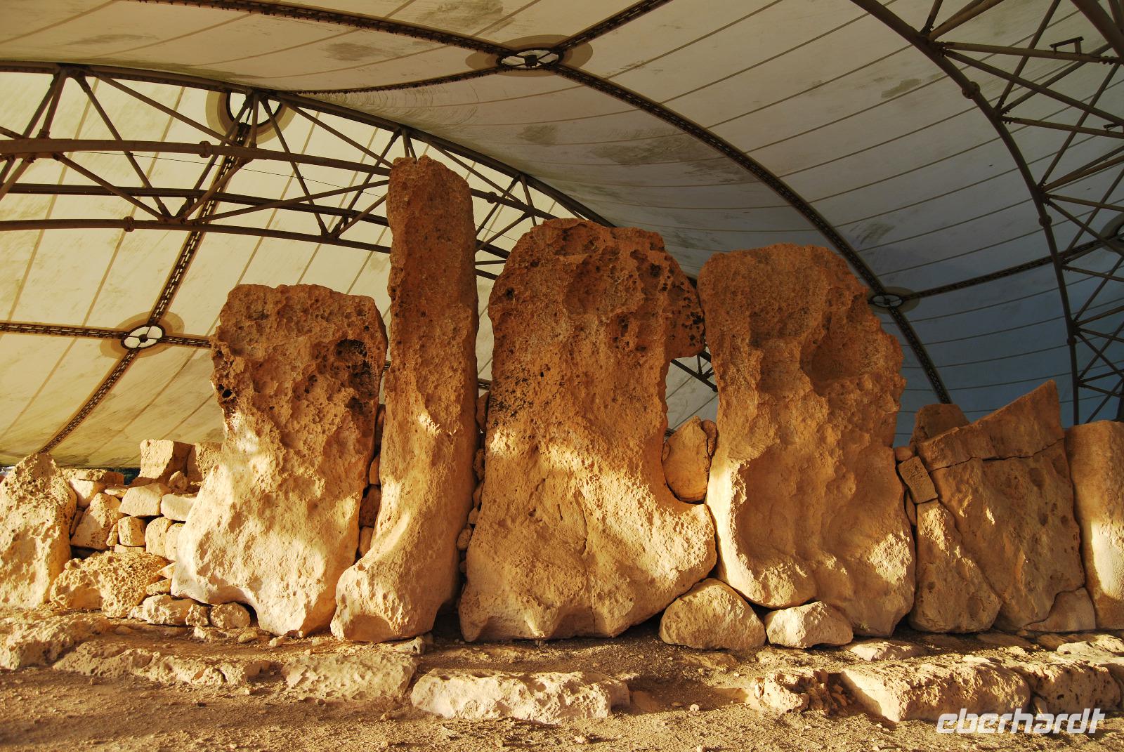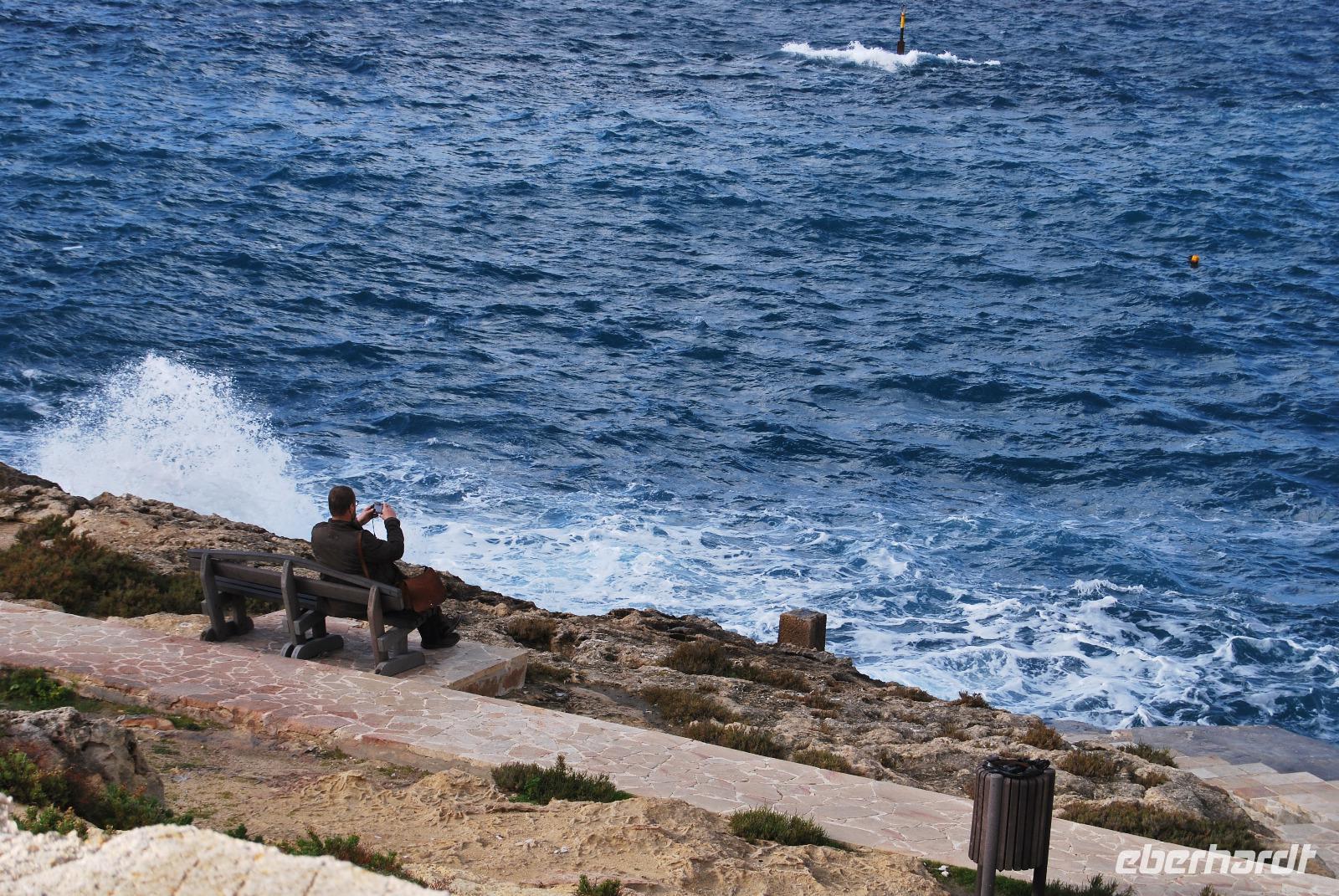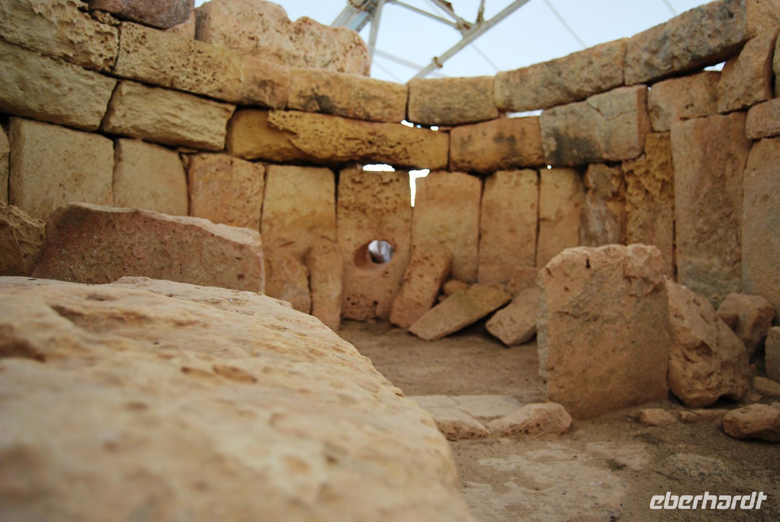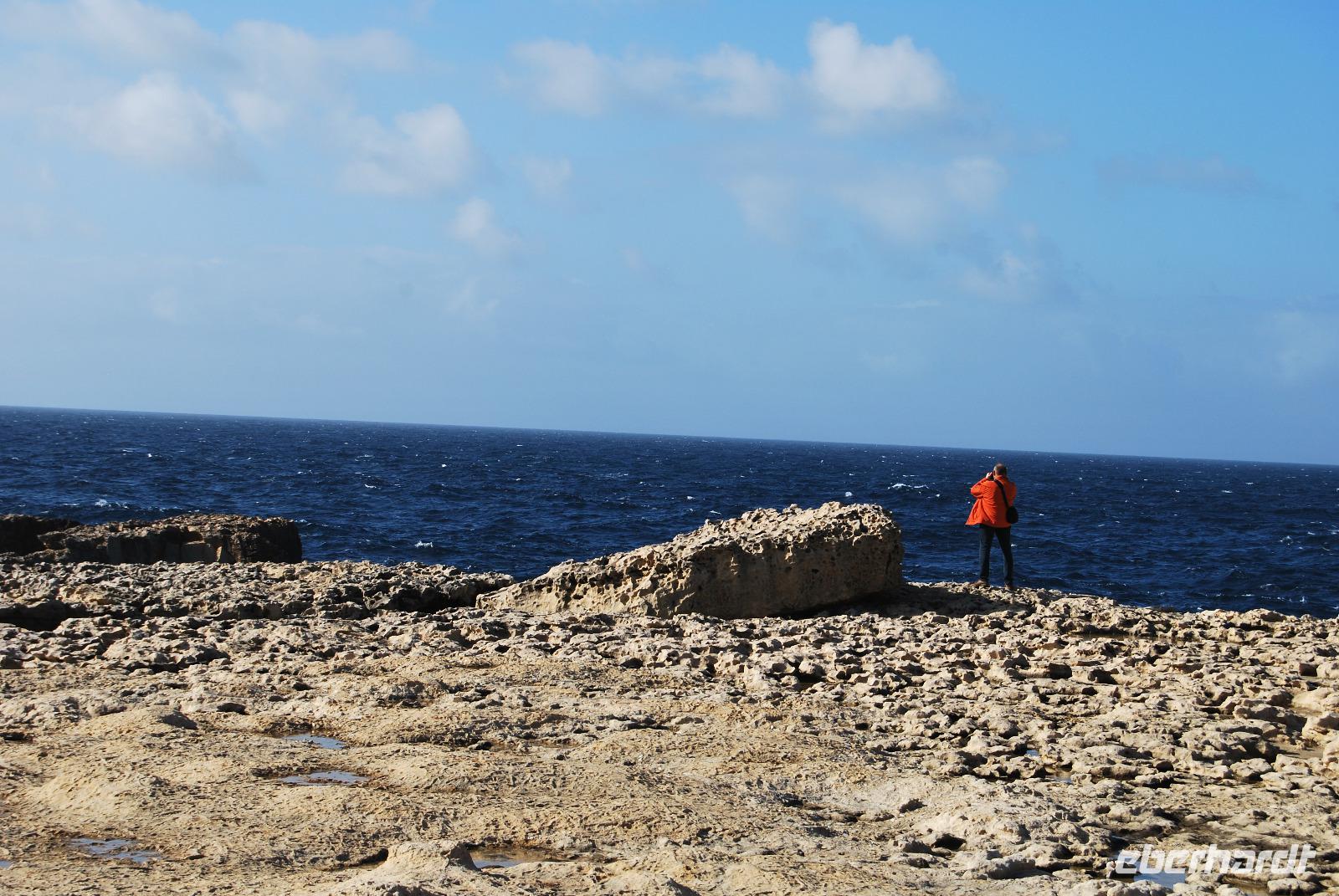 Frisch gestärkt ging es weiter. Wir fuhren nun nach Hagar Qim, machten aber kurz davor einen Fotostopp an der blauen Grotte von Malta. Ein Blick von oben in die azur-blaue Meereshöhle, die sich weit unten am Meer befindet und knapp 90 m lang und 40 m hoch ist. Nun zu Hagar Qim, eine Tempelanlage der „Neolithen", die auch zu Bestimmung der Jahreszeiten diente, ähnlich wie bei Stonehenge in England, nur dass das Hagar Qim gut fünfhundert Jahre älter sein könnte. Zur Sonnenwende scheint das Licht durch ein kleines Loch im Tempel und beleuchtet einen bestimmten Punkt.