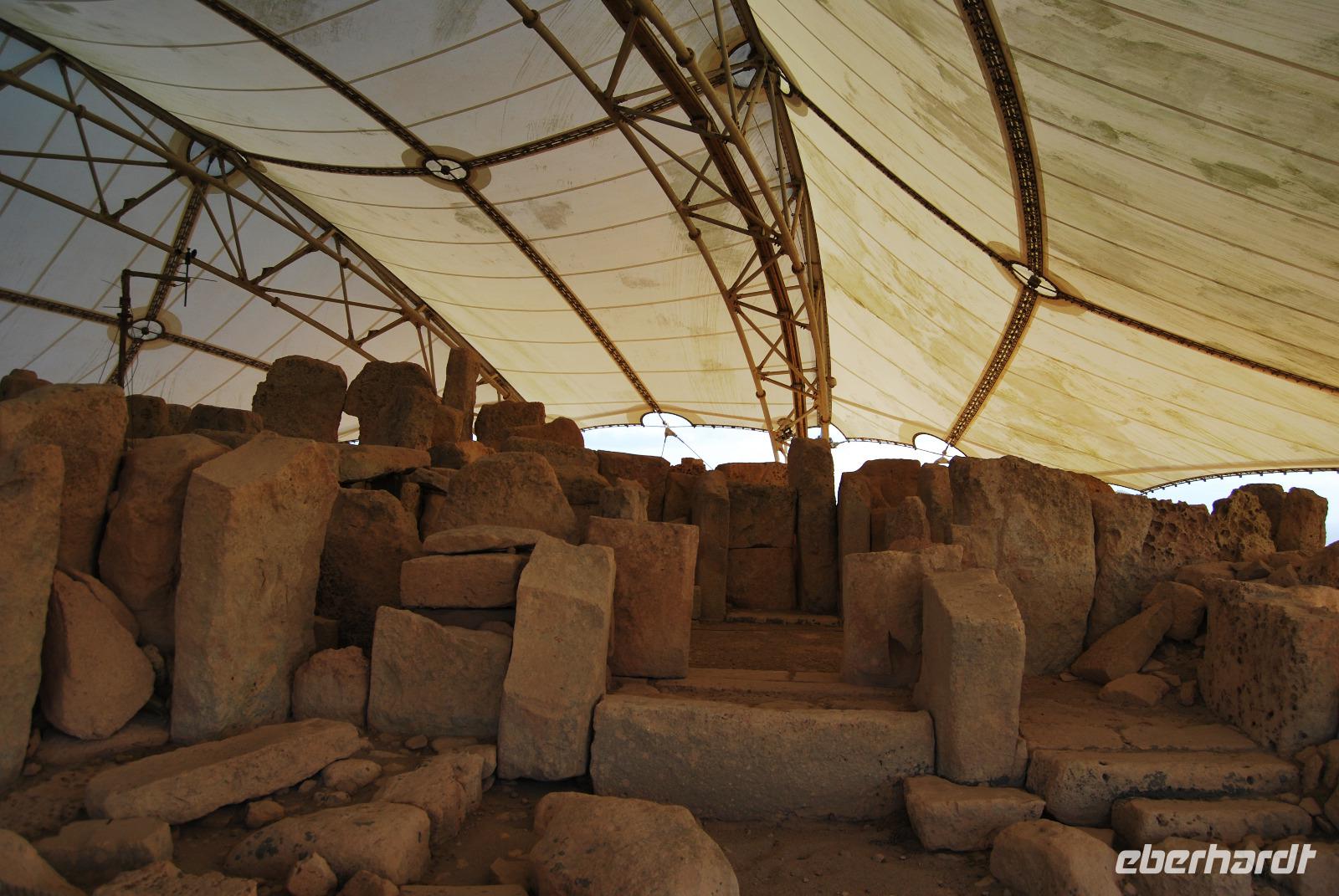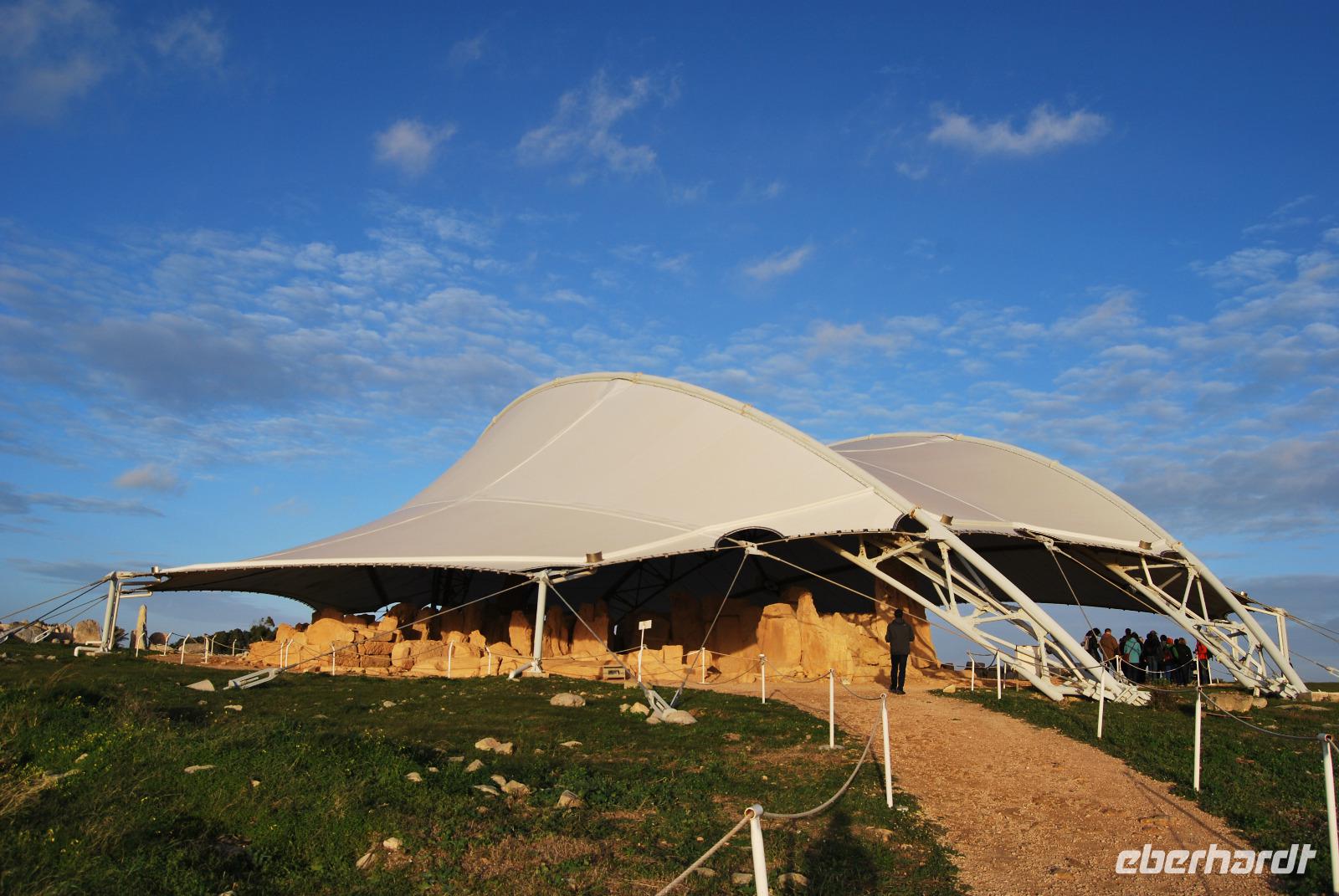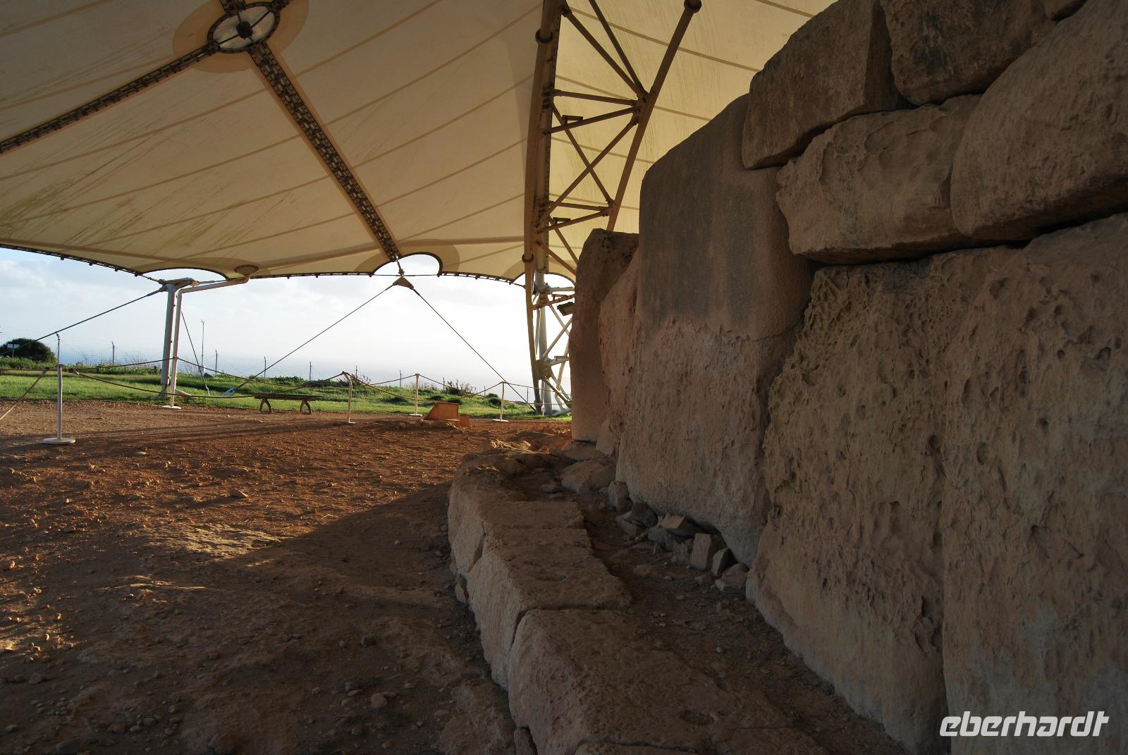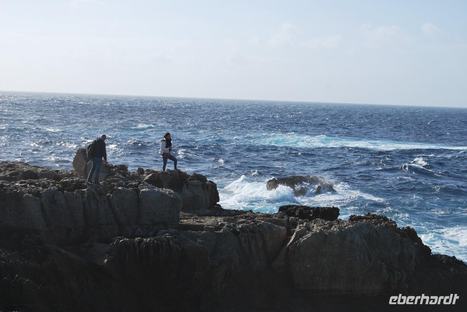Frisch gestärkt ging es weiter. Wir fuhren nun nach Hagar Qim, machten aber kurz davor einen Fotostopp an der blauen Grotte von Malta. Ein Blick von oben in die azur-blaue Meereshöhle, die sich weit unten am Meer befindet und knapp 90 m lang und 40 m hoch ist. Nun zu Hagar Qim, eine Tempelanlage der „Neolithen", die auch zu Bestimmung der Jahreszeiten diente, ähnlich wie bei Stonehenge in England, nur dass das Hagar Qim gut fünfhundert Jahre älter sein könnte. Zur Sonnenwende scheint das Licht durch ein kleines Loch im Tempel und beleuchtet einen bestimmten Punkt.